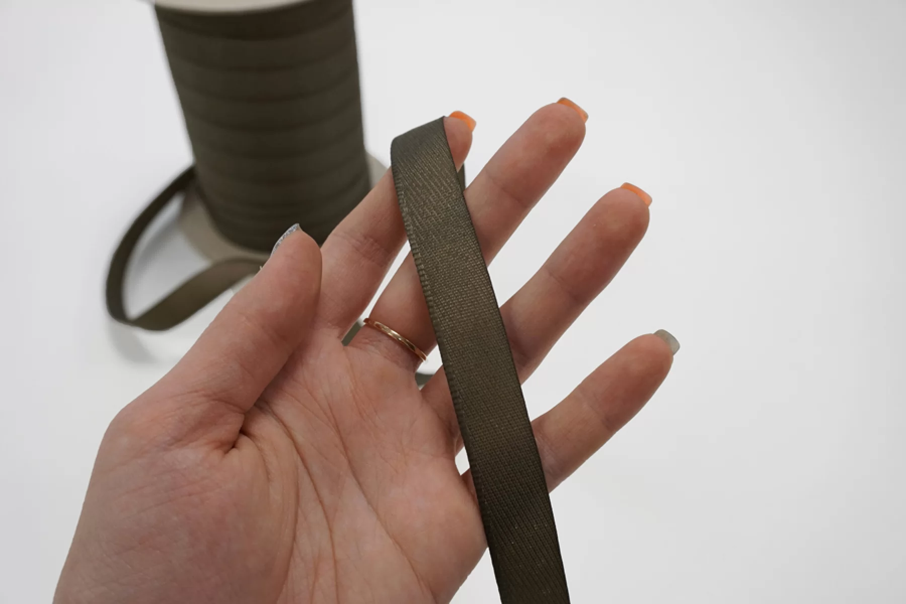 Тесьма брючная Kufner для подшива низа изделия, плотная, с усиленным краем. Цвет хаки, ширина 1,5 см. Цена за метр.