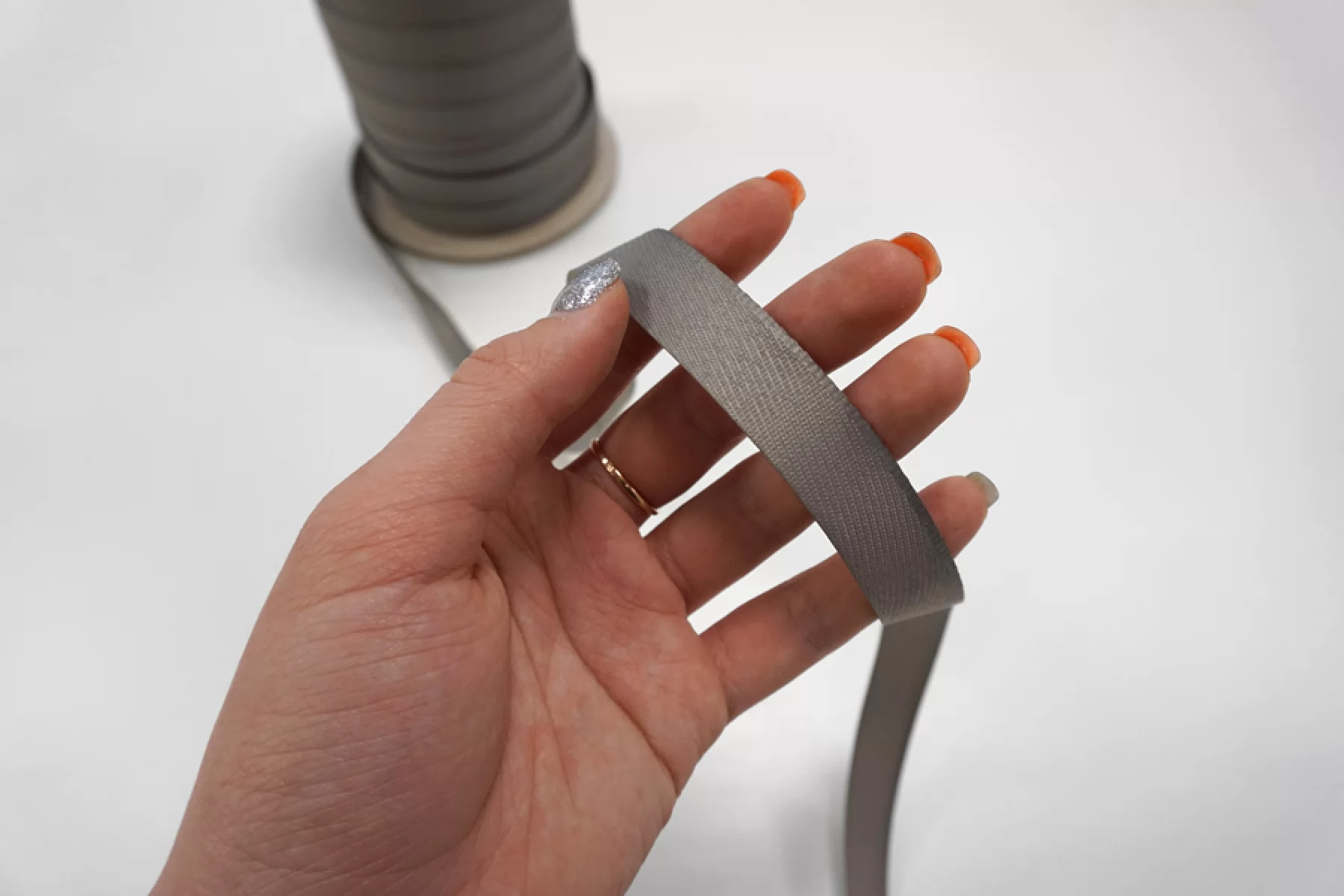 Тесьма брючная Kufner для подшива низа изделия, плотная, с усиленным краем. Цвет серый, ширина 1,5 см. Цена за метр.