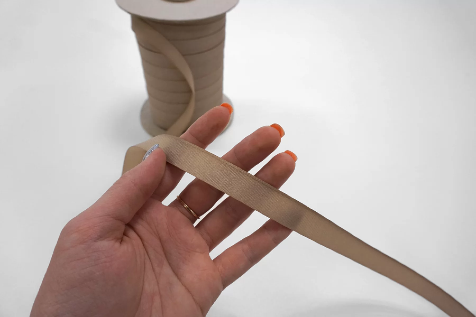 Тесьма брючная Kufner для подшива низа изделия, плотная, с усиленным краем. Цвет телесно-бежевый, ширина 1,5 см. Цена за метр.