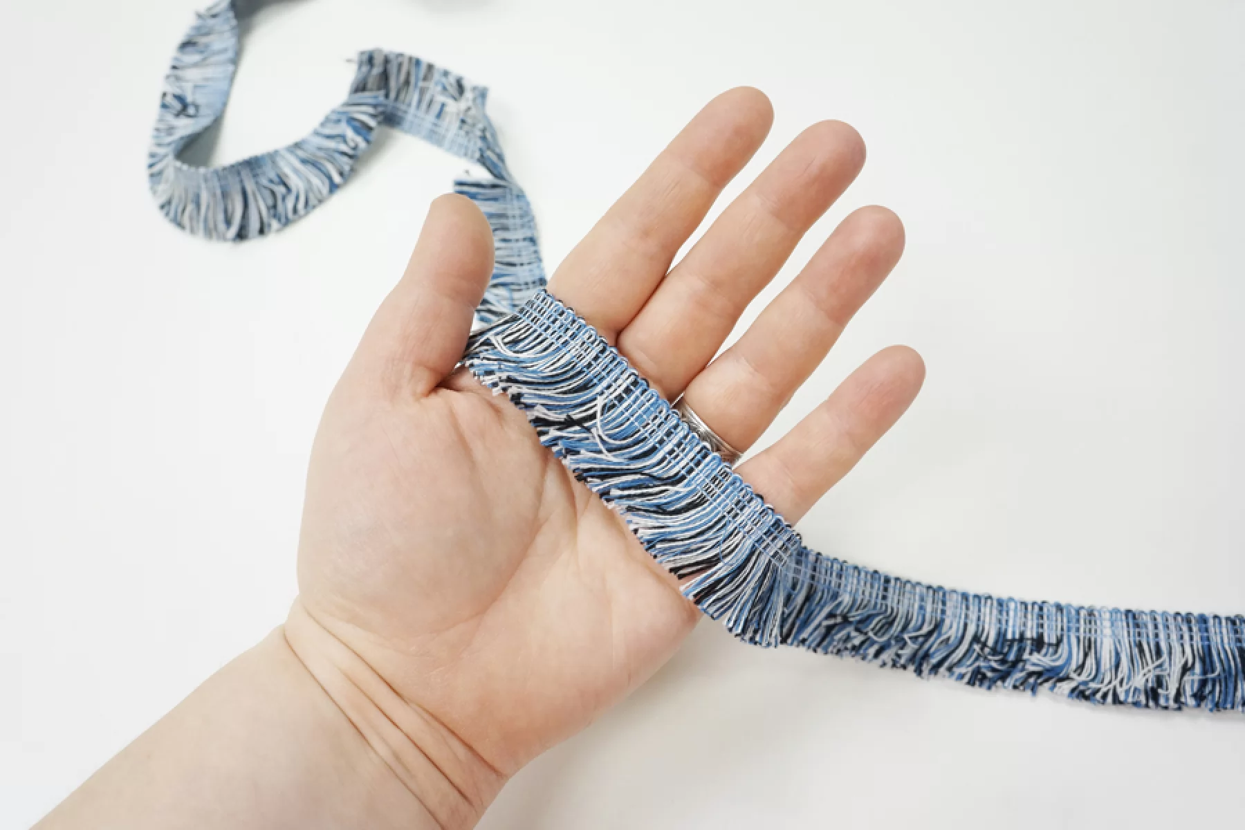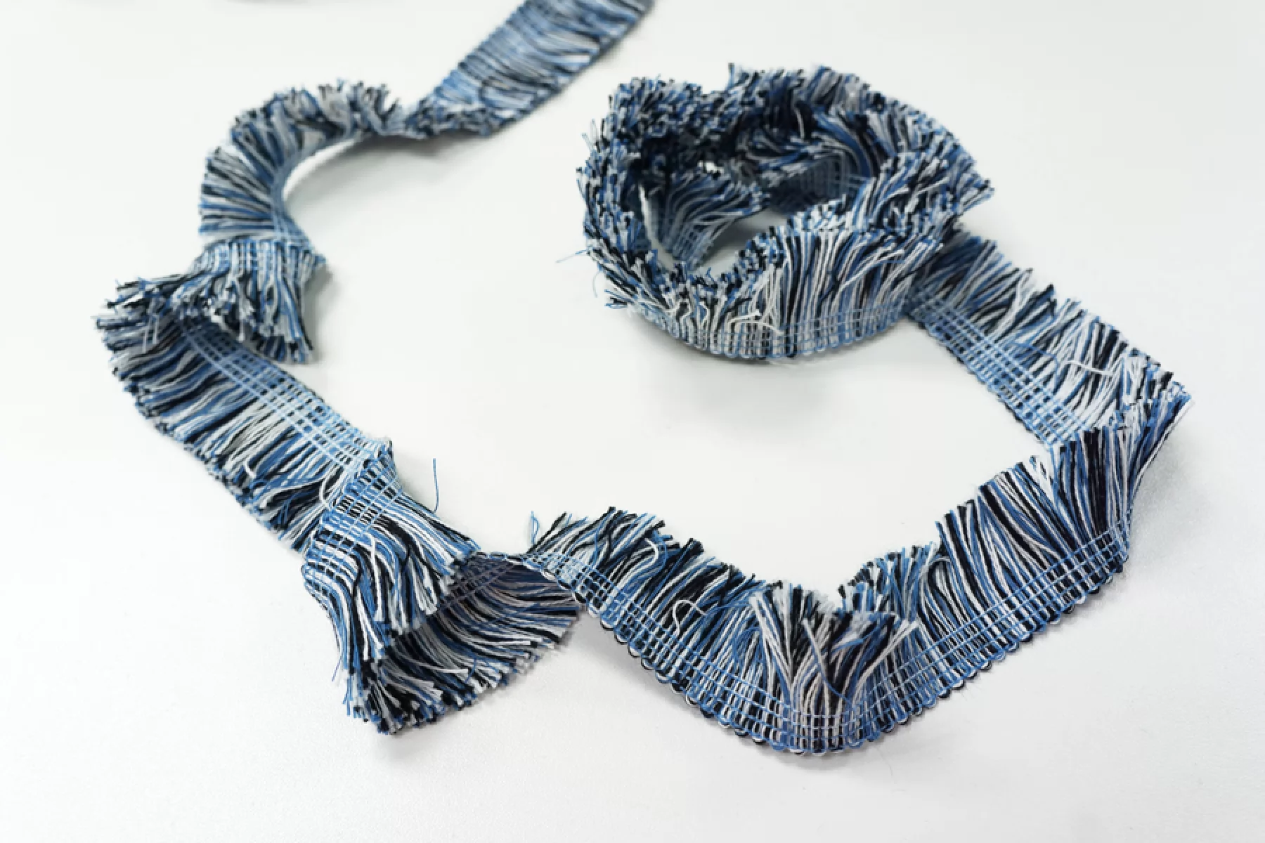 Итальянская тесьма трехцветная: синий, черный и белый . Мягкая, пластичная, хорошо держит форму. Отлично подойдет для пошива нижнего белья, отделки одежды и аксессуаров.
