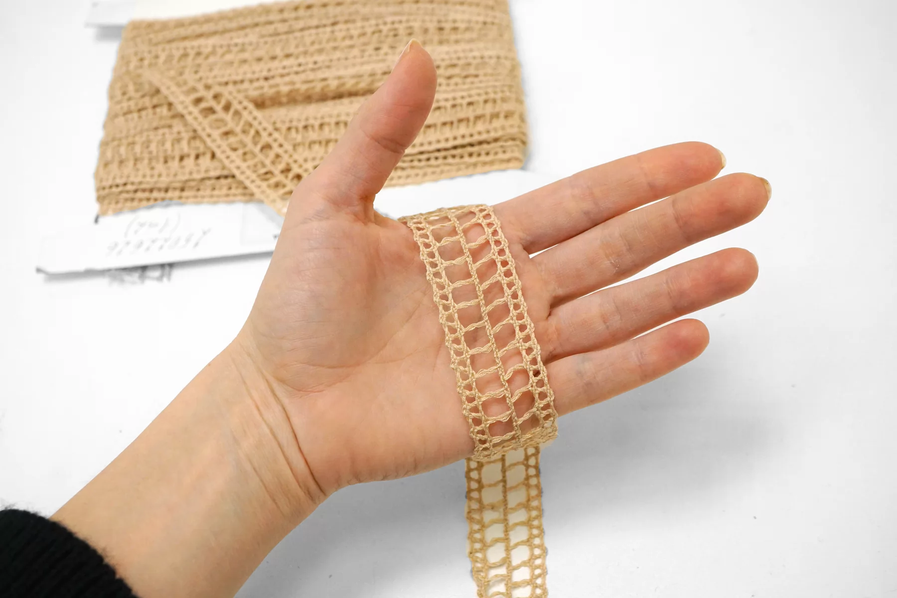 Итальянская декоративная тесьма бежевого цвета из хлопка со льном. Чуть суховатая, пластичная. Не тянется. Отлично подойдет для отделки одежды и аксессуаров.