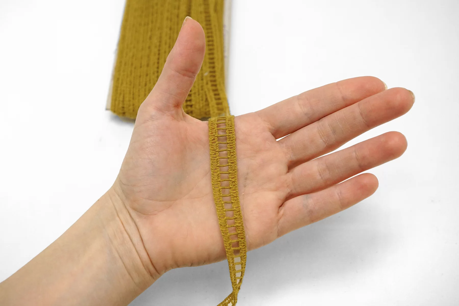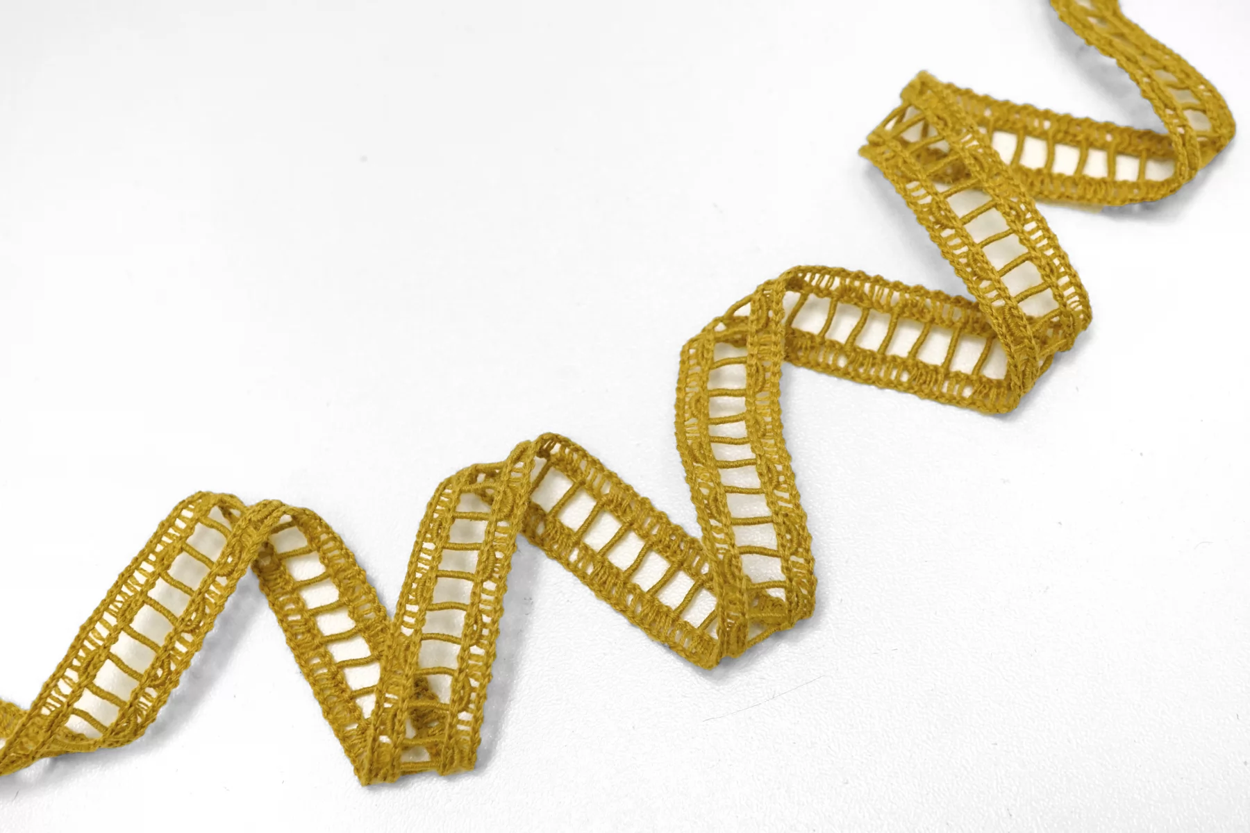 Итальянская декоративная тесьма горчичного цвета из хлопка. Мягкая, пластичная. Не тянется. Отлично подойдет для отделки одежды и аксессуаров.