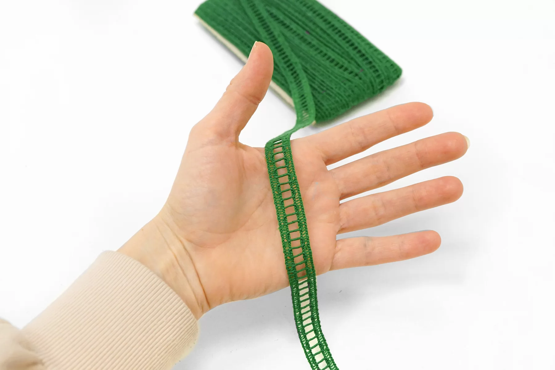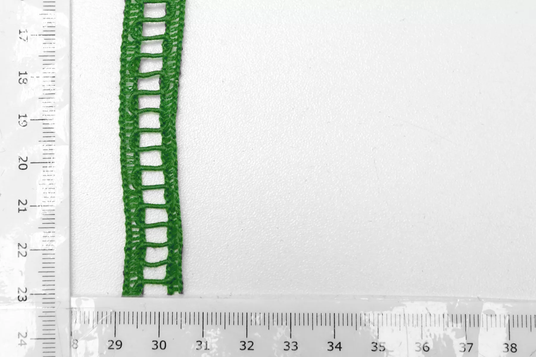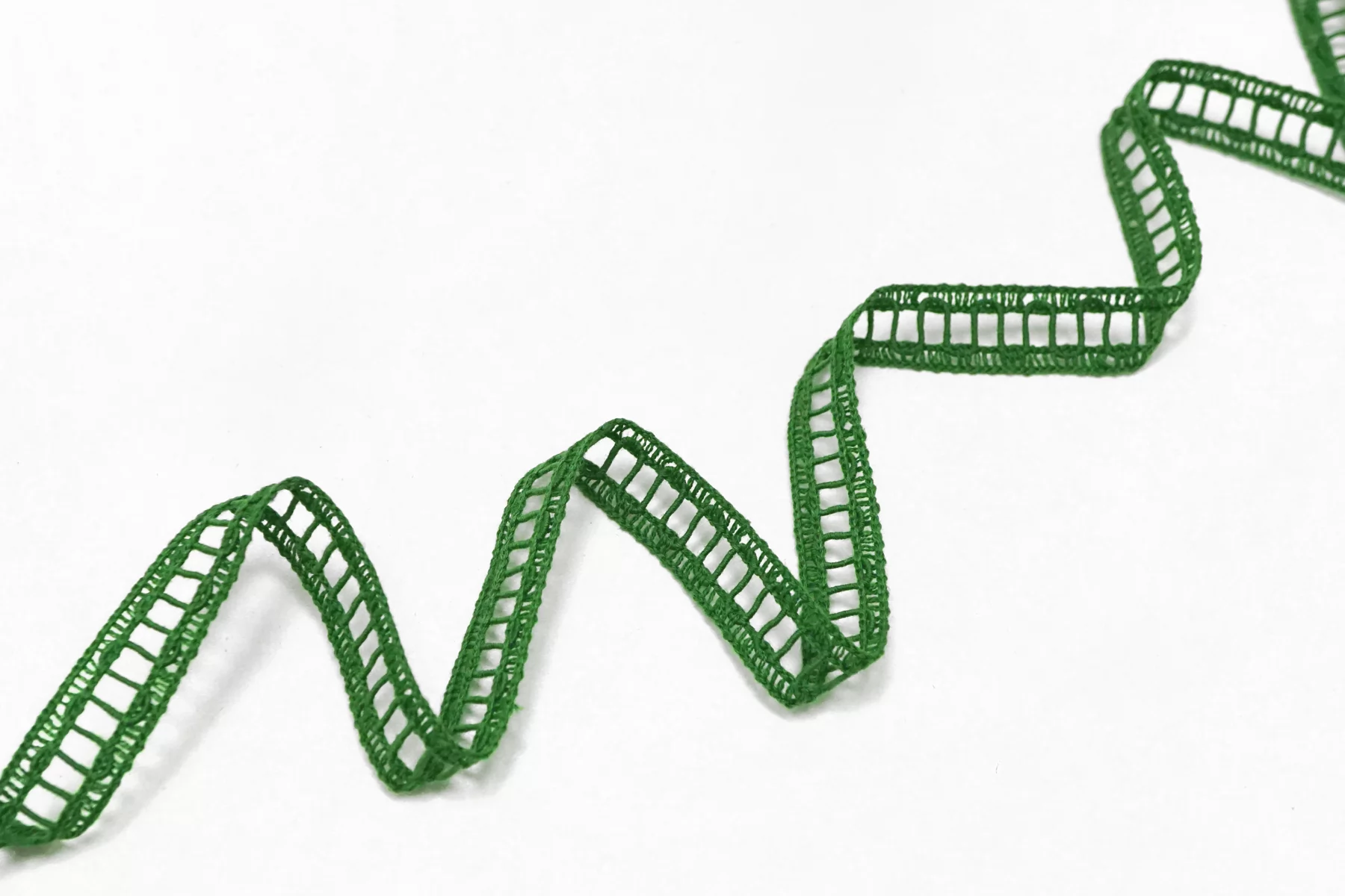 Итальянская декоративная тесьма изумрудно-зелёного цвета из хлопка. Мягкая, пластичная. Не тянется. Отлично подойдет для отделки одежды и аксессуаров.