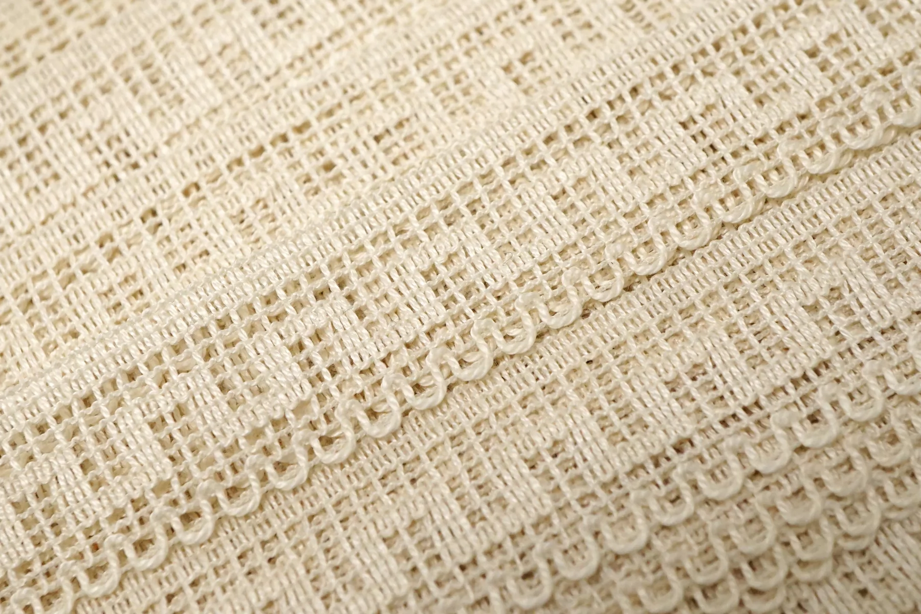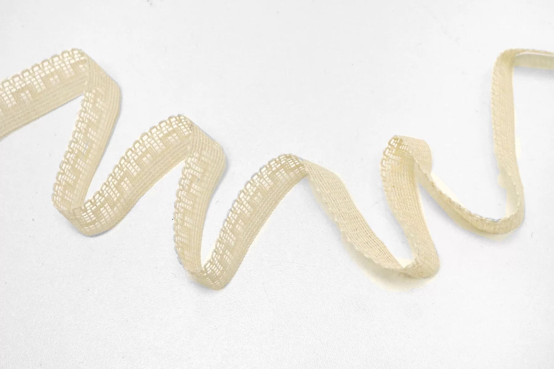 Итальянская декоративная тесьма молочного цвета из хлопка. Мягкая, пластичная. Не тянется. Отлично подойдет для отделки одежды и аксессуаров.