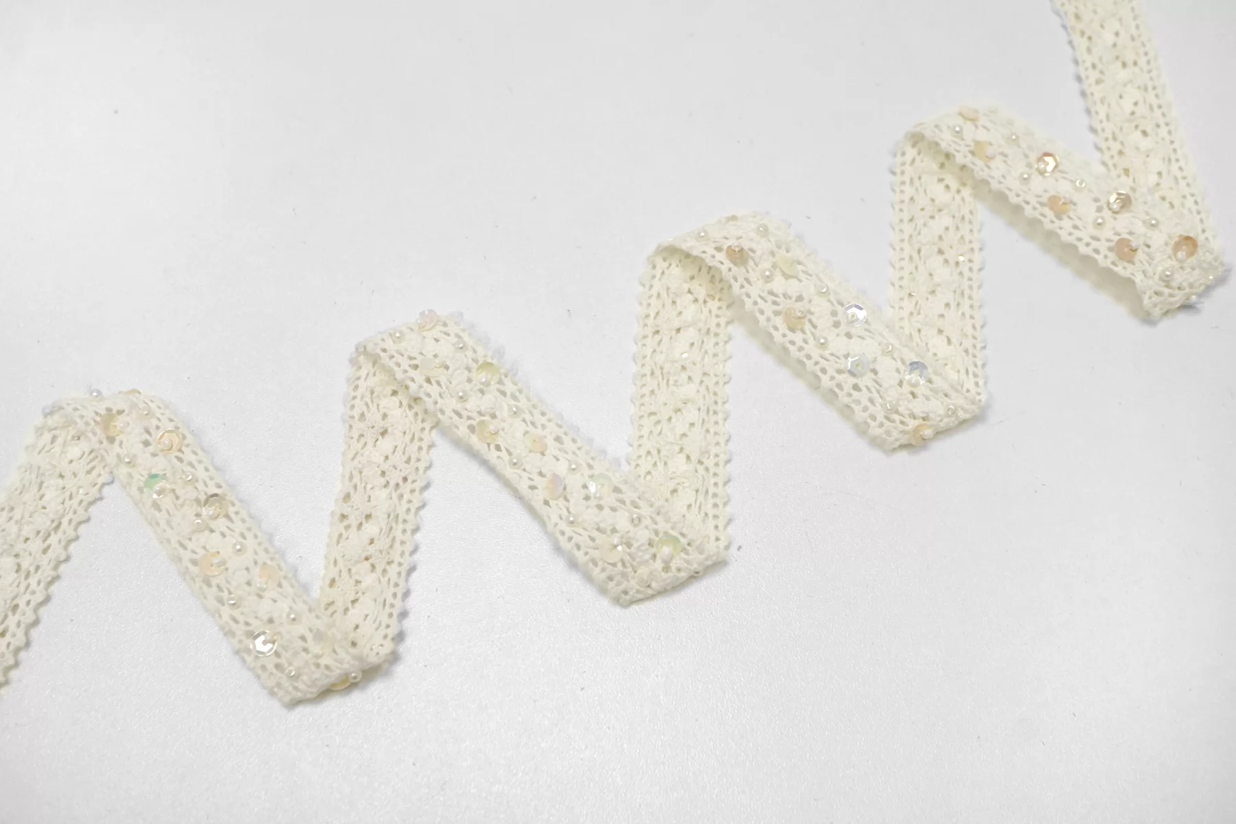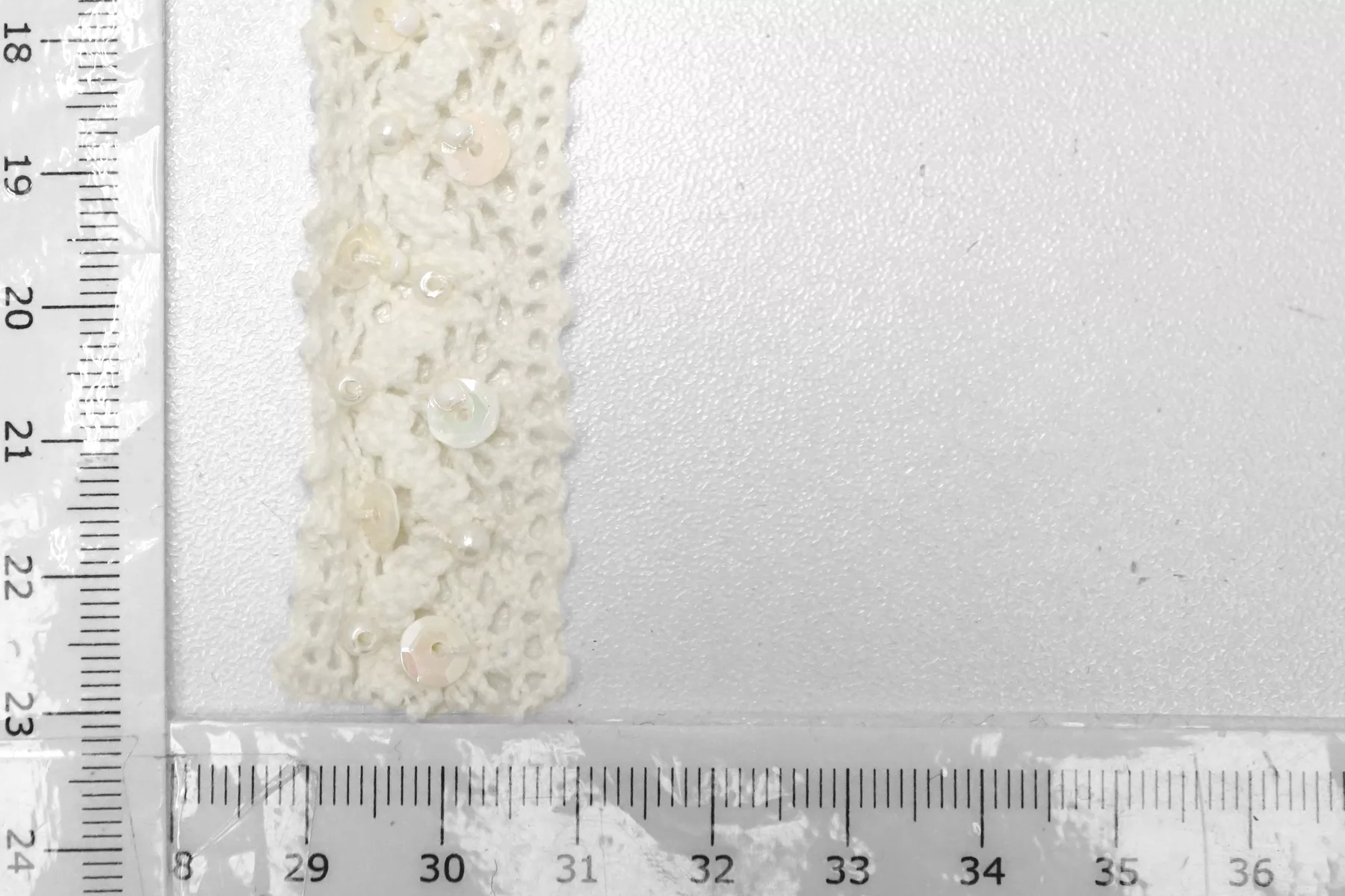 Тесьма декоративная молочная с бусинами и пайетками 2,2 см ST2 25022649