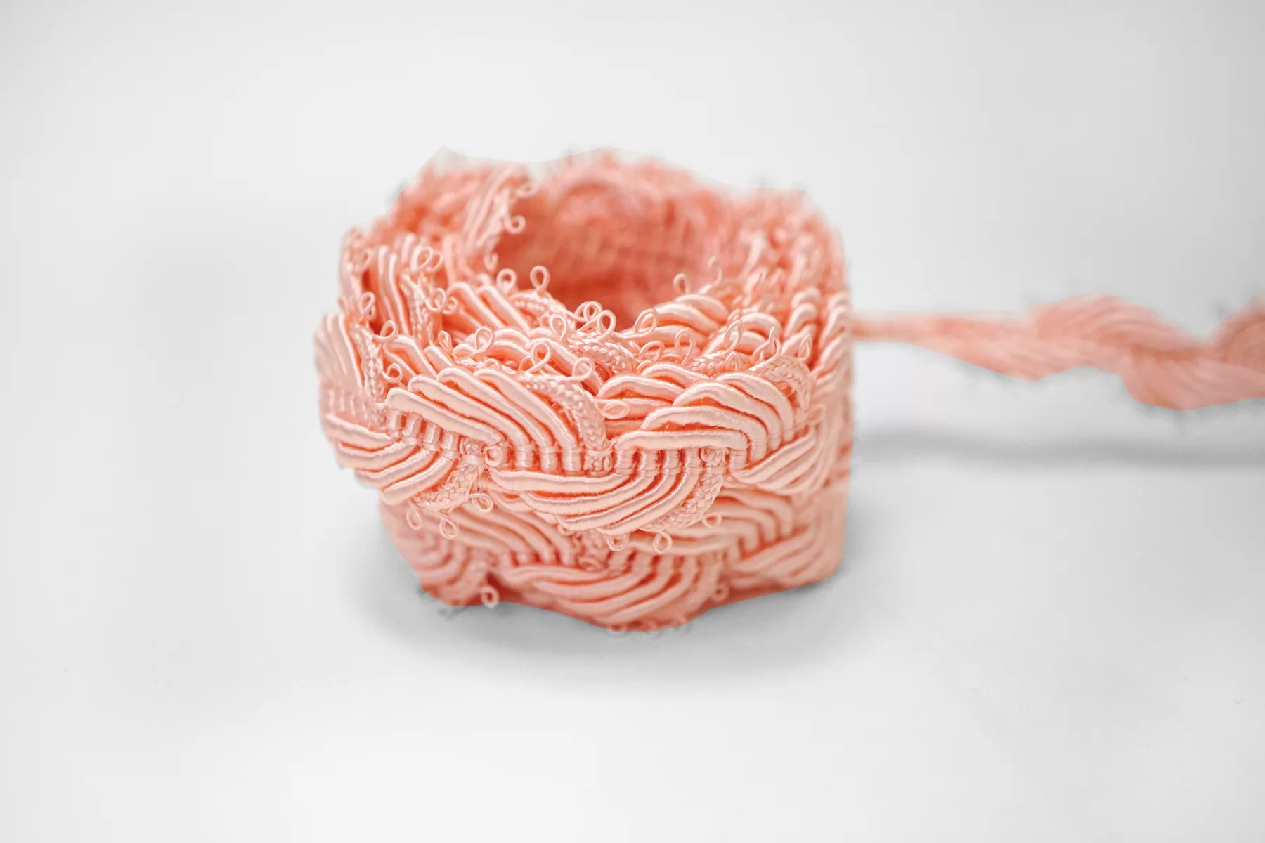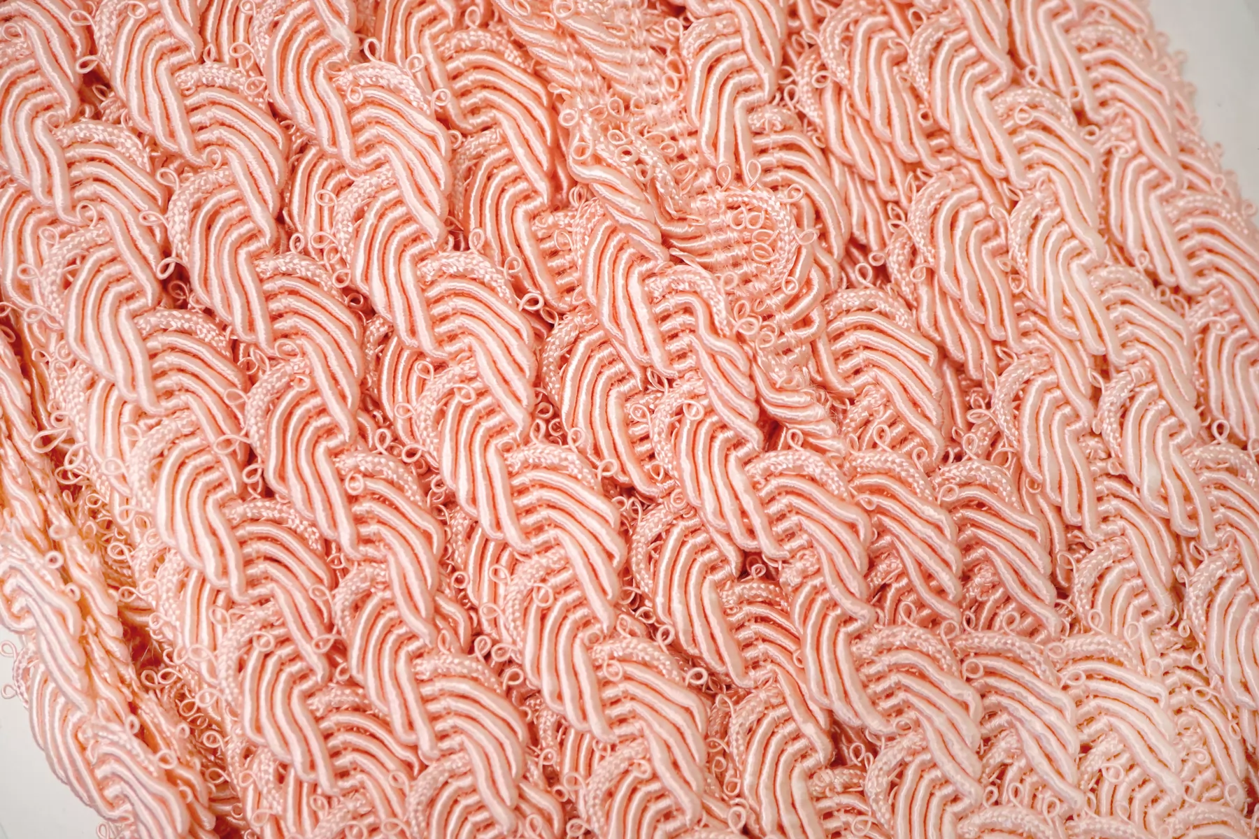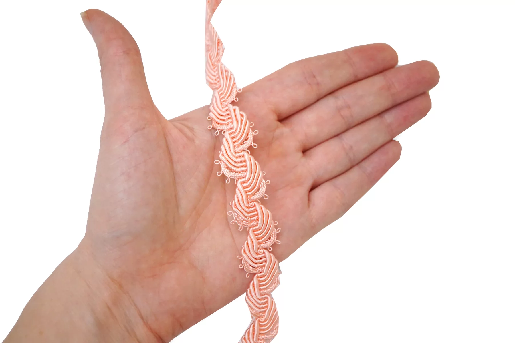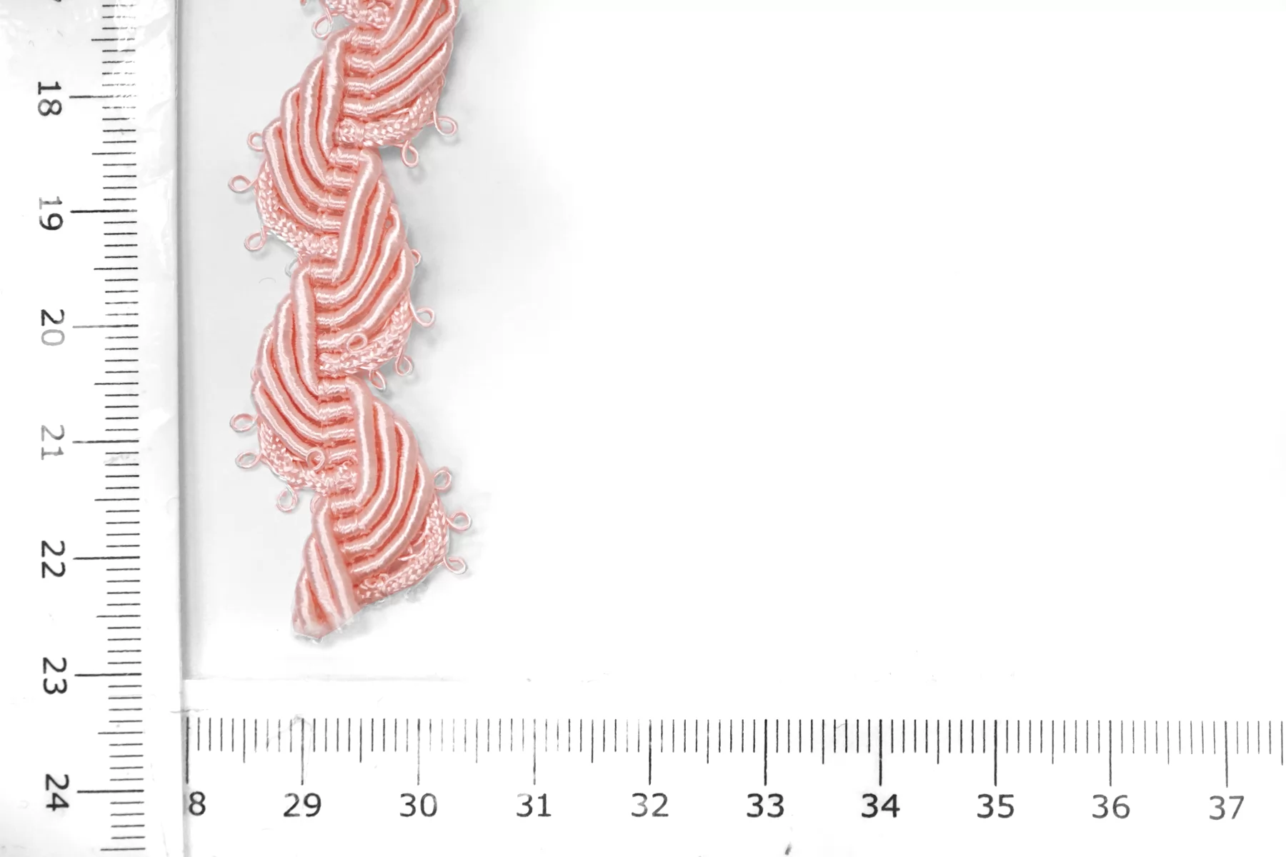 Итальянская декоративная тесьма персиково-розового оттенка. Не тянется. Отлично подойдет для отделки одежды и аксессуаров.