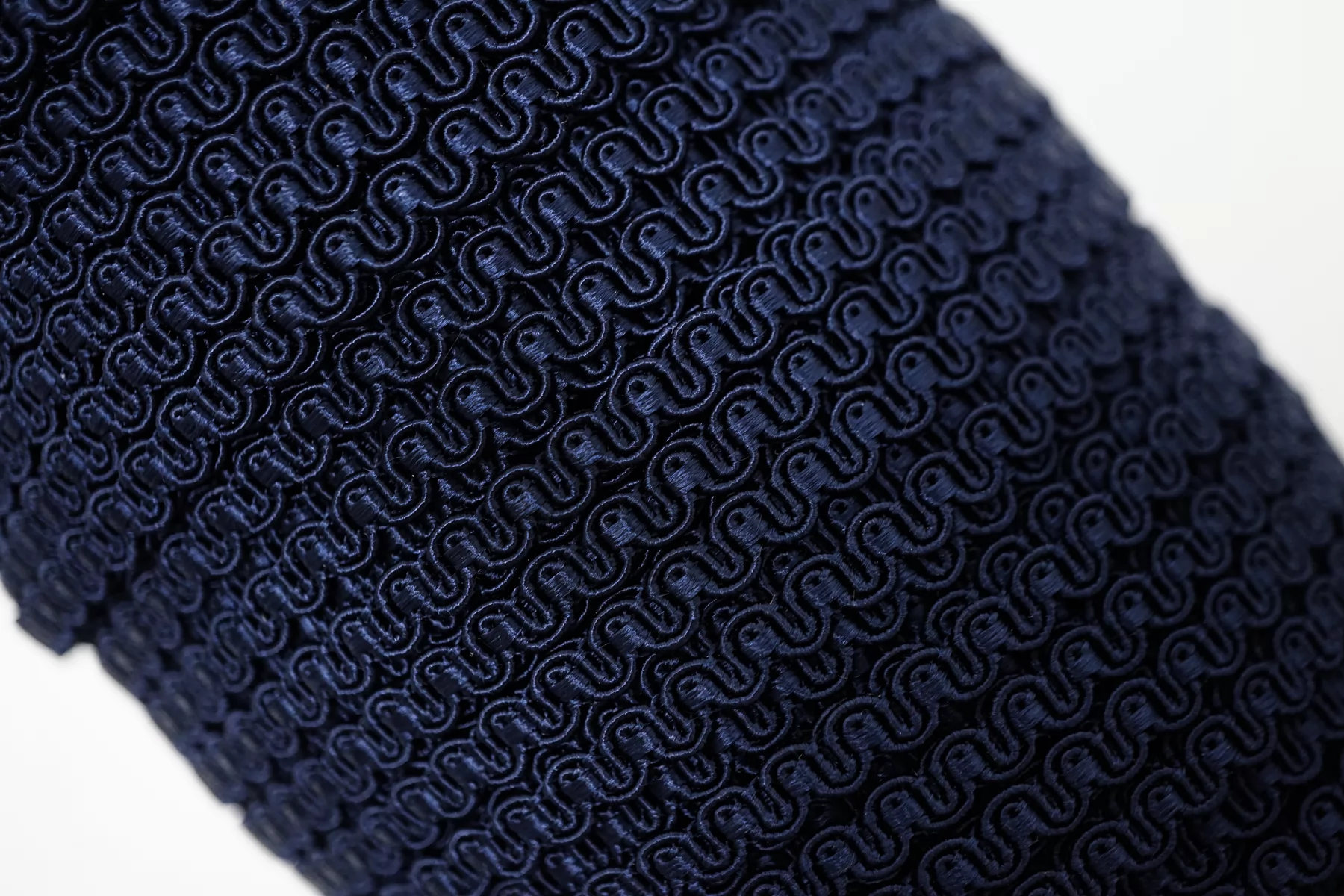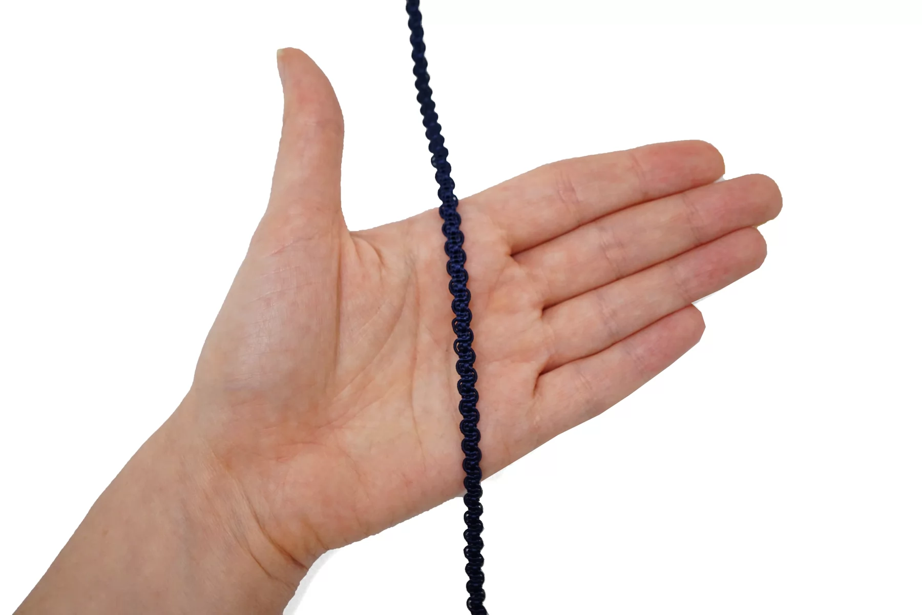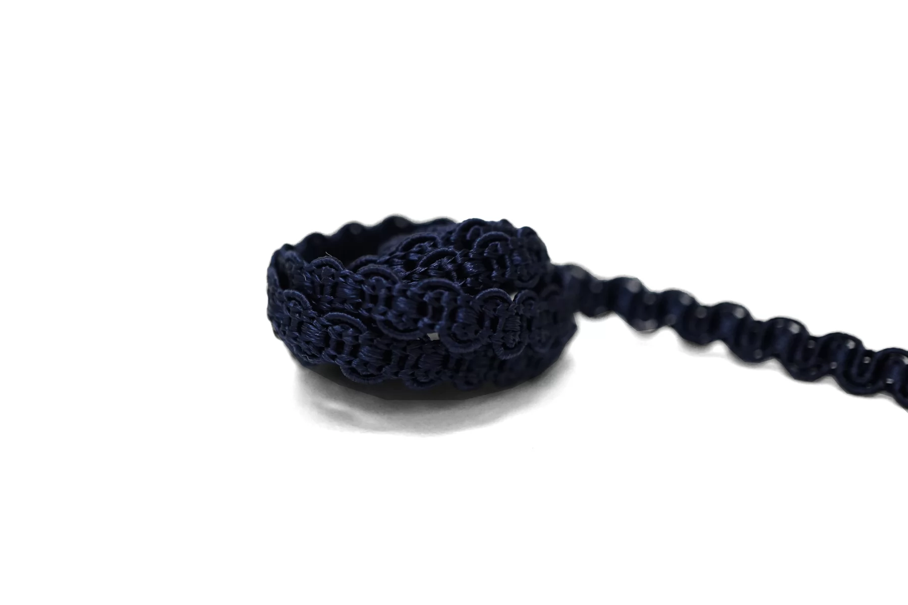 Итальянская декоративная тесьма тёмно-синего цвета. Не тянется. Отлично подойдет для отделки одежды и аксессуаров.