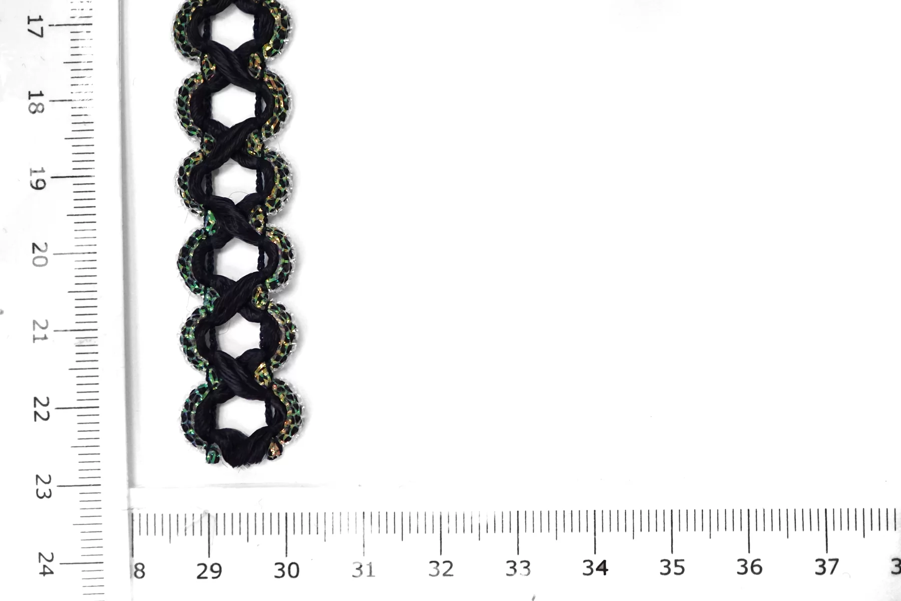 Характеристики: Состав 90% полиэстер 10% люрекс. Ширина 1,5 см.