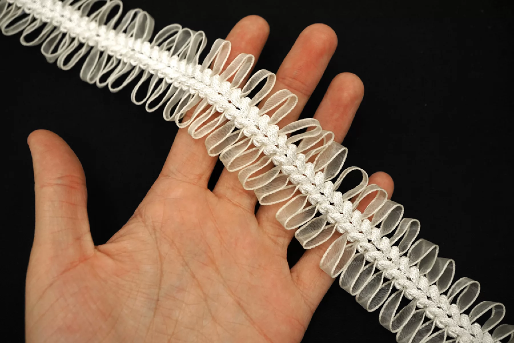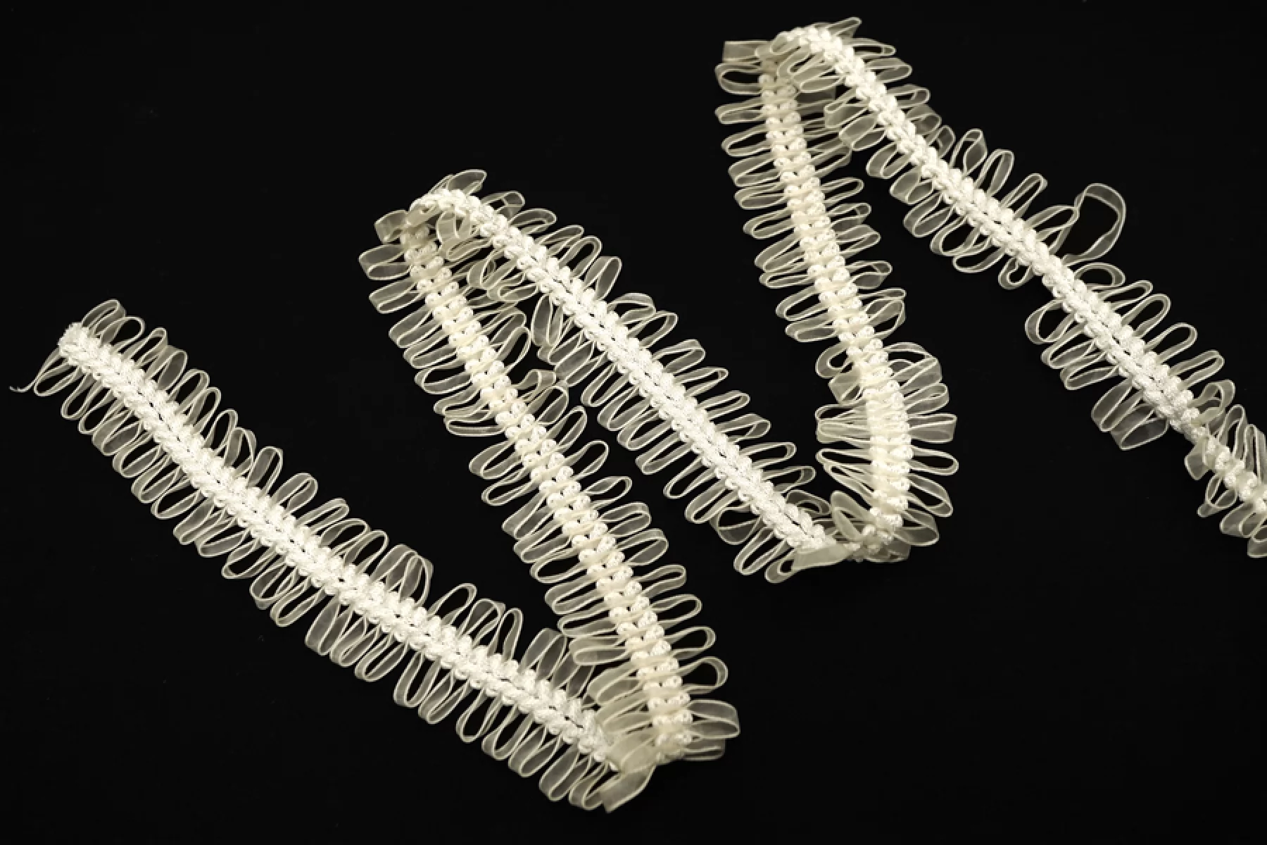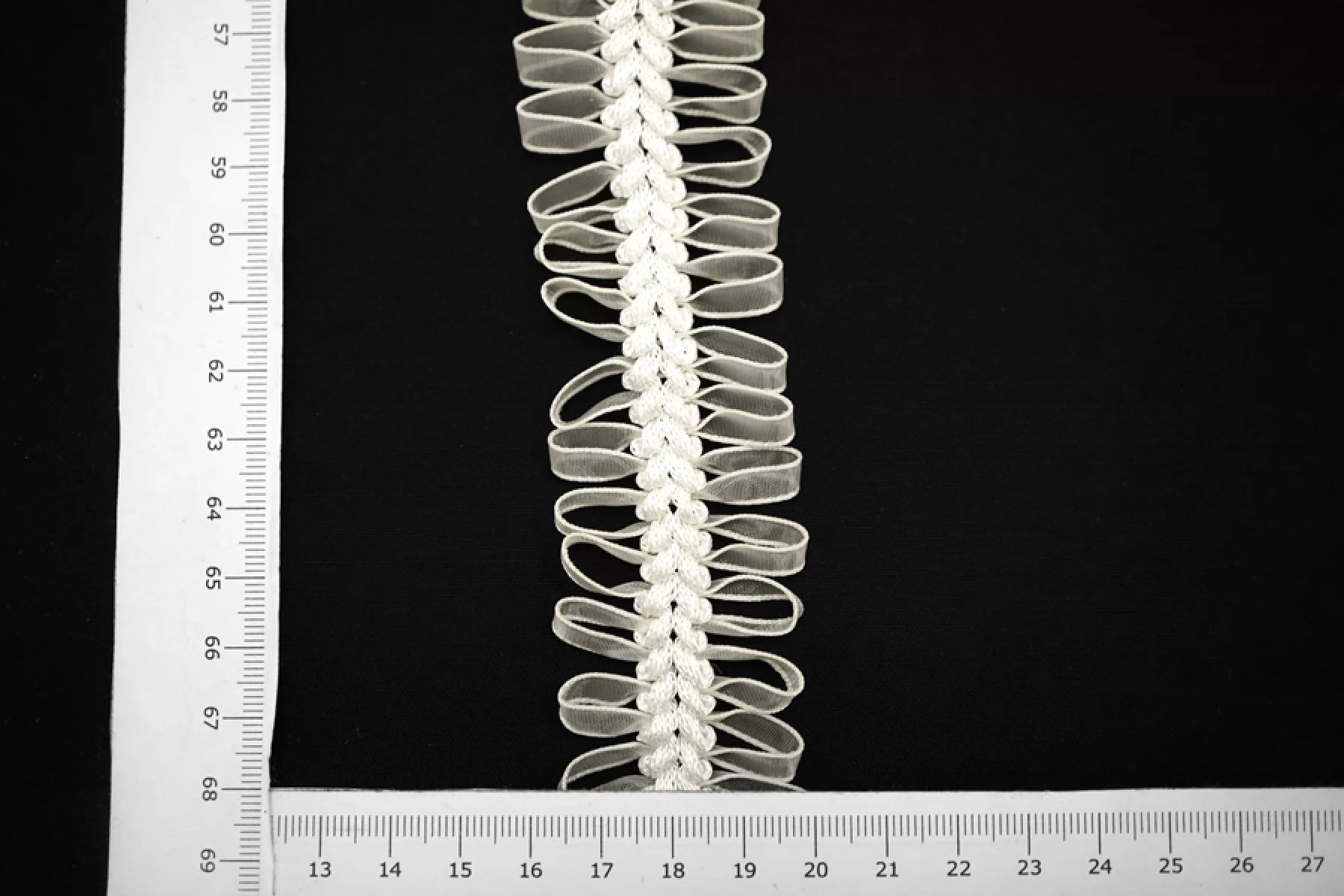 Итальянская тесьма в молочном цвете. Мягкая, пластичная, хорошо держит форму. Отлично подойдет для пошива нижнего белья, отделки одежды и аксессуаров.
