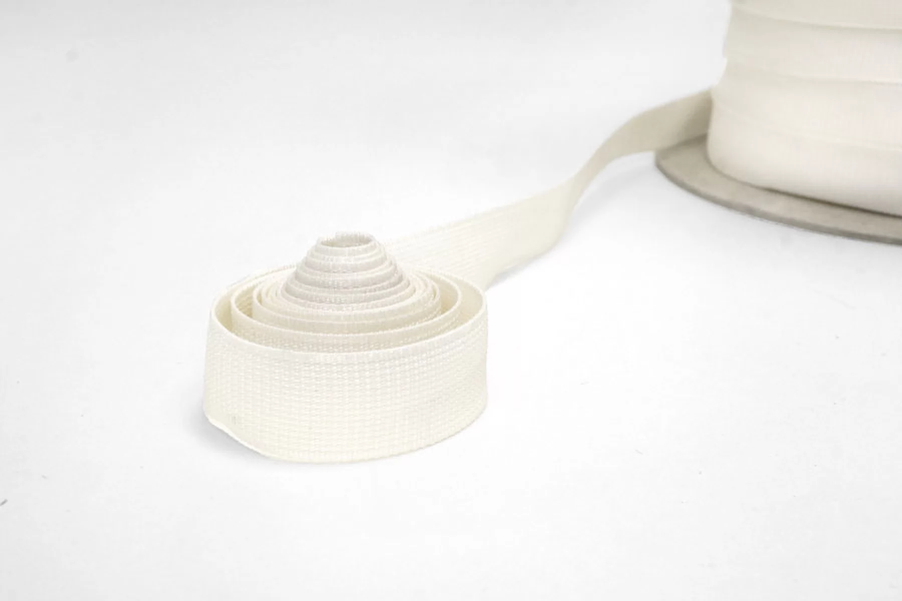 Отделочная тесьма молочного оттенка, гладкая, блестящая, формодержащая. Ширина 2 см. Состав: 100% вискоза.