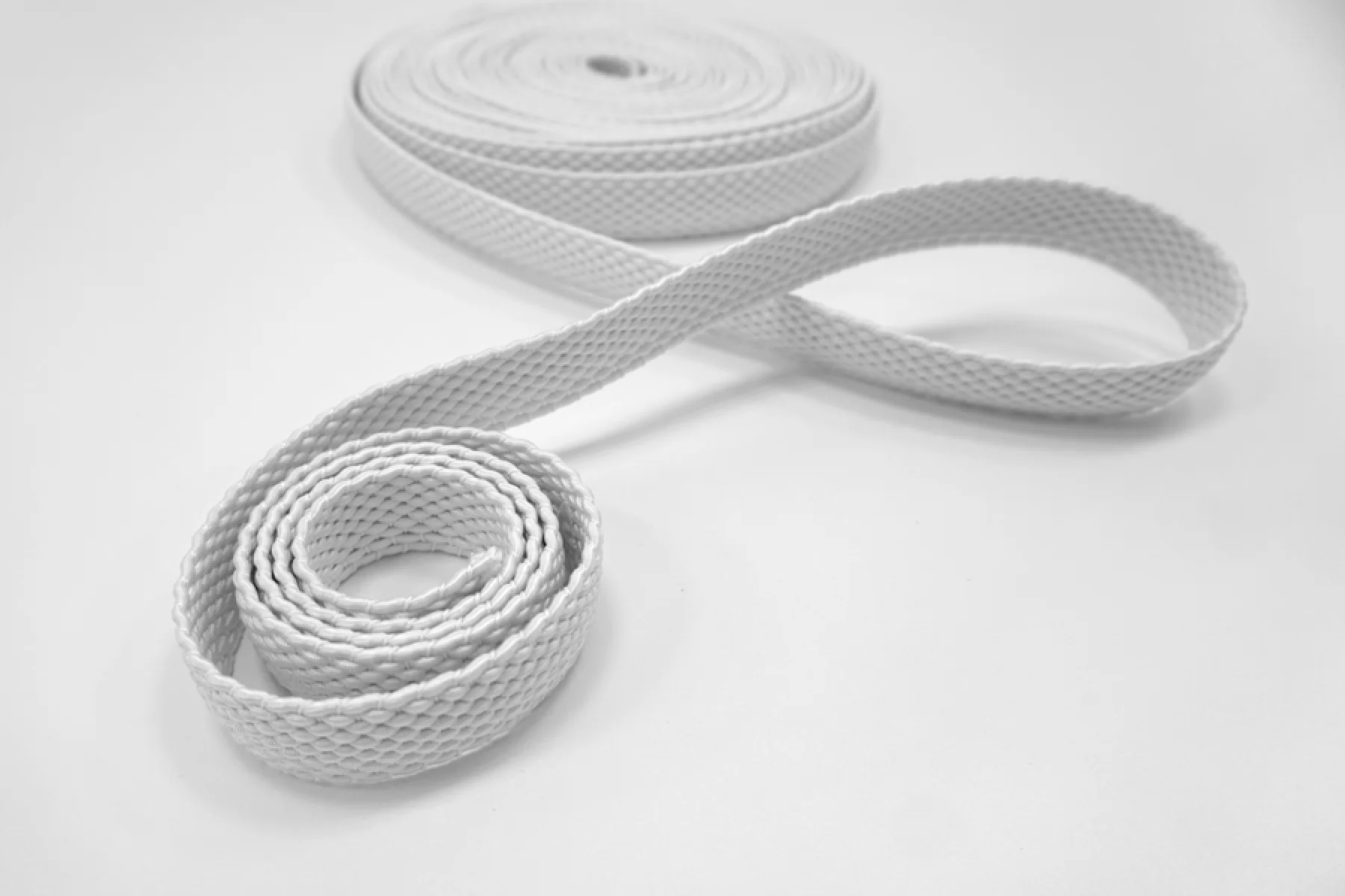 Резинка белого цвета, ширина 2,5 см, плотная, очень тугая, плохо растягивается. Сделана из плотно связанных между собой резинок. Подойдет для отделки, ремешков и аксессуаров.