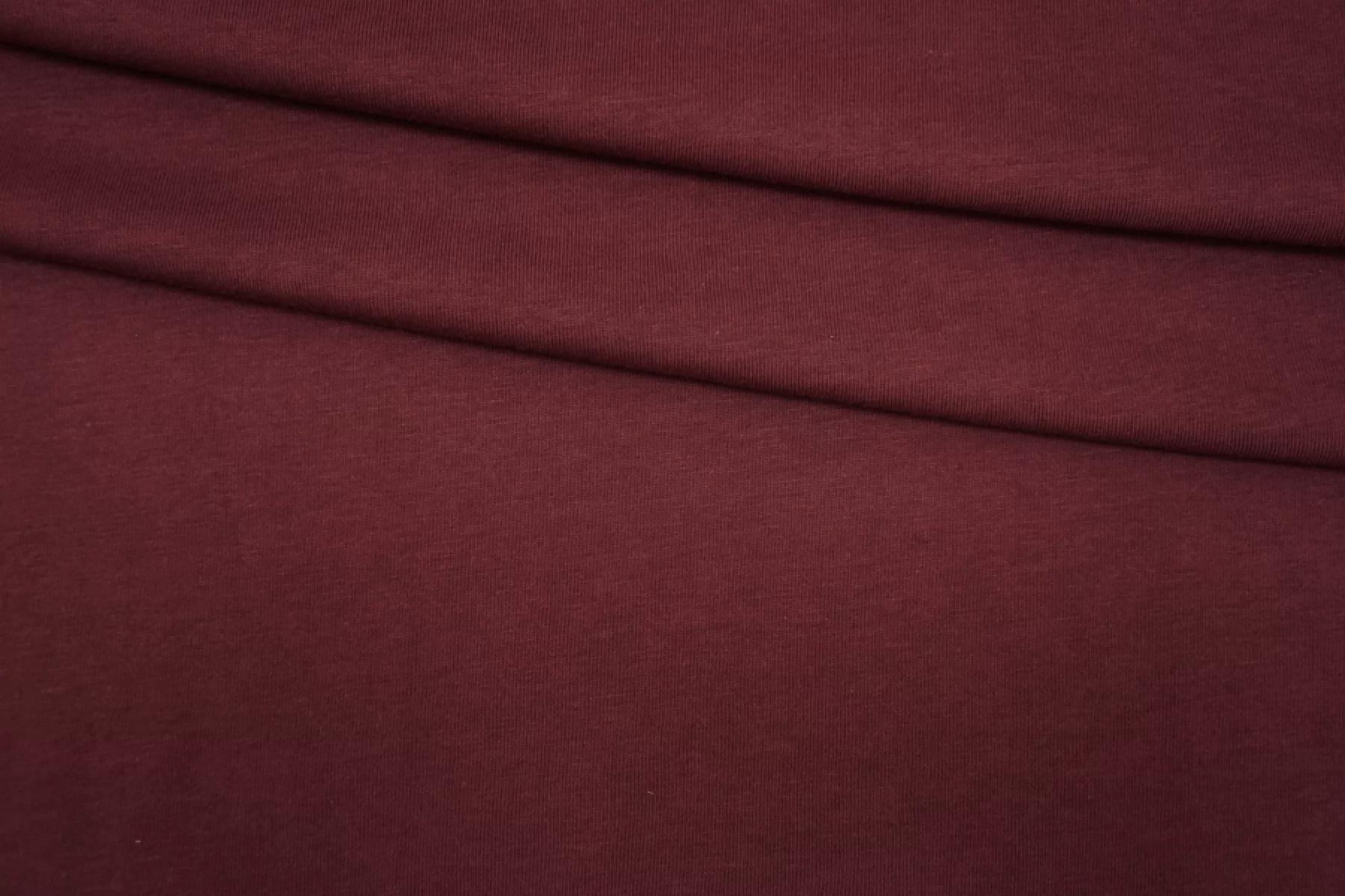 Футболочный трикотаж из хлопка, по плетению кулирная гладь. Цвет неяркий, приглушенно-винный. Трикотаж просвечивает при растяжении, пластичный, эластичный. Подойдет для пошива майки, футболки, топа, платья-футболки.