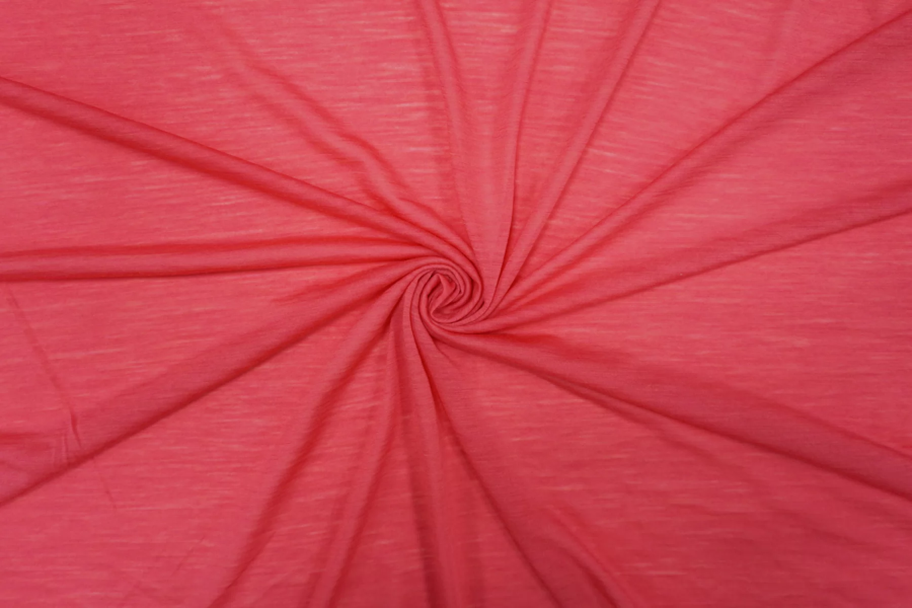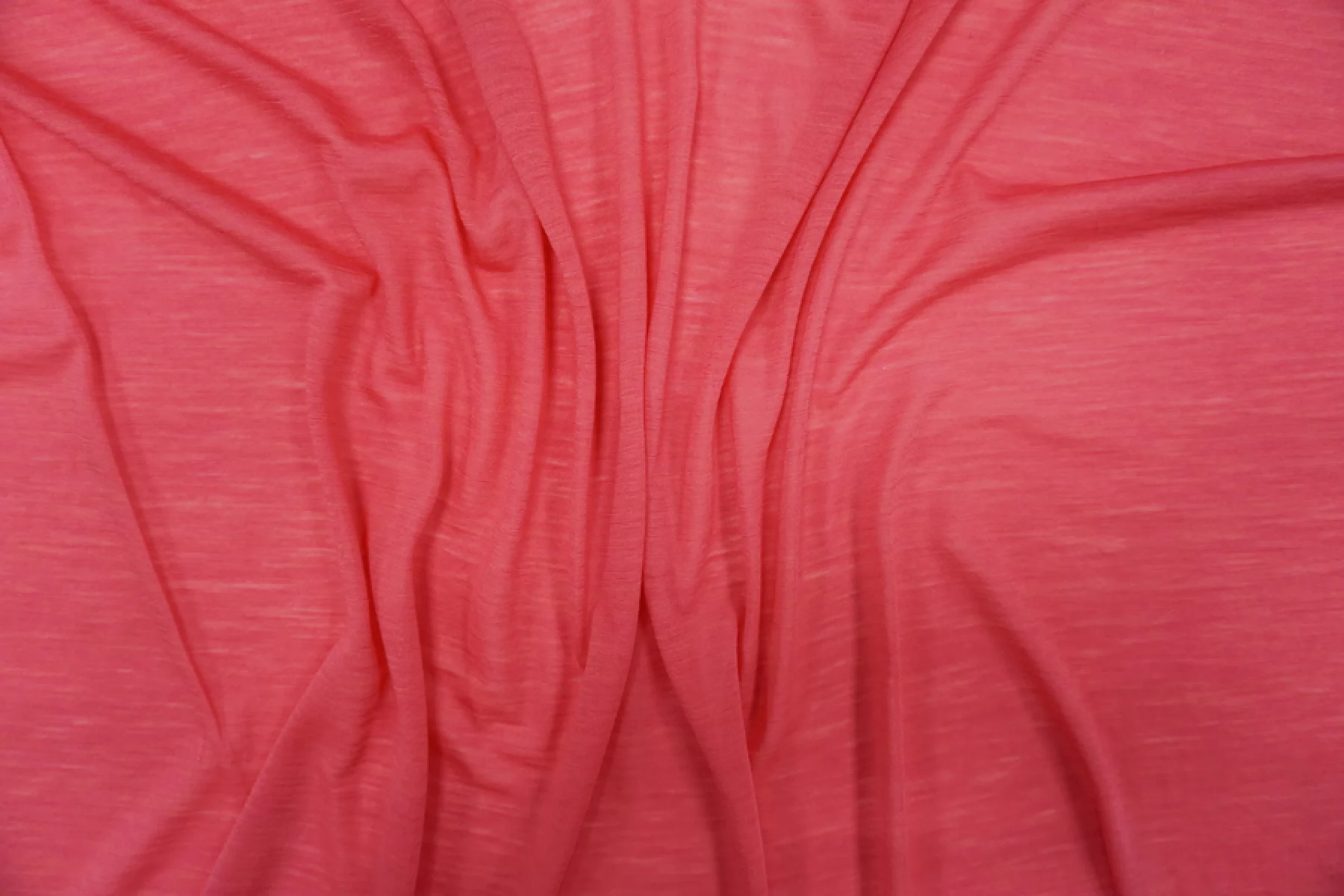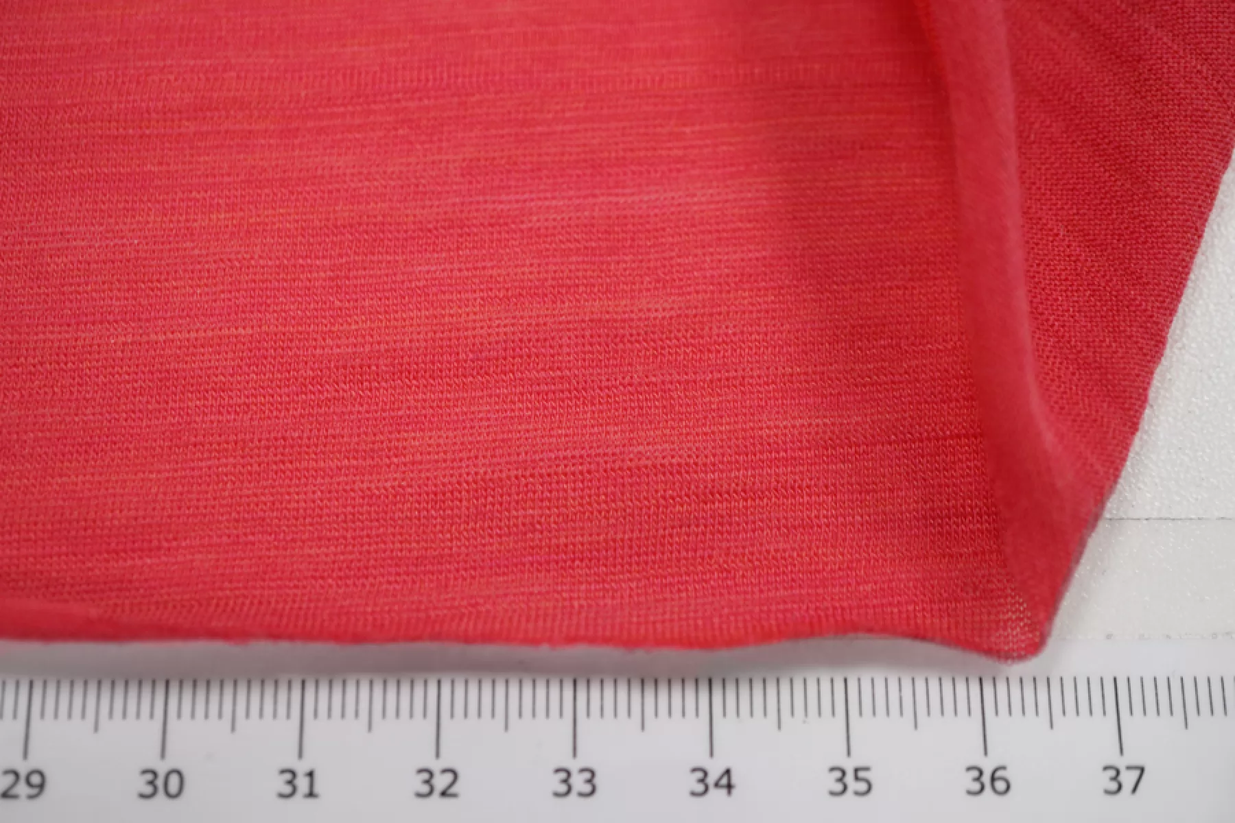 Тонкий трикотаж из шерсти, по плетению кулирная гладь. Цвет малиновый. Трикотаж просвечивает, пластичный, эластичный. Подойдет для пошива майки, футболки, топа, можно использовать в качестве подклада, греющей нижней юбки, тонкой водолазки.
