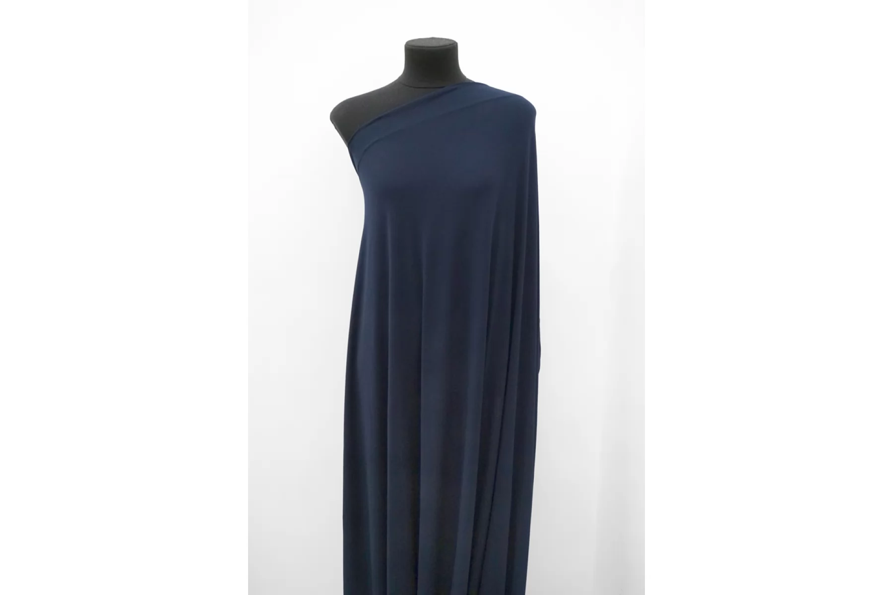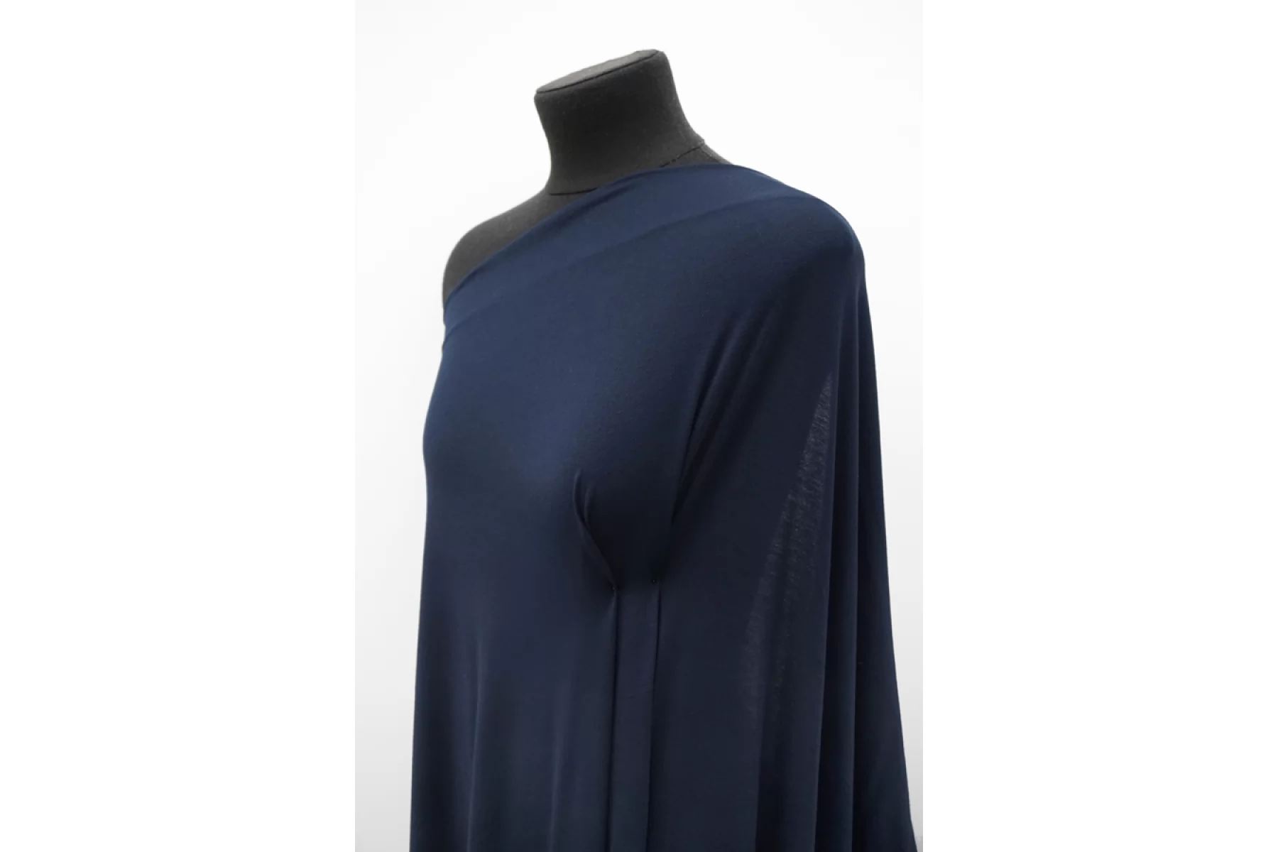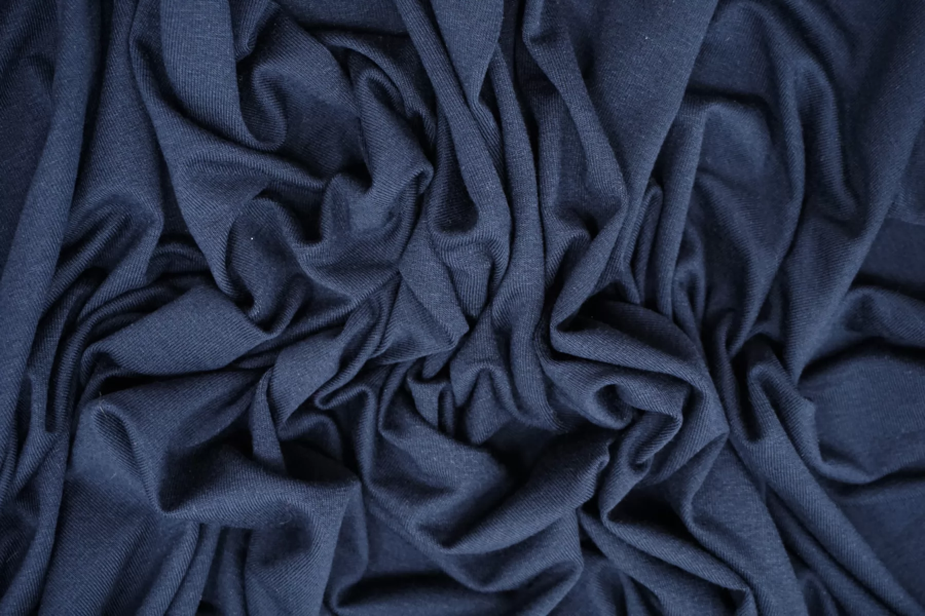 Итальянский трикотаж - кулирная гладь из вискозы в темно-синем цвете. Трикотаж немного просвечивает, пластичный, эластичный. Тактильно приятный и мягкий, бархатистый. Подойдет для пошива майки, футболки, топа, платья-футболки, домашней одежды.
