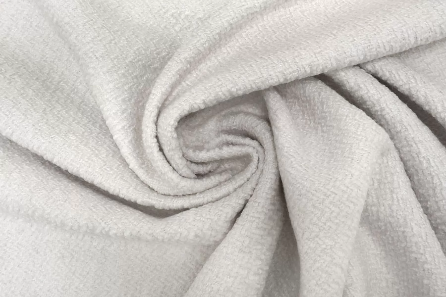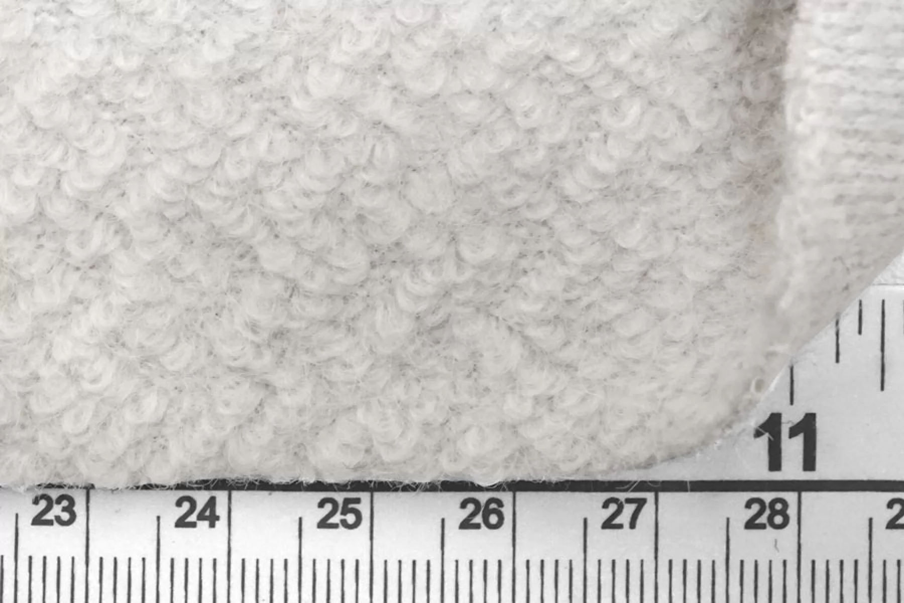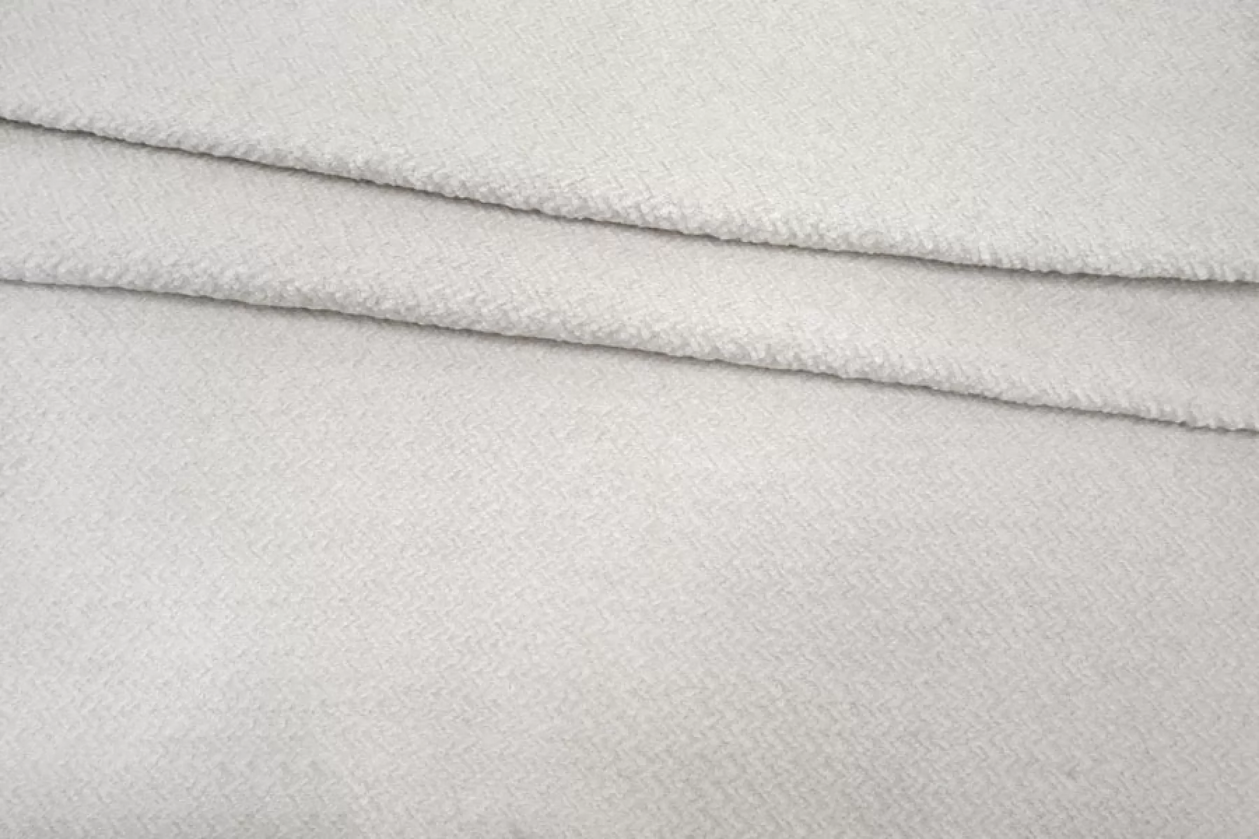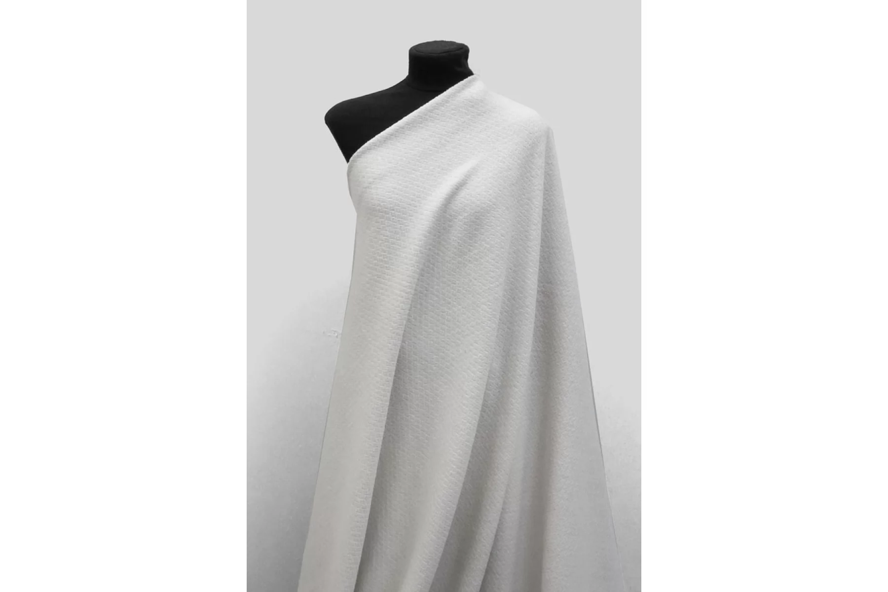 Шикарный шерстяной плотный трикотаж приятного серовато-молочного оттенка. Ворс образует слегка заметный зигзаг. Мягкий и приятный наощупь, немного суховатый. Совсем немного тянется. Не просвечивает. Не мнется. Держит форму. Прекрасный вариант для пальто, теплого костюма или жакета, теплой рубашки, кардигана. Учитывайте возможную усадку. Уход деликатный.