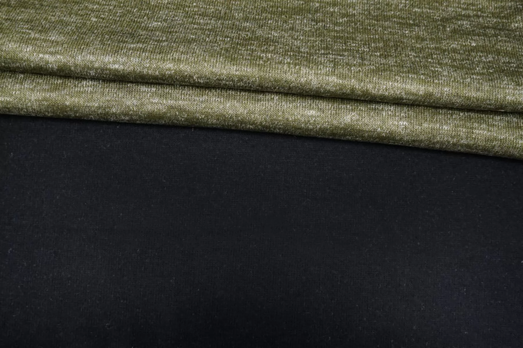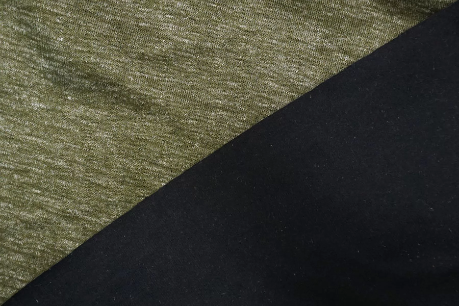 Прекрасный двусторонний трикотаж одна сторона травянисто-зеленого оттенка, другая - черного. Тактильно суховатый, мягкий, гладкий, практически не колется. Около 1 мм толщиной. Плотненький, не просвечивает. Хорошо тянется за счет плетения. Неплохо драпируется, держит форму. Не мнется. Подойдет на любые трикотажные изделия, кардиганы, кофты и не только. Уход за шерстью деликатный. При необходимости используйте подкладочный материал.