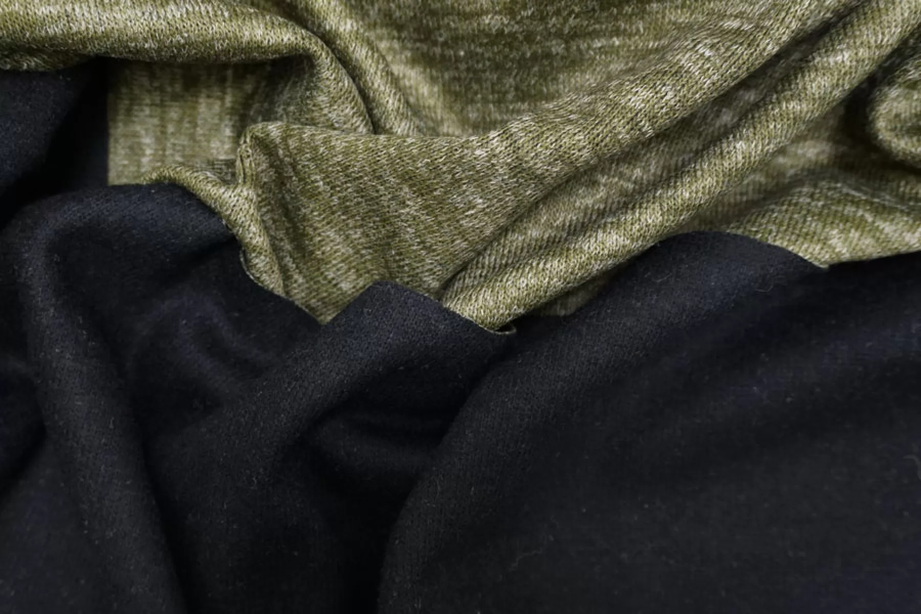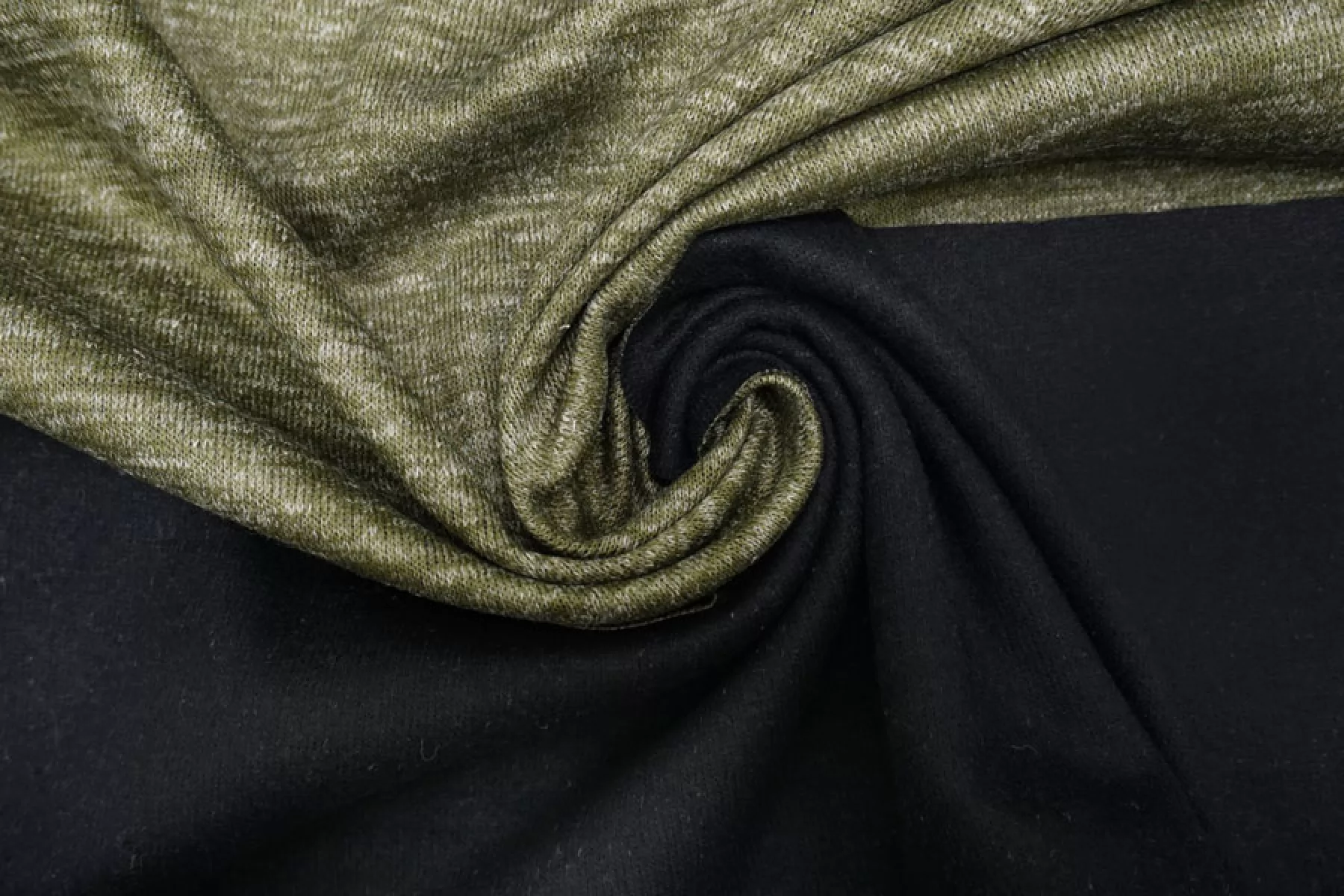 Трикотаж дабл двусторонний шерстяной Зелено-черный TRC H49 Y50 18072522
