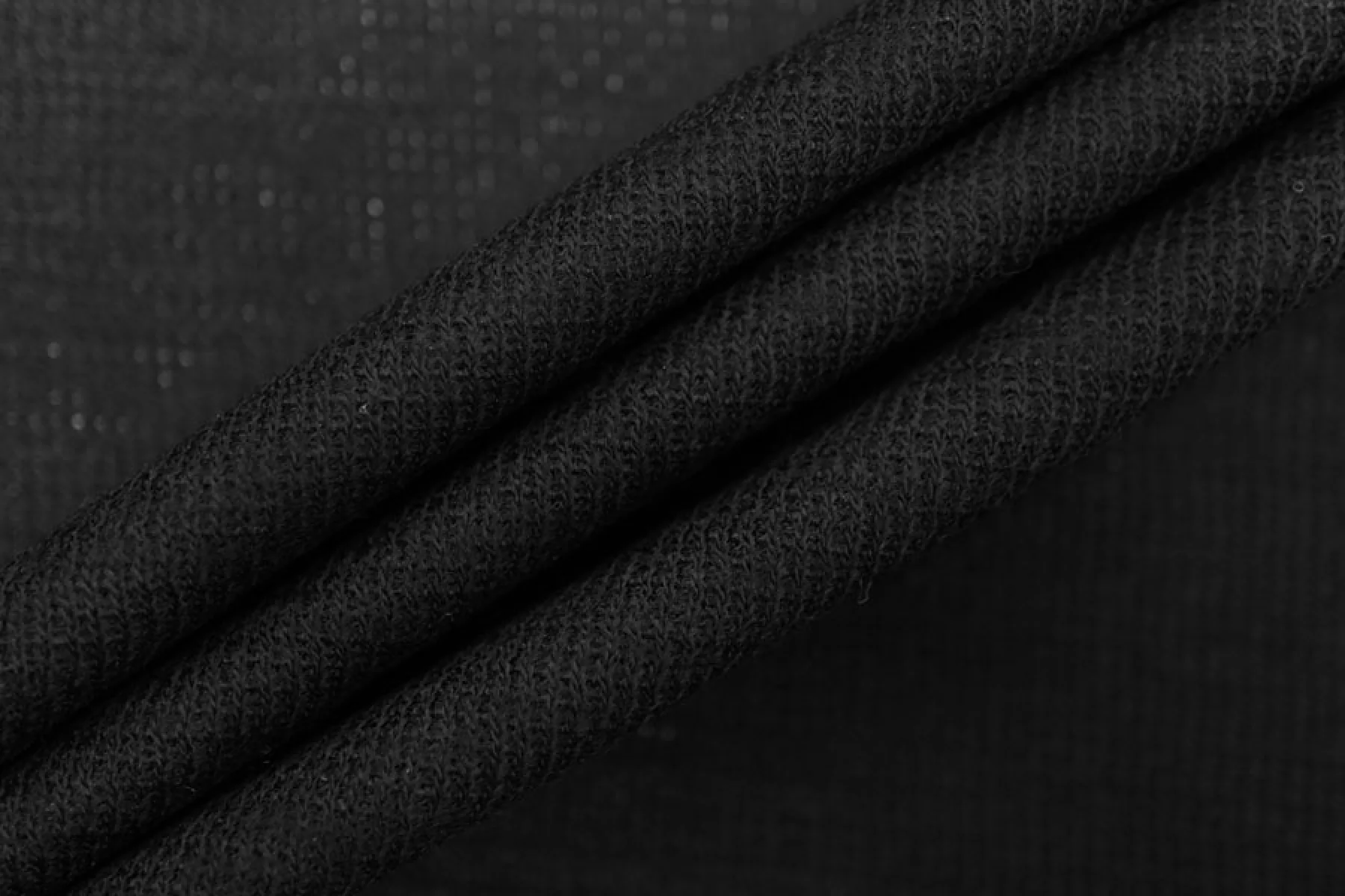 Трикотаж двусторонний шерстяной на хлопке Черный TRC H49 W70 18072536
