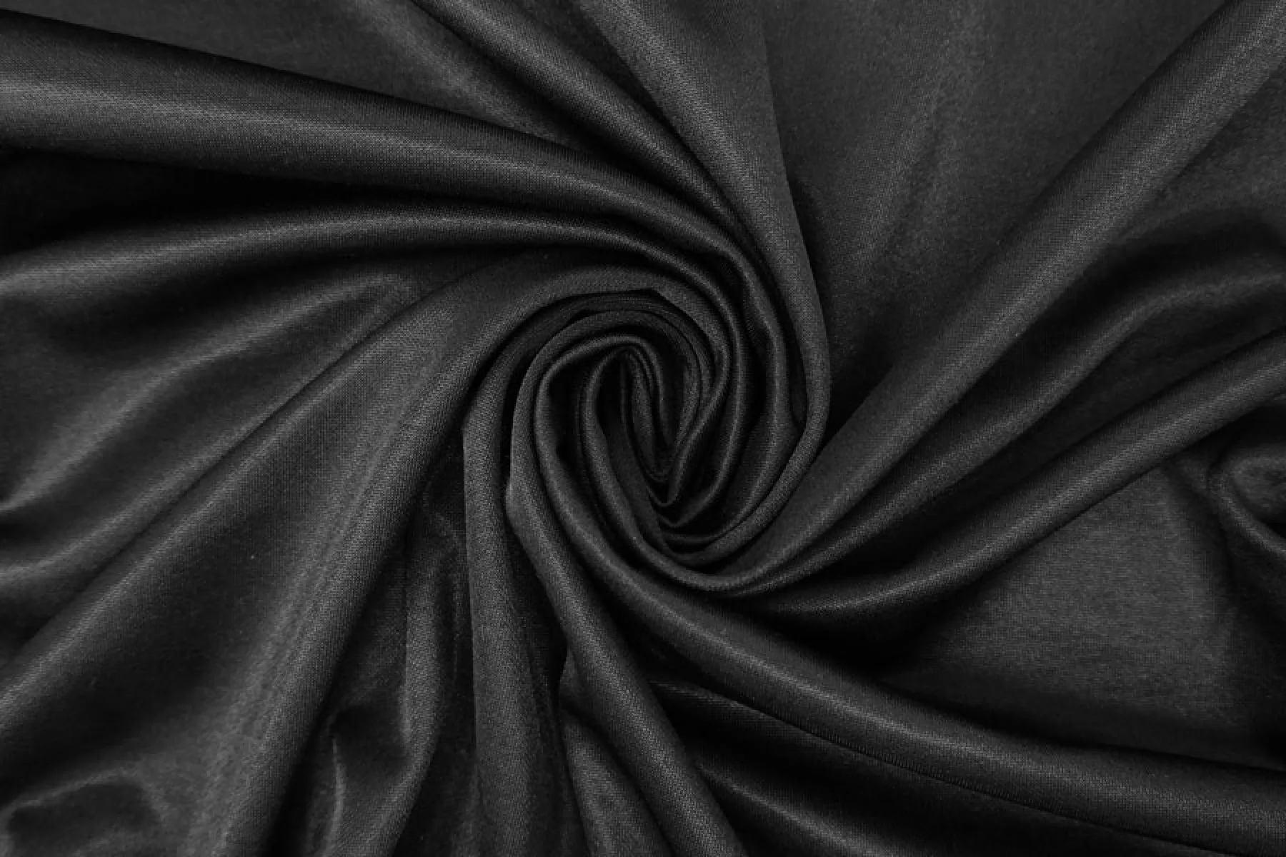 ВНИМАНИЕ!! Встречаются вкрапления белых нитей каждые 1-1,5м, см. фото. Интересный вискозный трикотаж в черном цвете. Лицевая сторона-холодный трикотаж из вискозы, гладкий, скользкий, с легким лоском. Изнаночная сторона это очень мягкий хлопковый трикотаж, так же в черном цвете. Тактильно обе стороны очень приятные. Материал тянется, просвечивает немного силуэт при сильном растяжении. Подойдет для пошива свитшота, платья, юбки, брюк.