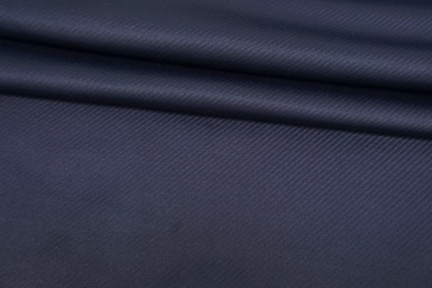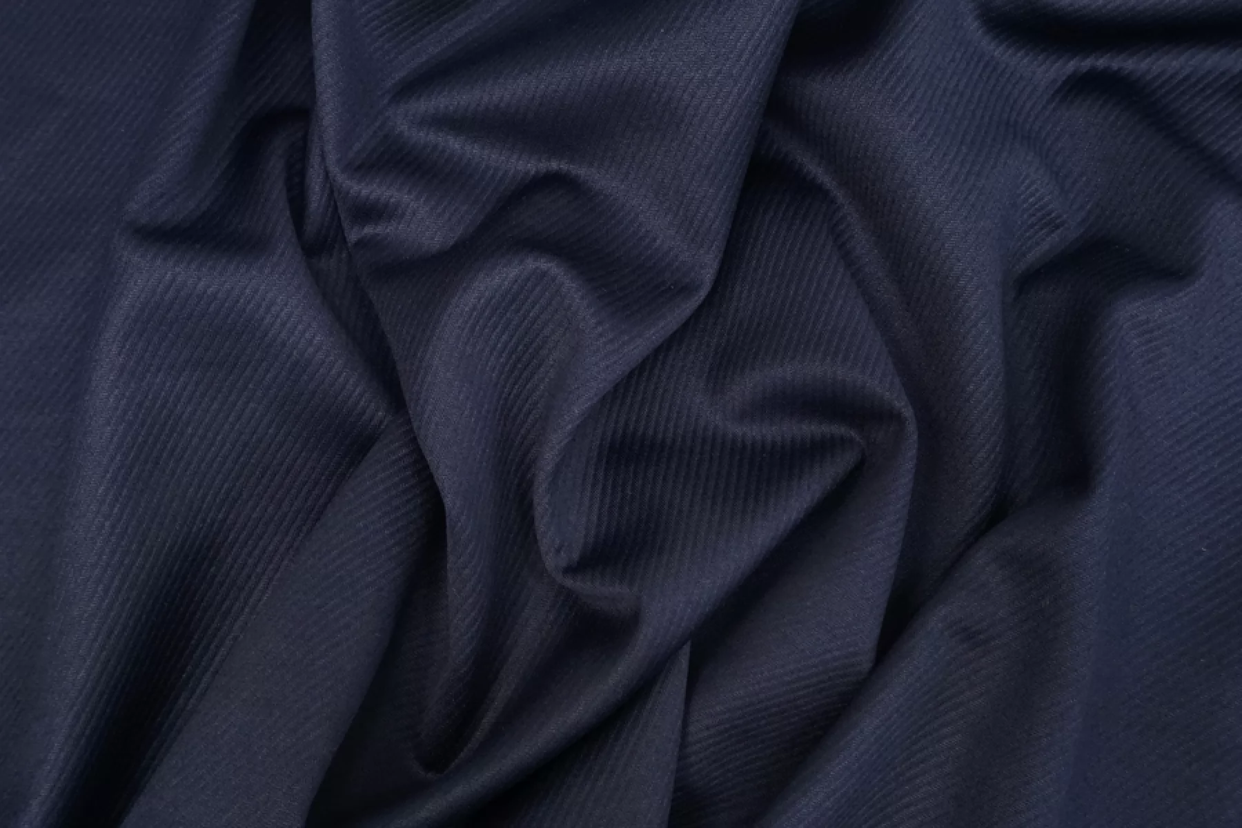 Классный фактурный трикотаж с шерстью синего цвета. Полотно стабильное. С лицевой стороный фактурная крупная диагональ из полиэстера, изнаночная сторона - шерстяная. Гладкая, приятная и мягкая. Красиво блестит. Хорошо тянется. Не просвечивает. Форму держит. Пластичная. Отличный вариант на платья, кофты, лонгсливы, костюмы.