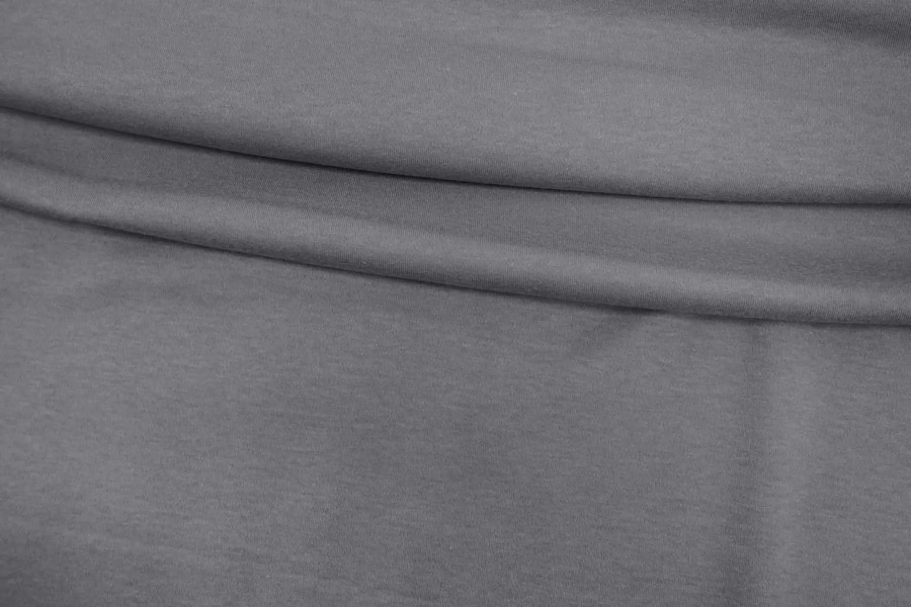 Хлопковый трикотаж от бренда Etro, серого цвета, по вязке ближе к интерлоку. Хорошо тянется, немного просвечивает. Тактильно очень приятный, мягкий, гладкий. Пластичный, форму практически не держит. Очень комфортный к телу. Можно использовать для пошива маек, футболок, платьев, туник и другого.