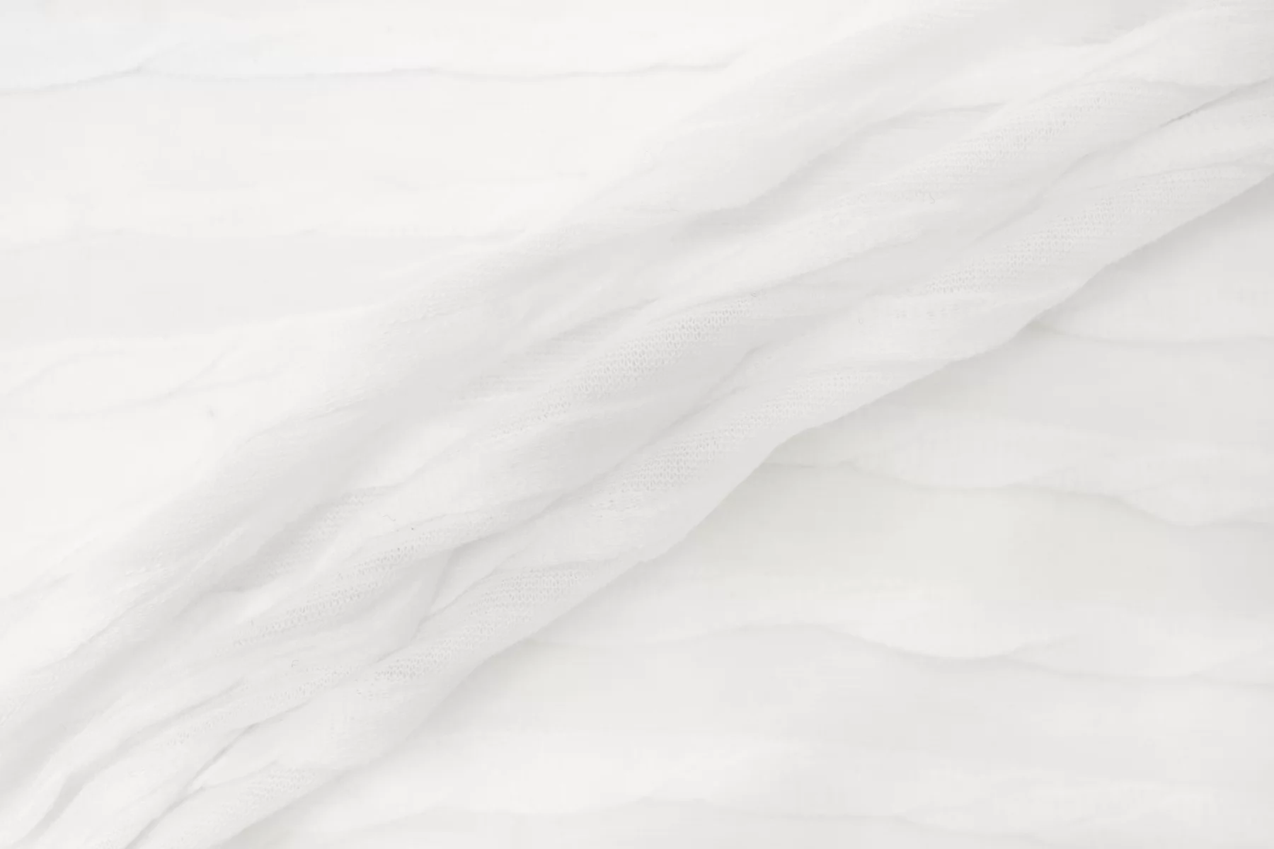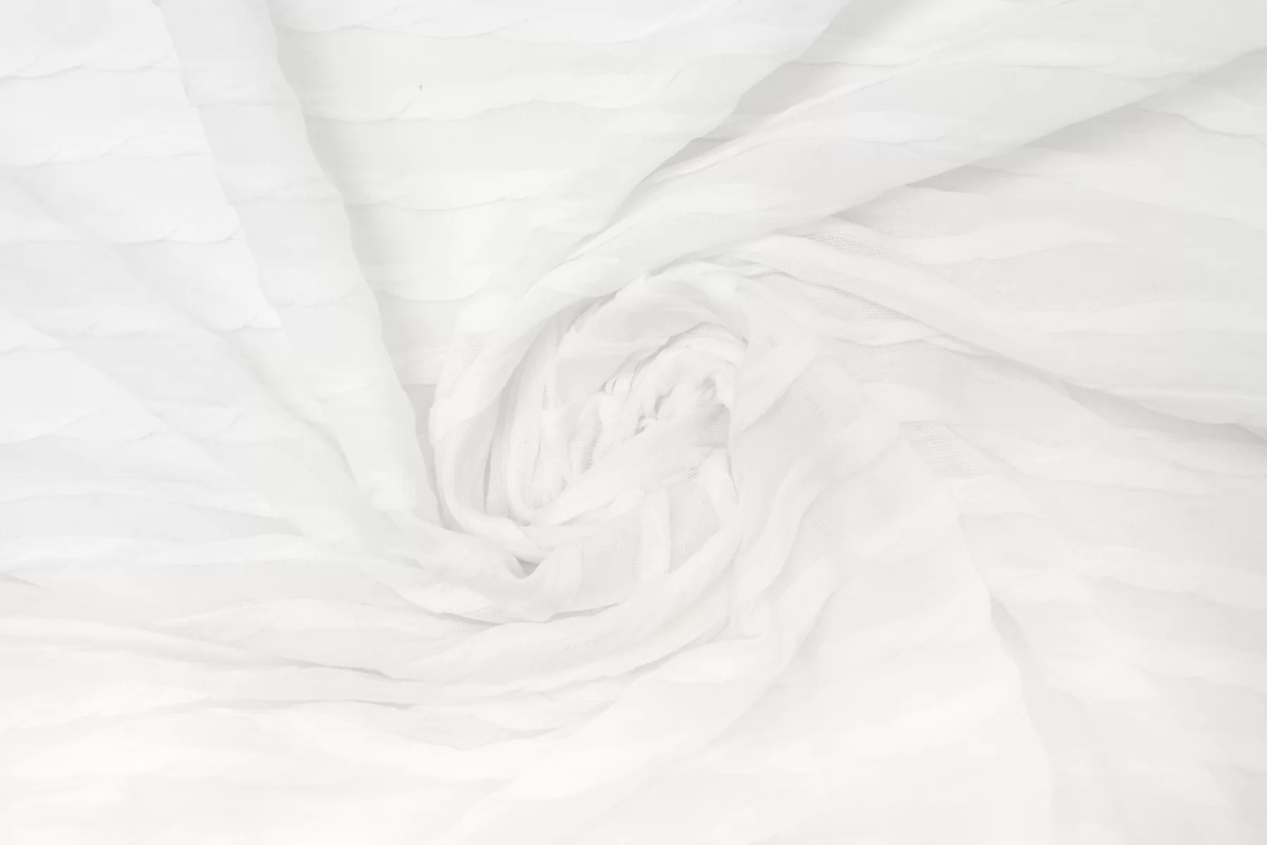 Хлопковый трикотаж с рельефной фактурой в белом цвете. Материал тактильно приятный и мягкий, тонкий. Тянется. Пластичный. Просвечивает. Отлично драпируется. Шьем майки, футболки, платья, туники, лонги.