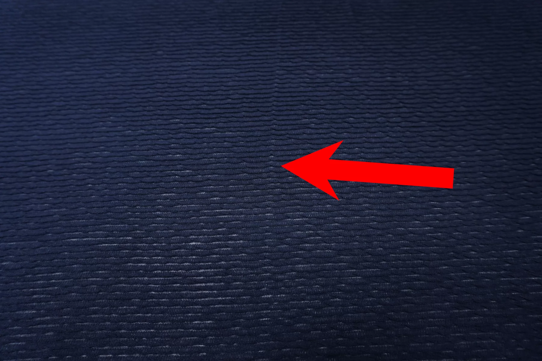 ВНИМАНИЕ!! Присутствует полоса по середине вдоль всего полотна см. фото. Хлопковый трикотаж с рельефной фактурой в тёмно-синем цвете. Материал тактильно приятный и мягкий, тонкий. Тянется. Пластичный. Просвечивает. Отлично драпируется. Шьем майки, футболки, платья, туники, лонги.