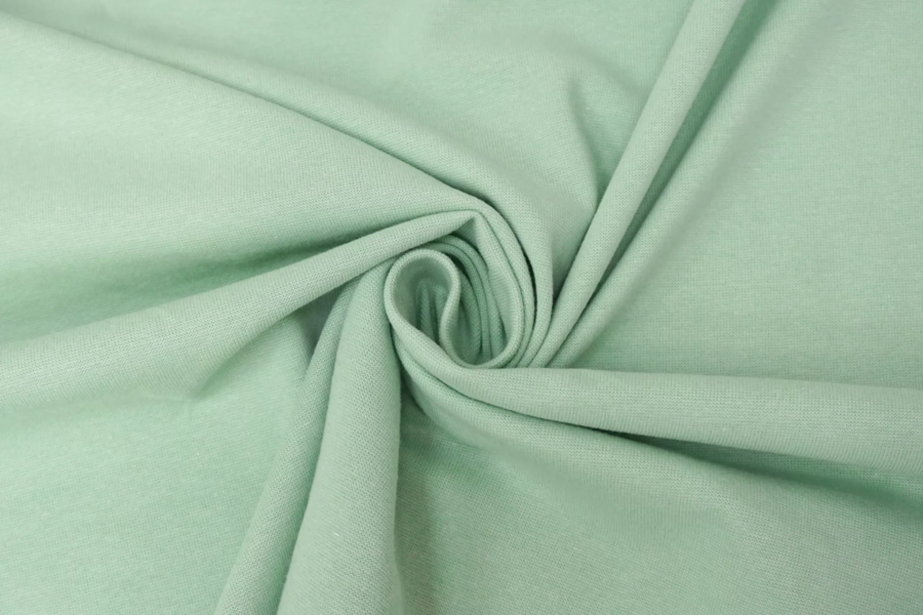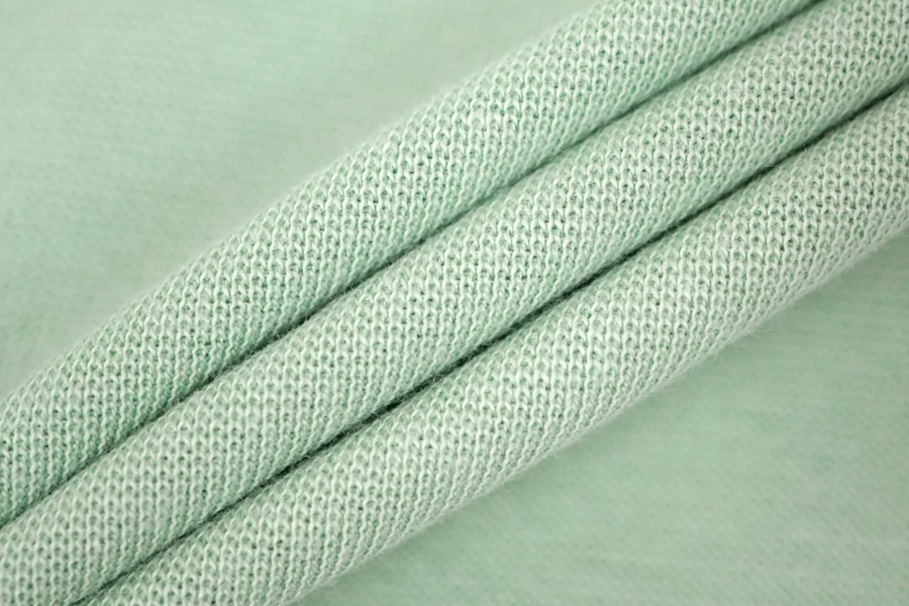 Итальянский хлопковый трикотаж - рибана оттенка шалфей. Материал пластичный, мягкий, гладкий. Плотный. Немного просвечивает. Практически не мнется. Отлично тянется за счет плетения. Подойдет для пошива майки, футболки, топа, а также манжетов, подвязов или воротников.