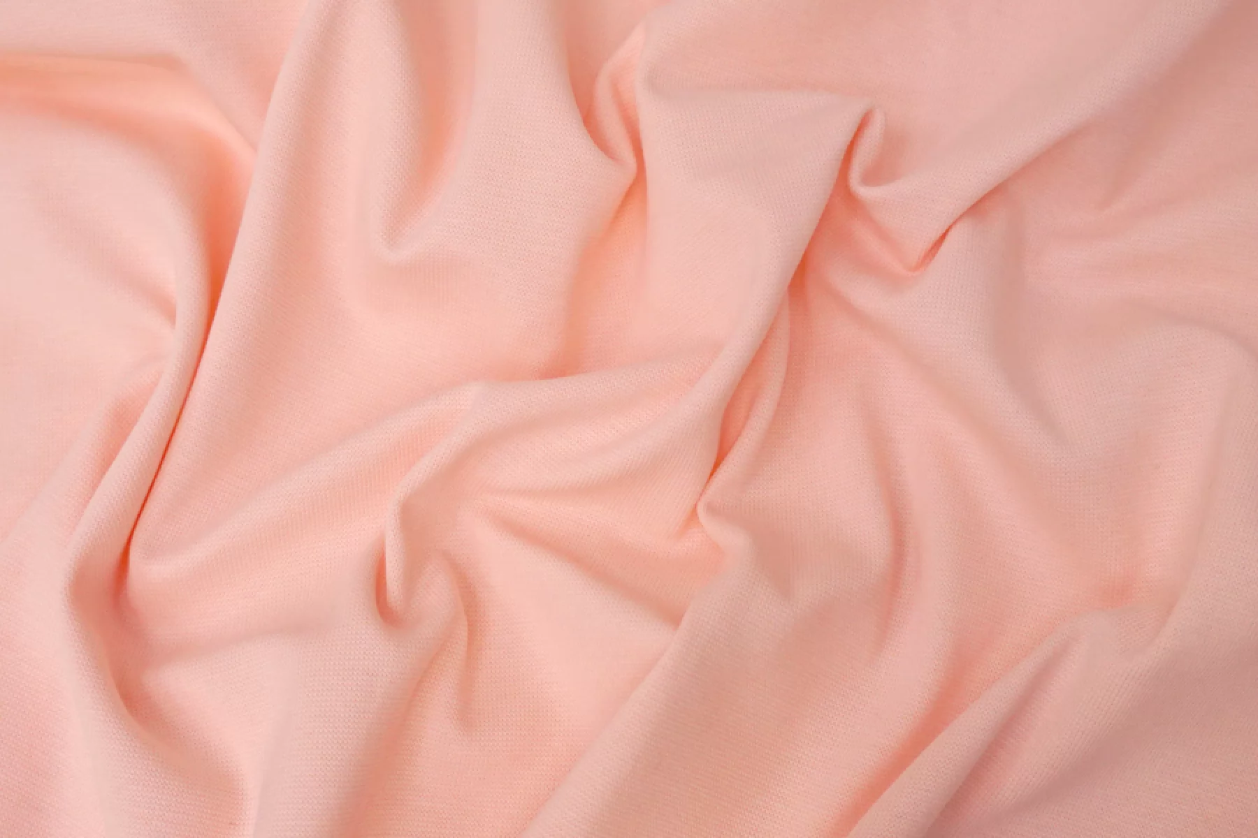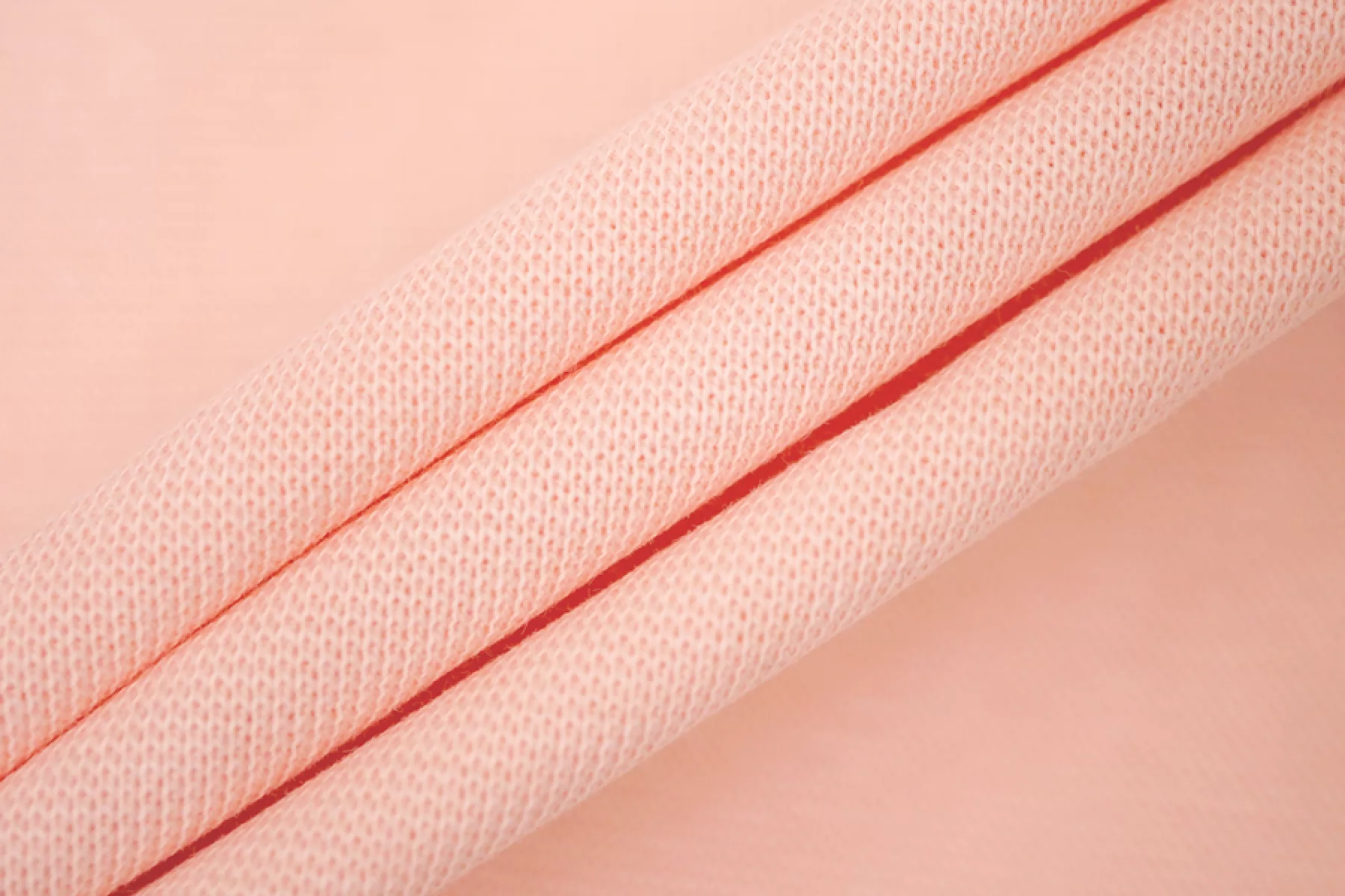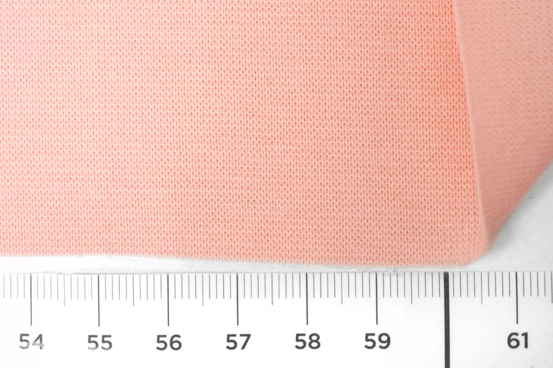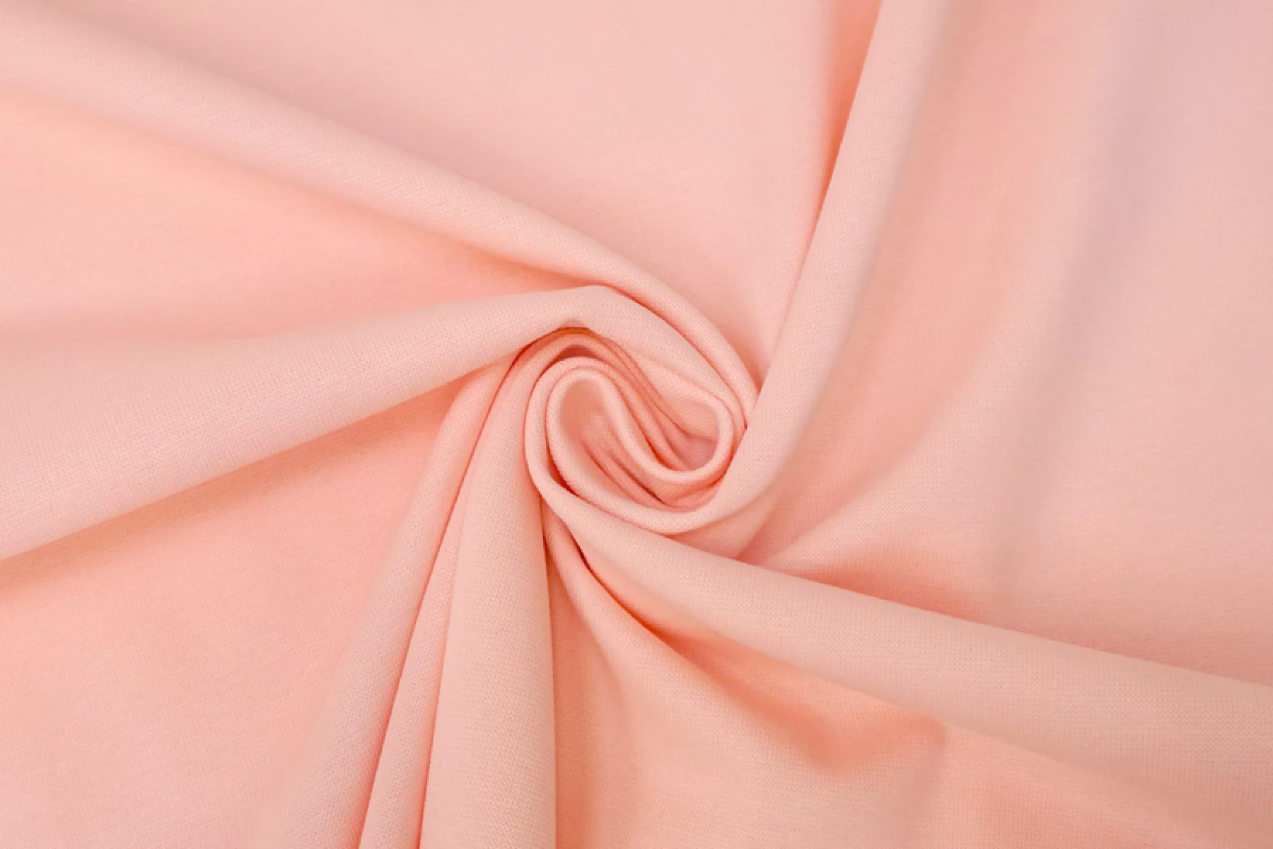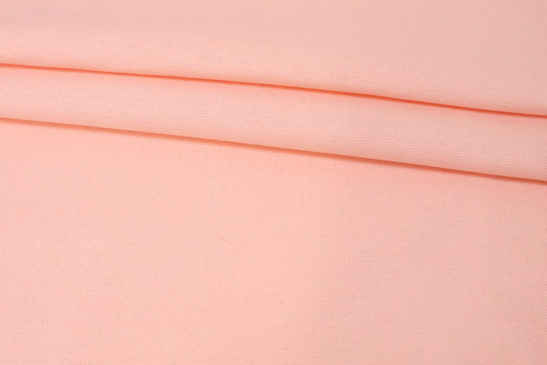 Итальянский хлопковый трикотаж - рибана светло-розового оттенка. Материал пластичный, мягкий, гладкий. Плотный, но не толстый. Немного просвечивает. Практически не мнется. Отлично тянется за счет плетения. Подойдет для пошива майки, футболки, топа, а также манжетов, подвязов или воротников.