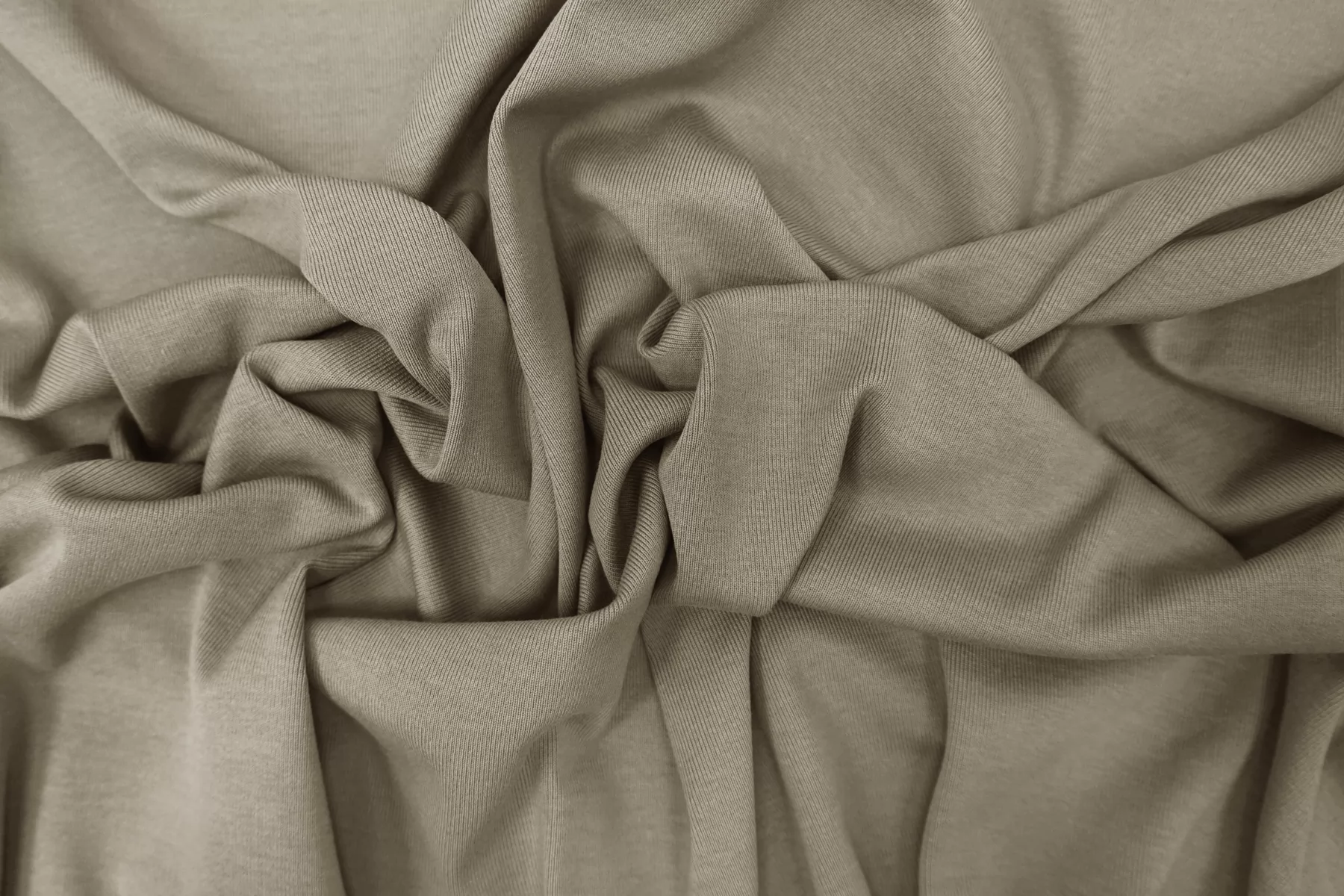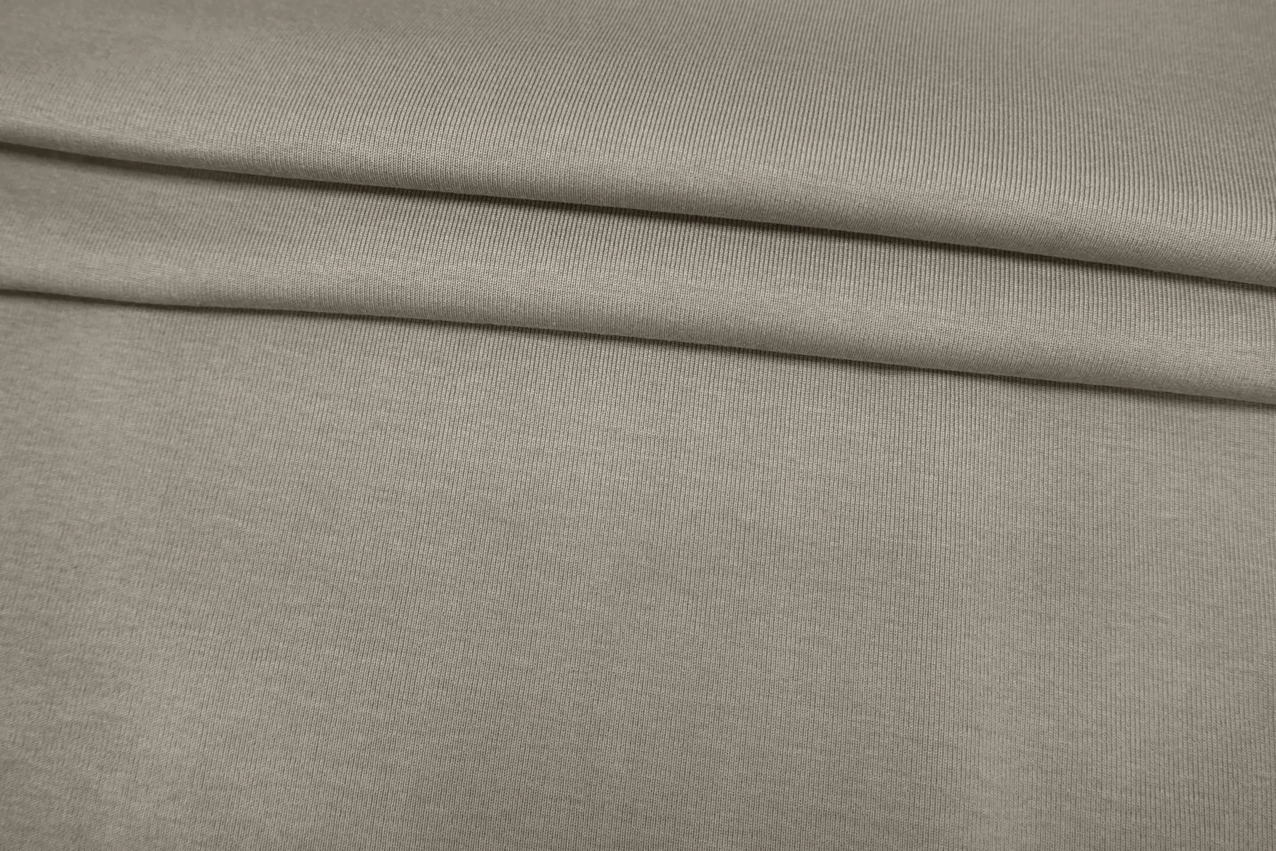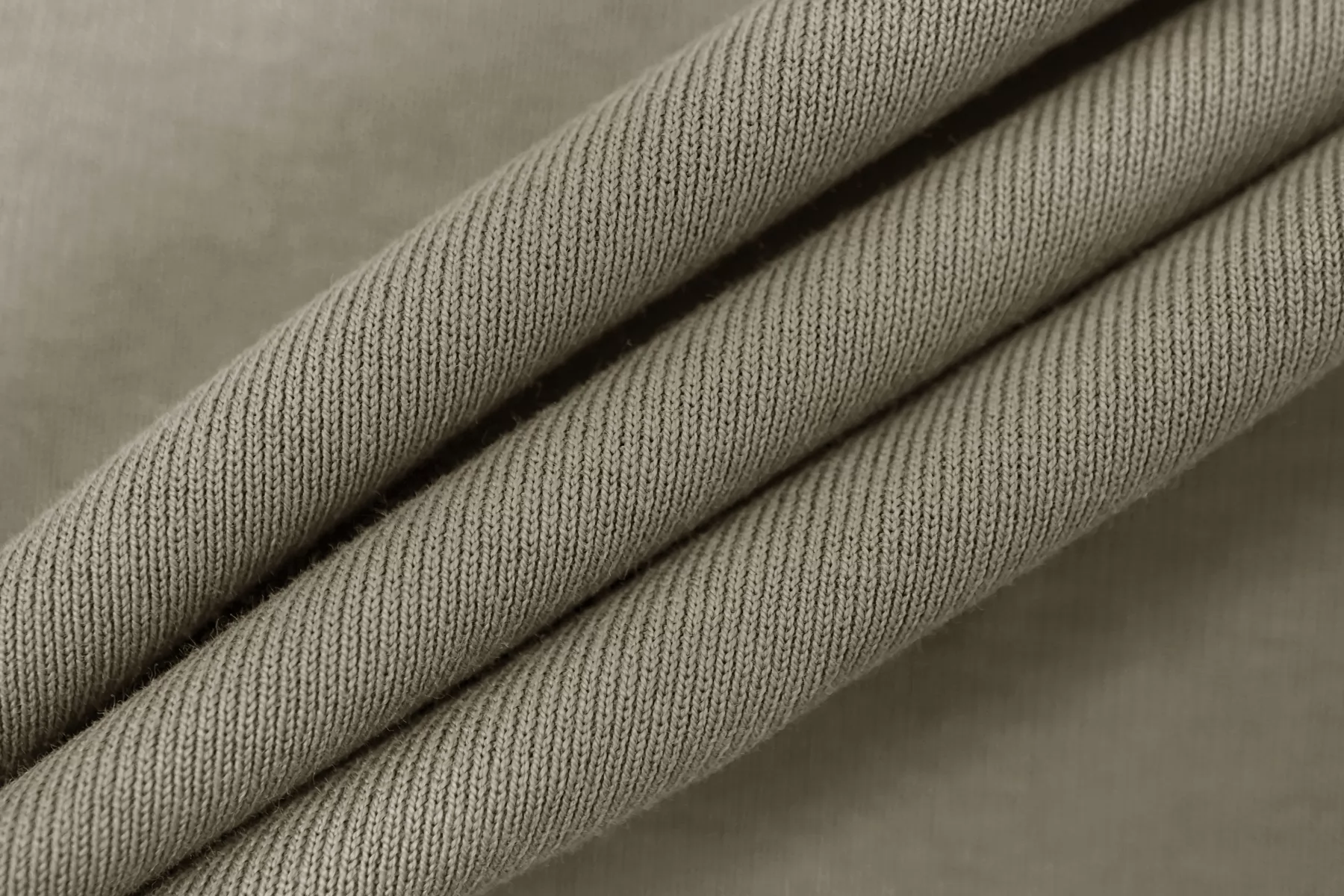 Итальянский хлопковый трикотаж в красивом серо-оливковом оттенке, по вязке ближе к рибане. Материал пластичный, мягкий, гладкий, очень приятный к телу. Плотный, не толстый. Не просвечивает. Практически не мнется. Хорошо тянется. Подойдет для пошива майки, футболки, топа.
