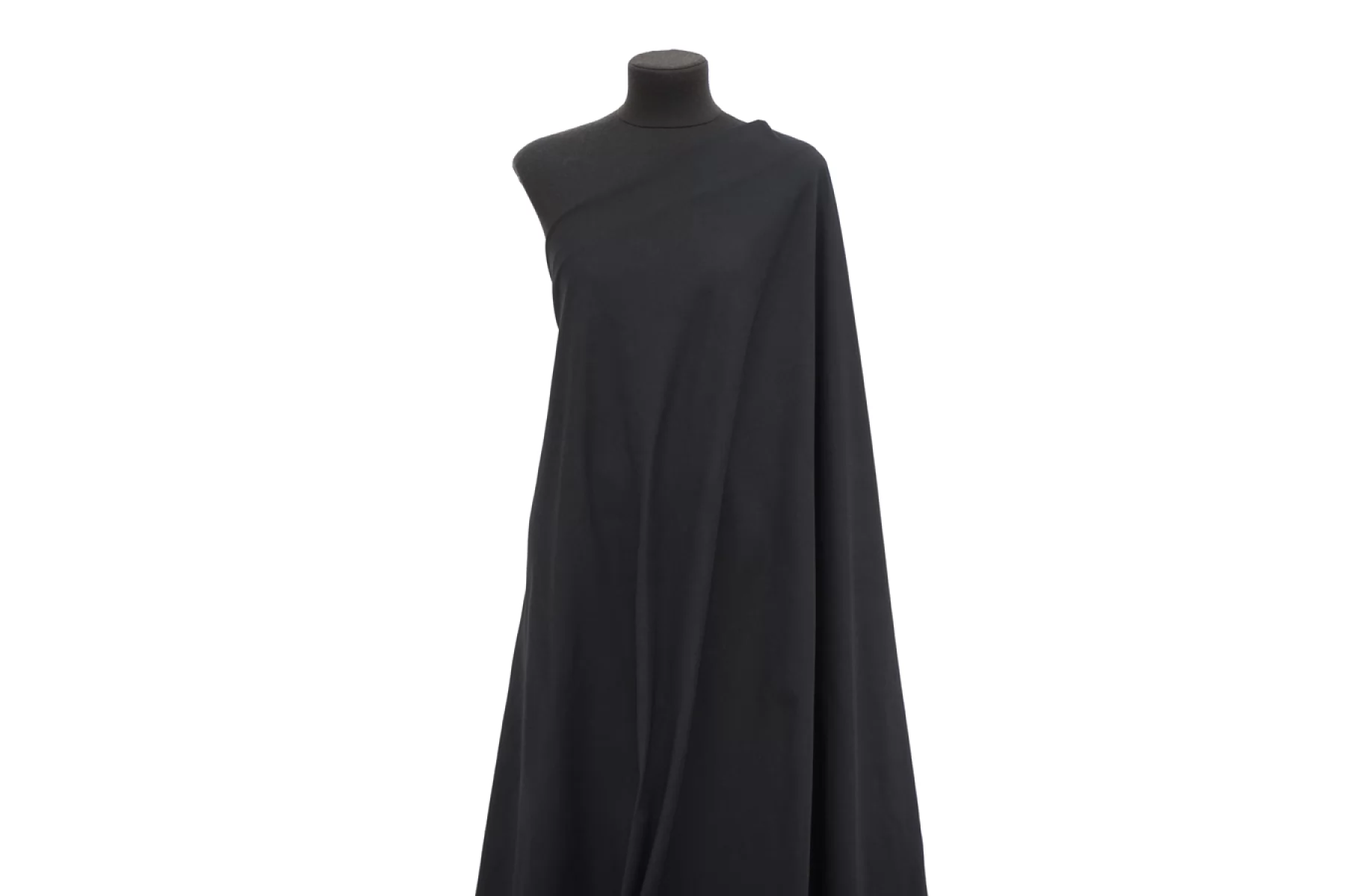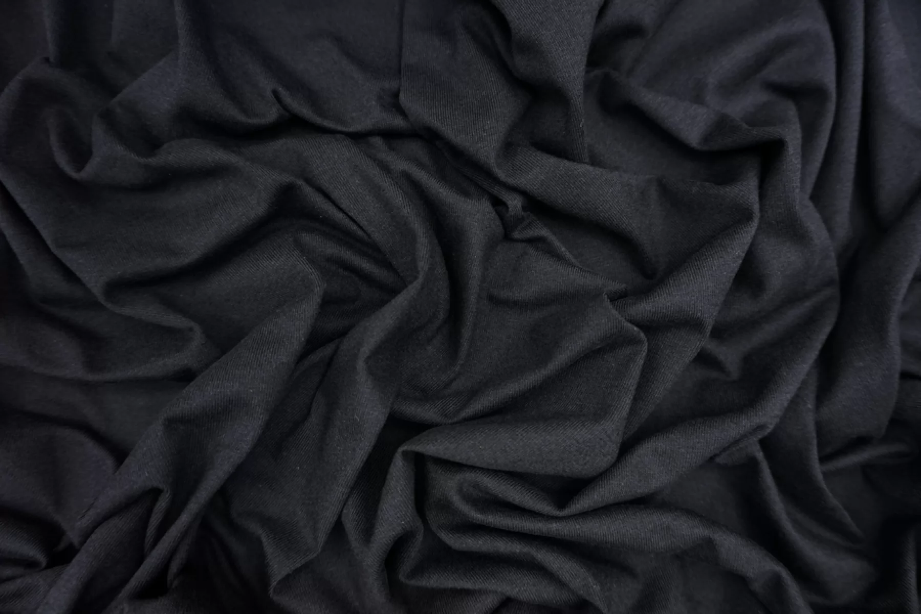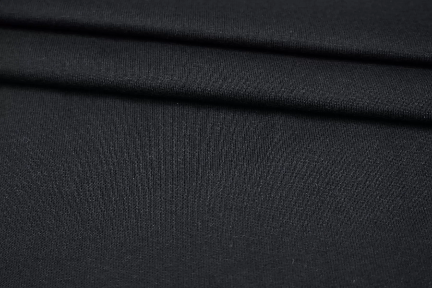 Хлопковый трикотаж, кулирная гладь, черного цвета. Материал достаточно плотный, тактильно приятный. Слегка тянется и немного просвечивает при растяжении. Хорошо драпируется и держит форму. Отлично подойдет на майки, футболки, платья и домашнюю одежду.