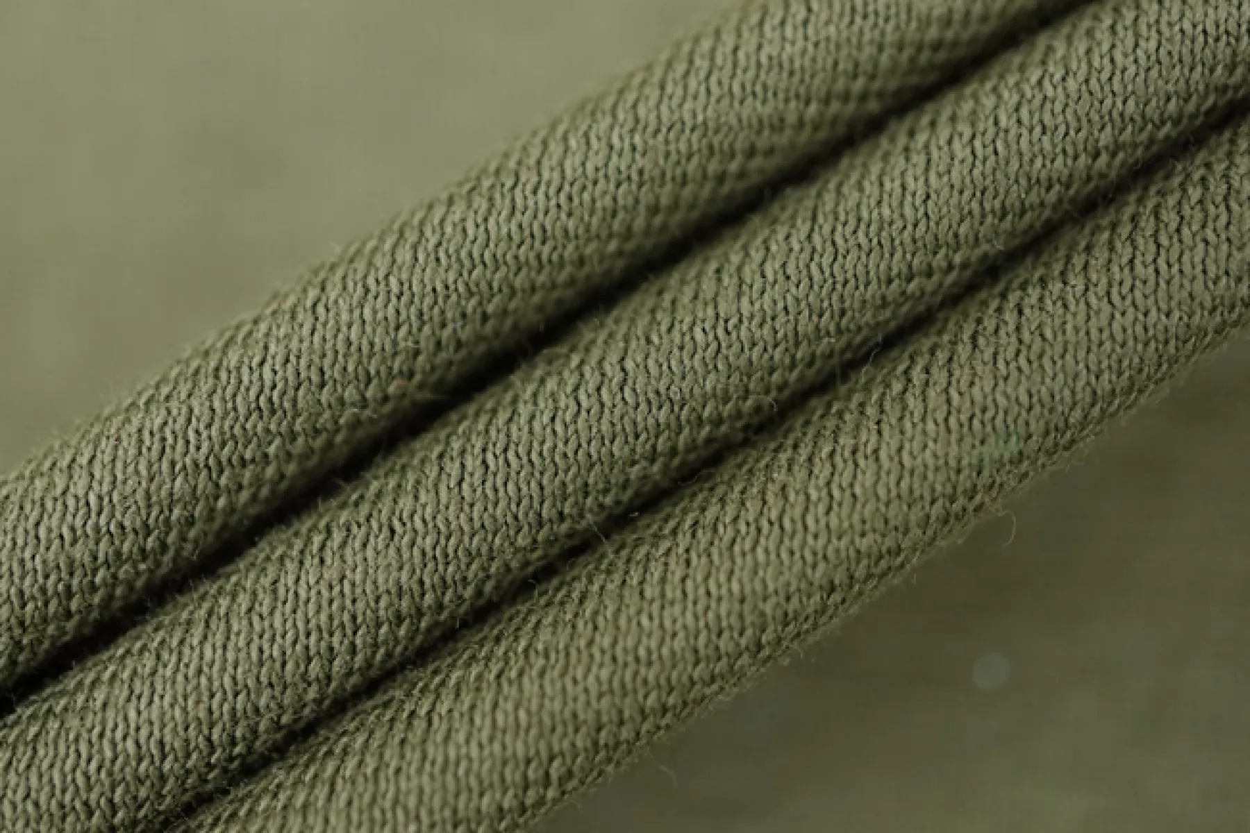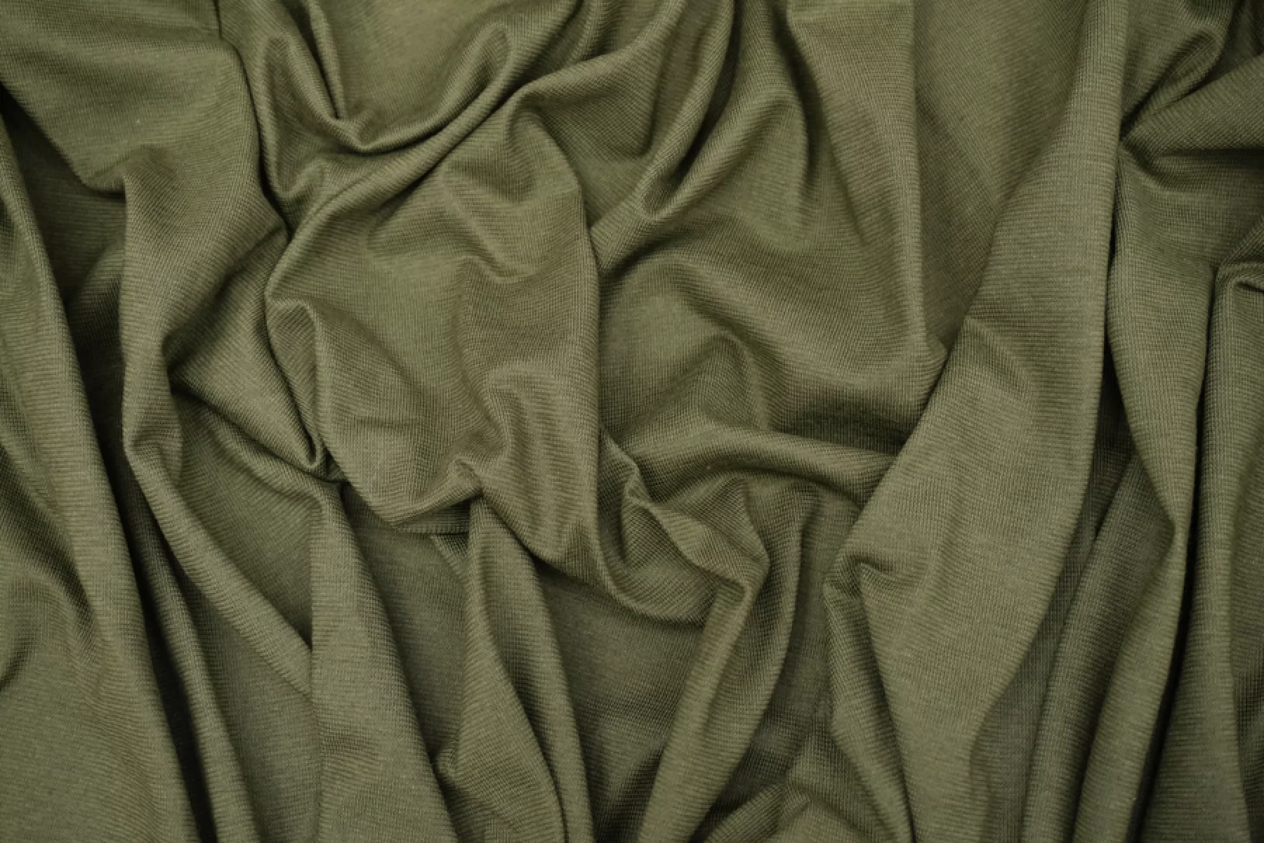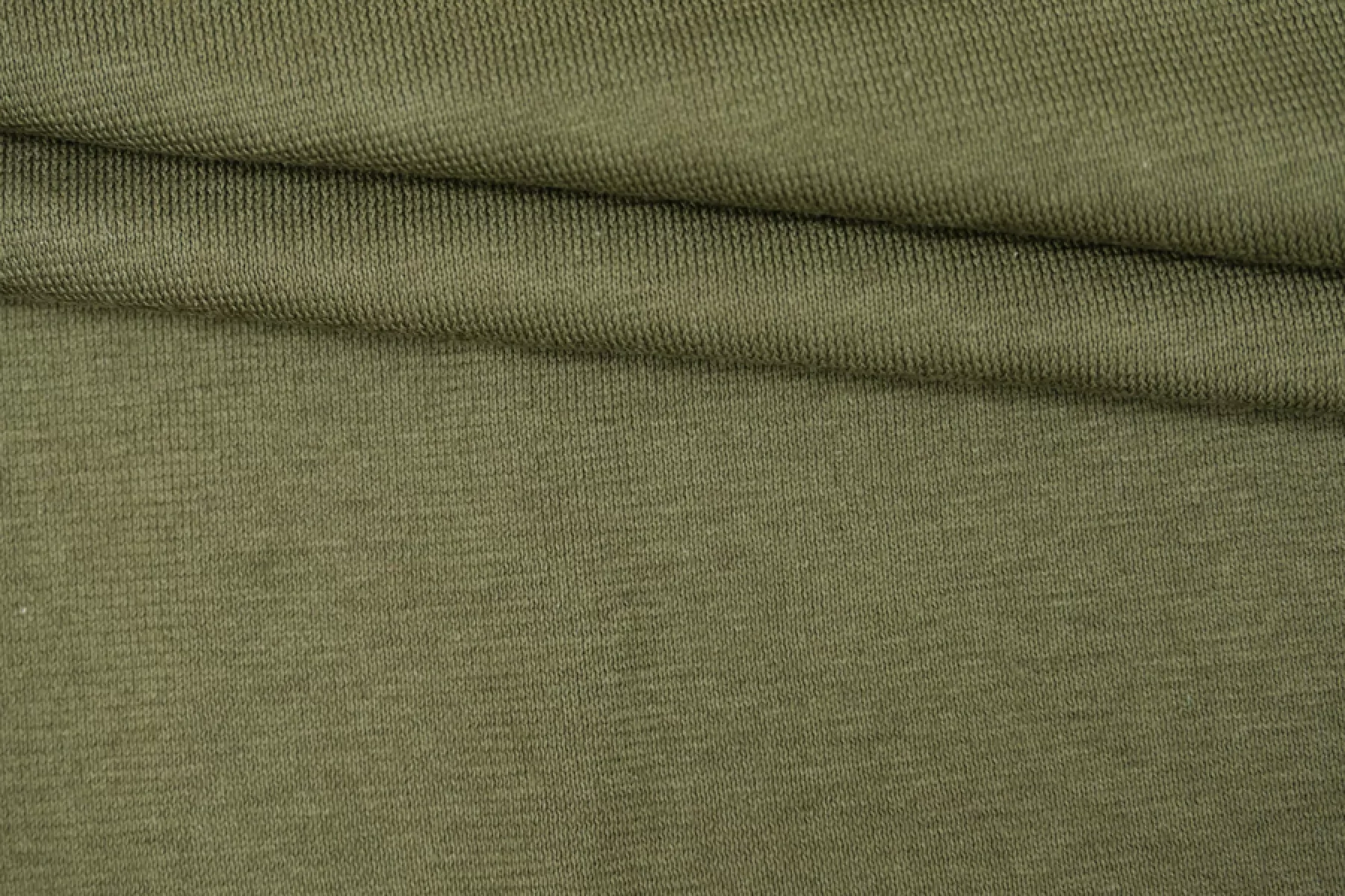 Хлопковый трикотаж, кулирная гладь, оттенка хаки. Материал тактильно приятный и мягкий, тонкий, но достаточно плотненький. Упругоо тянется за счет плетения. Пластичный. Просвечивает силуэт, если смотреть на просвет. Отлично драпируется. Обладает легким лоском. Шьем майки, футболки, платья, туники и домашнюю одежду.