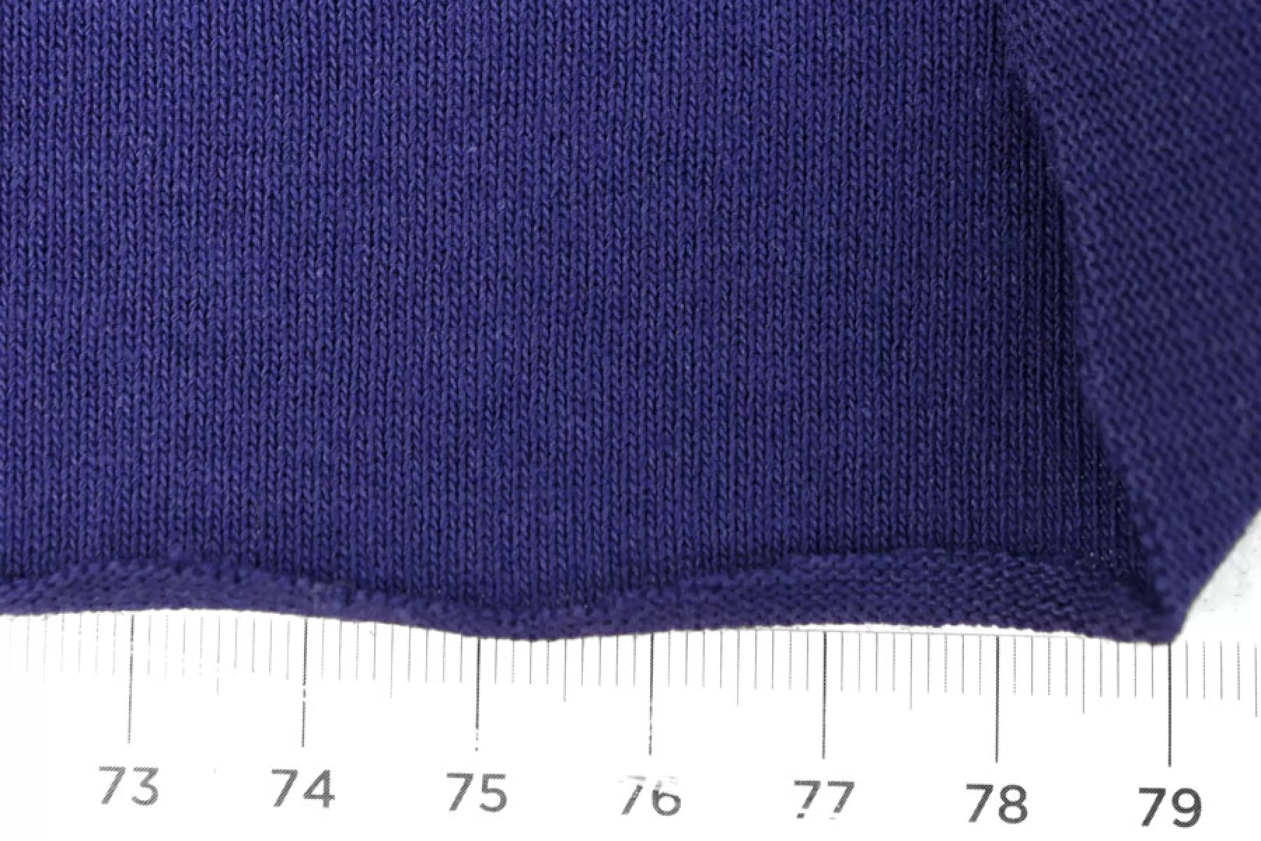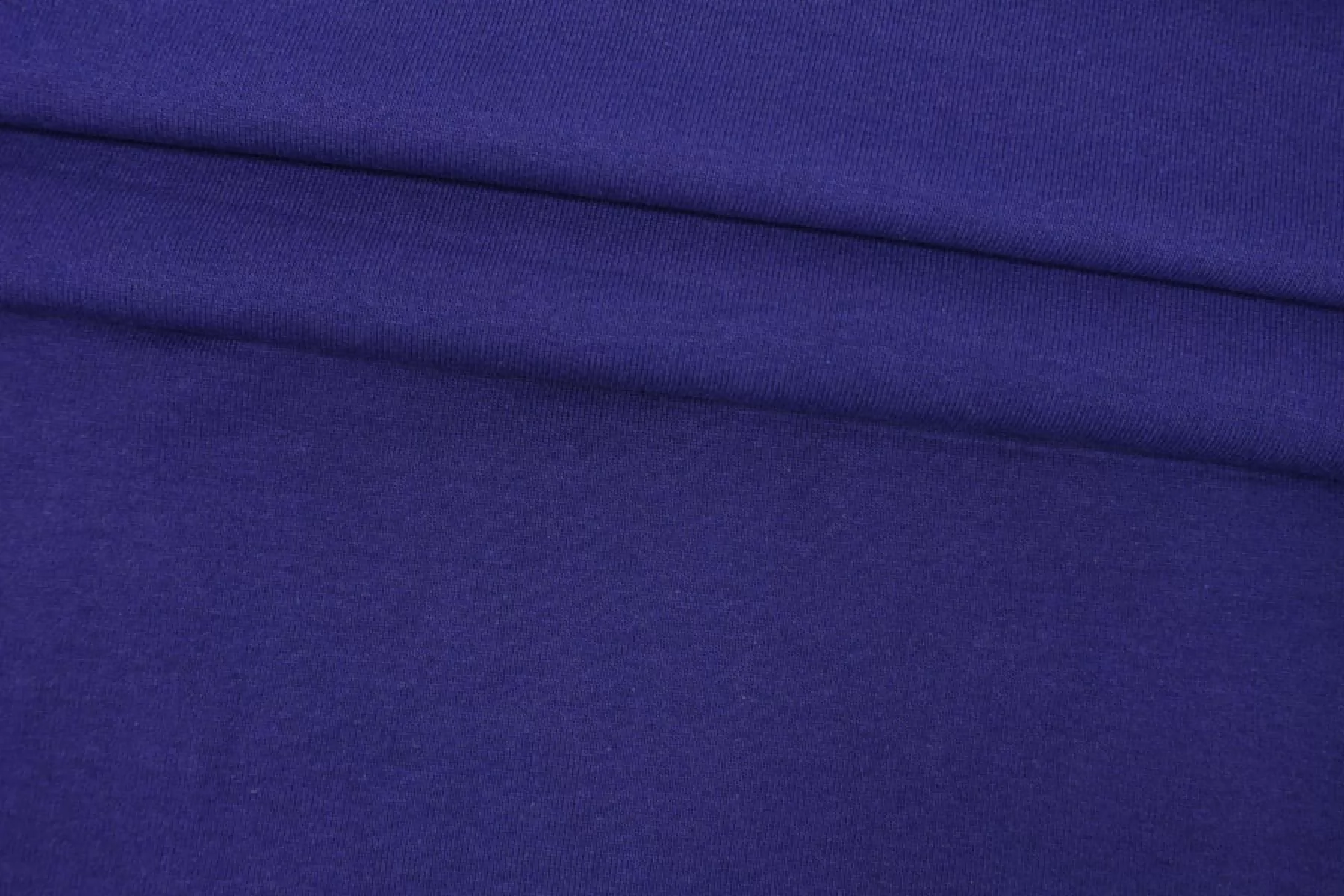 Хлопковый трикотаж от Louis Vuitton- кулирная гладь, в насыщенном темно-синем цвете. Тактильно приятный, гладкий, мягкий. Не просвечивает, пластичный, немного держит форму. Мнется средне и средней эластичности. Шьем футболки, майки, туники.