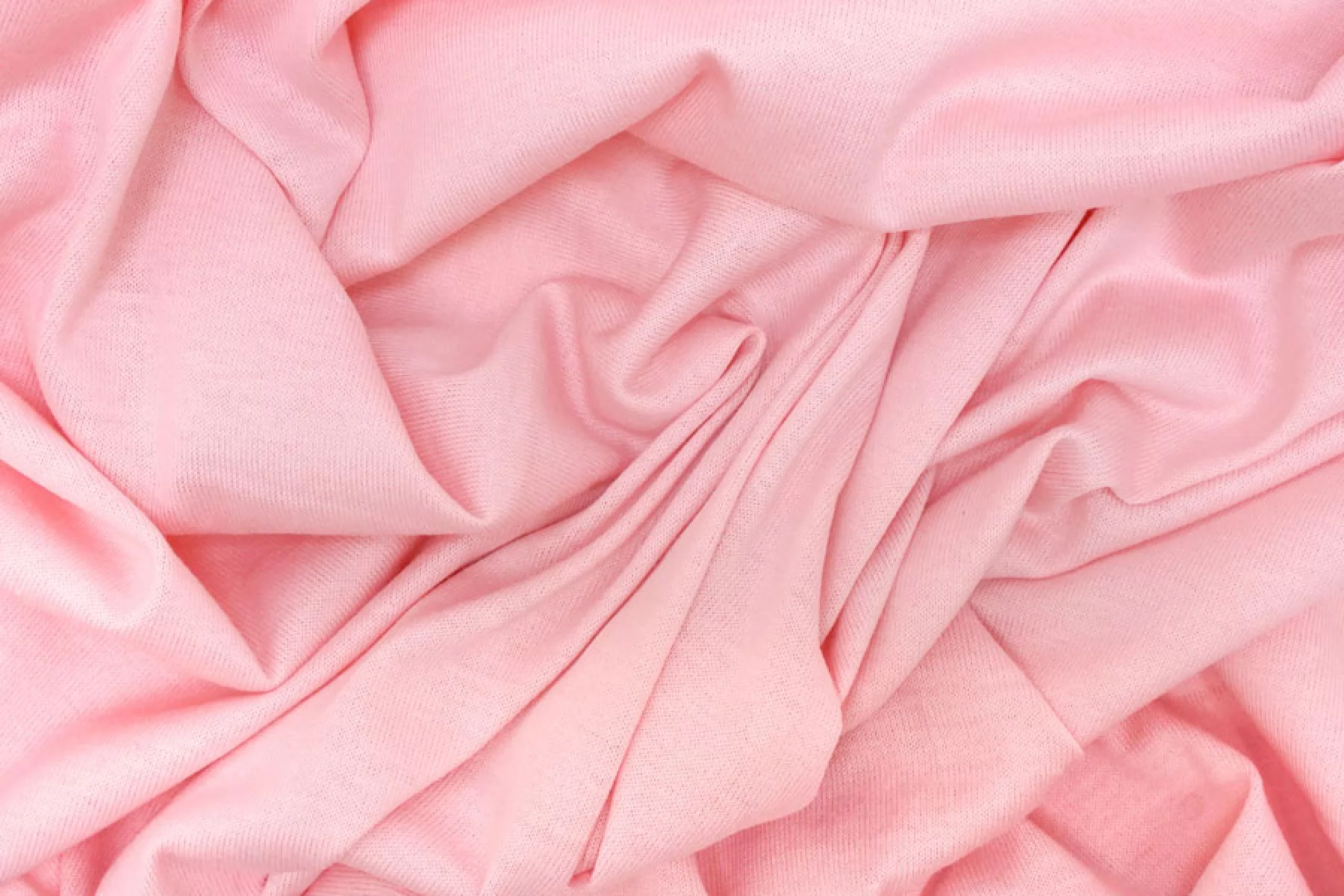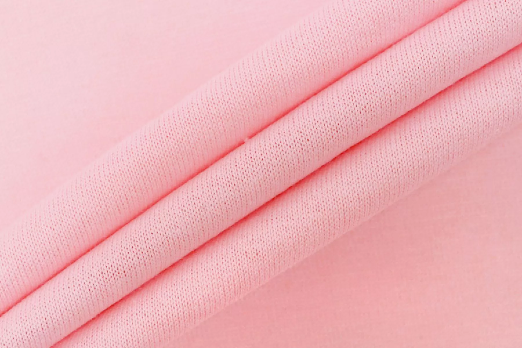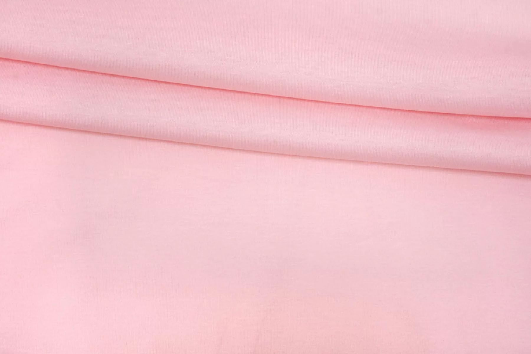 Хлопковый трикотаж - кулирная гладь, нежного розового цвета. Хорошо тянется, слегка просвечивает. Тактильно очень приятный, гладкий. Немного держит форму. Можно использовать для пошива маек, футболок, платьев, туник и другого.