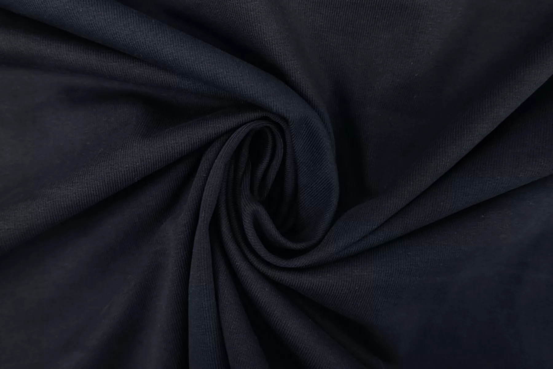 Хлопковый трикотаж кулирная гладь от Simonetta в темно-синем цвете. Материал тонкий, но плотный, немного держит форму. Не просвечивает. Тянется слабо. Шьем плотные футболки, спортивные летние штаны, подойдет и для домашней одежды.