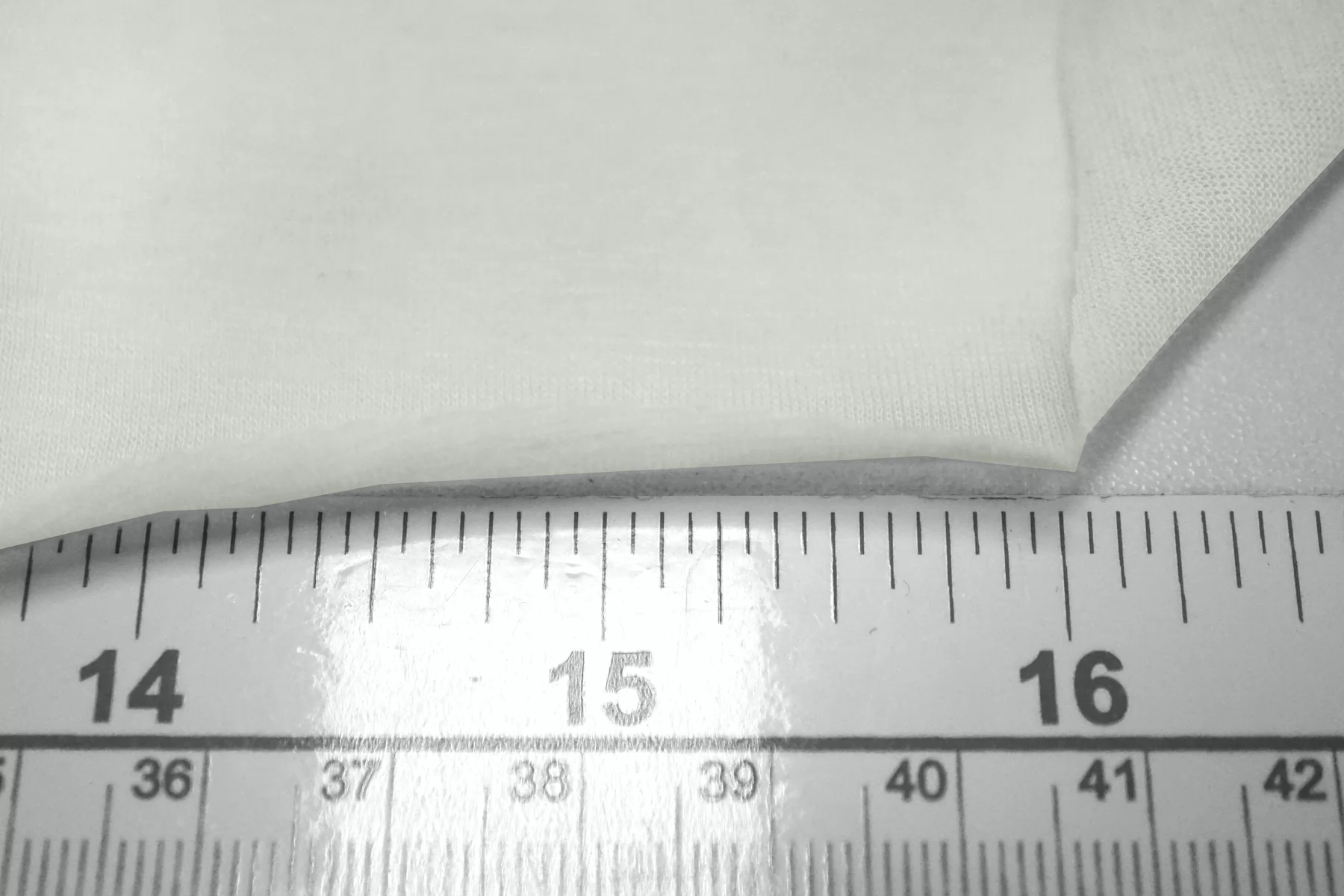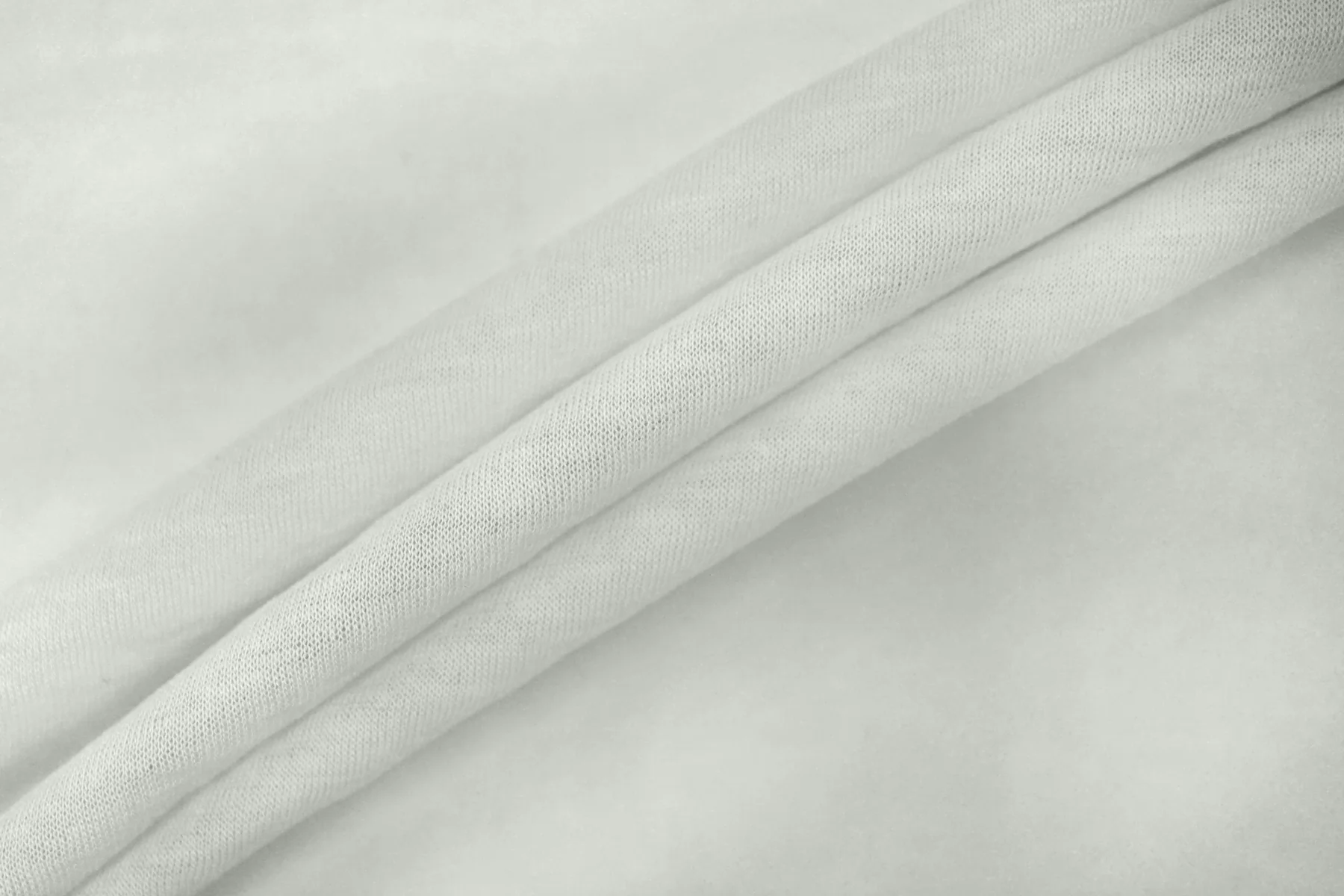 Хлопковый трикотаж - кулирная гладь, светло-серый цвет. Эластичный, тонкий, просвечивает. Тактильно очень приятный, гладкий. Форму не держит, очень пластичный. Можно использовать для пошива маек, лонгсливов, футболок, платьев, туник и другого.