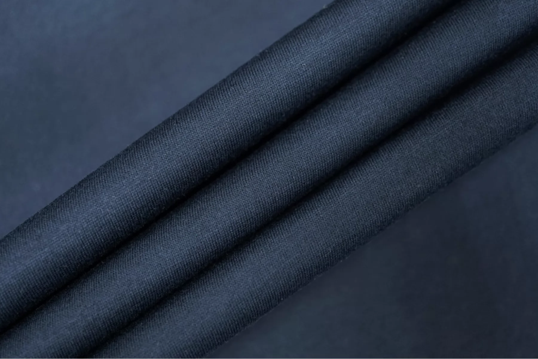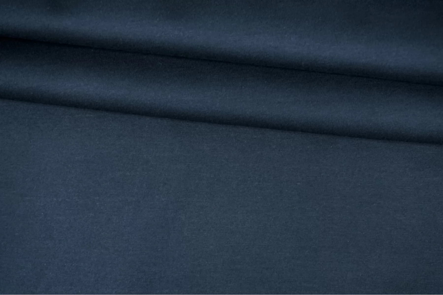 Классный хлопковый мерсеризированный трикотаж, кулирная гладь, слегка приглушенного синего оттенка. Тонкий, мягкий, гладкий, приятный, с нежным лоском. Просвечивает силуэт на просвет. Сминается и практически полностью восстанавливается. Неплохо тянется за счет плетения. Хорошо драпируется. Форму держит слабо. Шьем майки, футболки, туники и не только