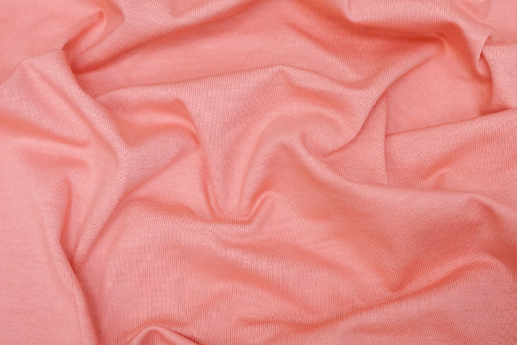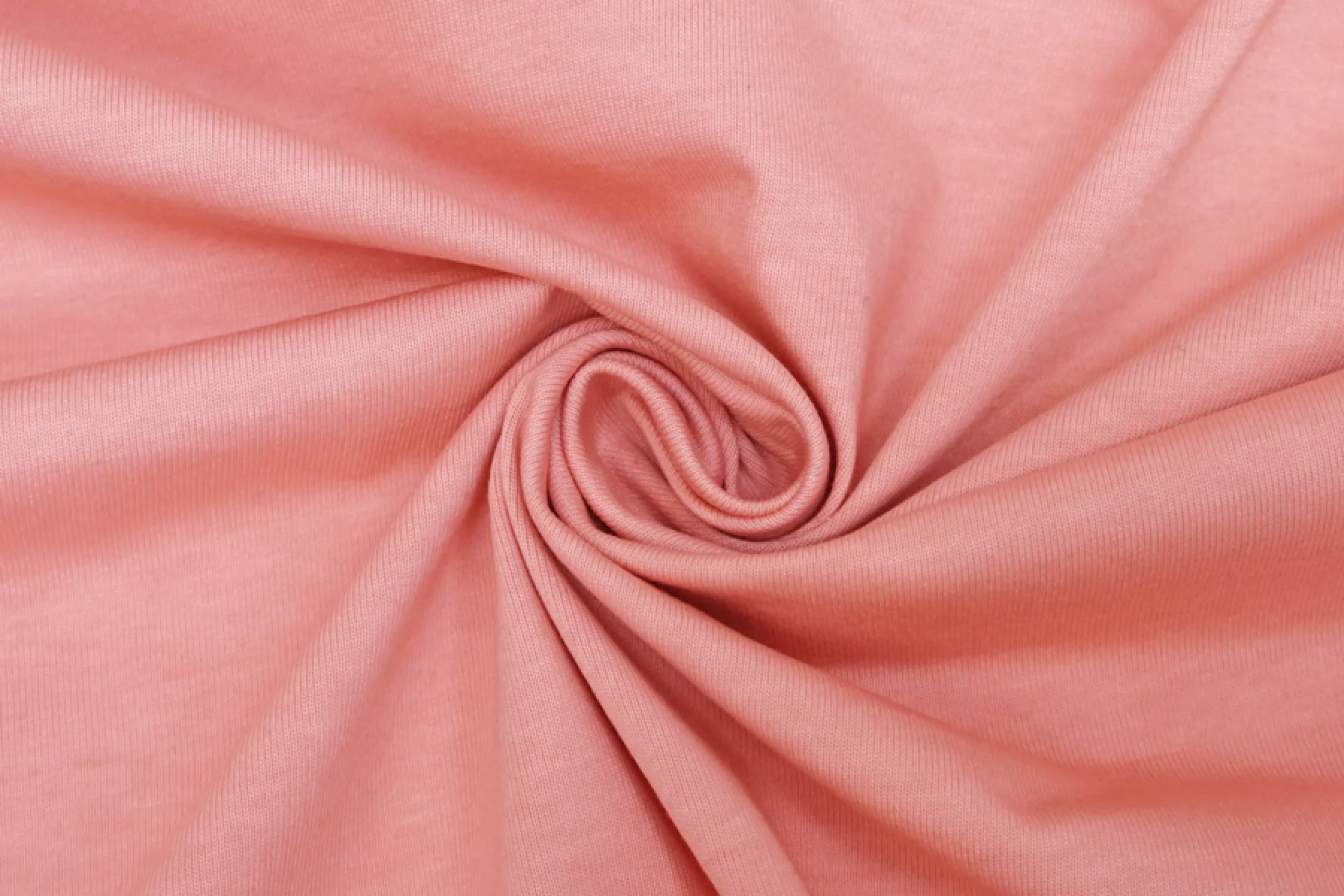 Хлопковый трикотаж кулирная гладь от бренда BOTTEGA VENETA розового цвета. Материал плотный, немного суховатый. Не просвечивает. Ткань пластичная, тянется. Шьем майки, футболки, платья и домашнюю одежду.