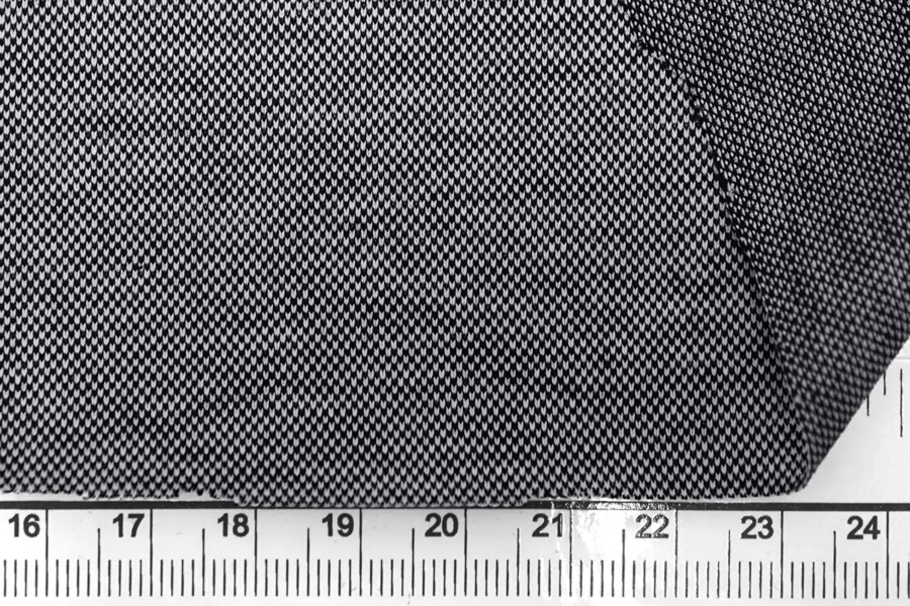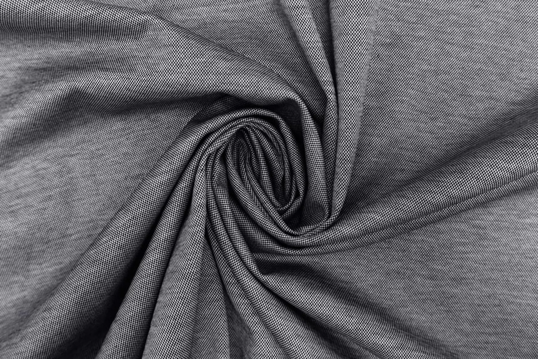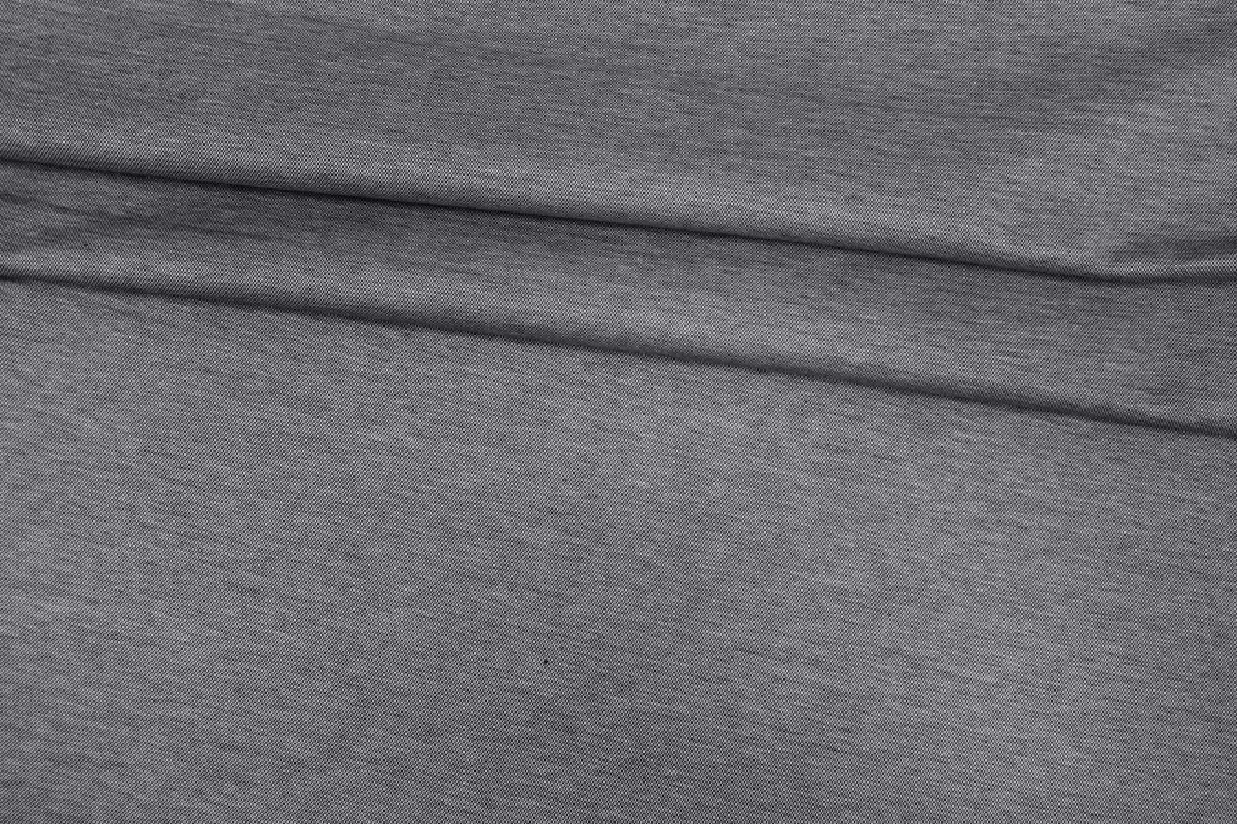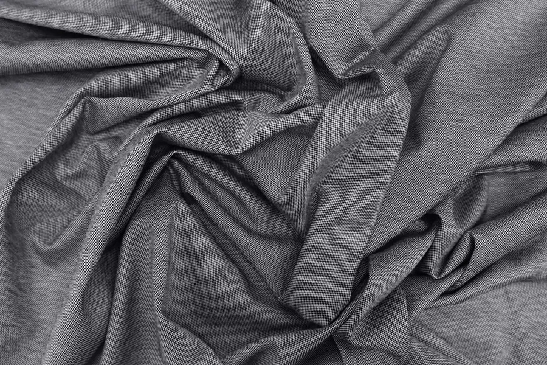 Хлопковый полированный трикотаж - из нитей белого и очень темного синего цвета, почти черного. Эластичный, слегка просвечивает. Тактильно очень приятный, гладкий. Немного держит форму. Можно использовать для пошива маек, лонгсливов, футболок, платьев, туник и другого.