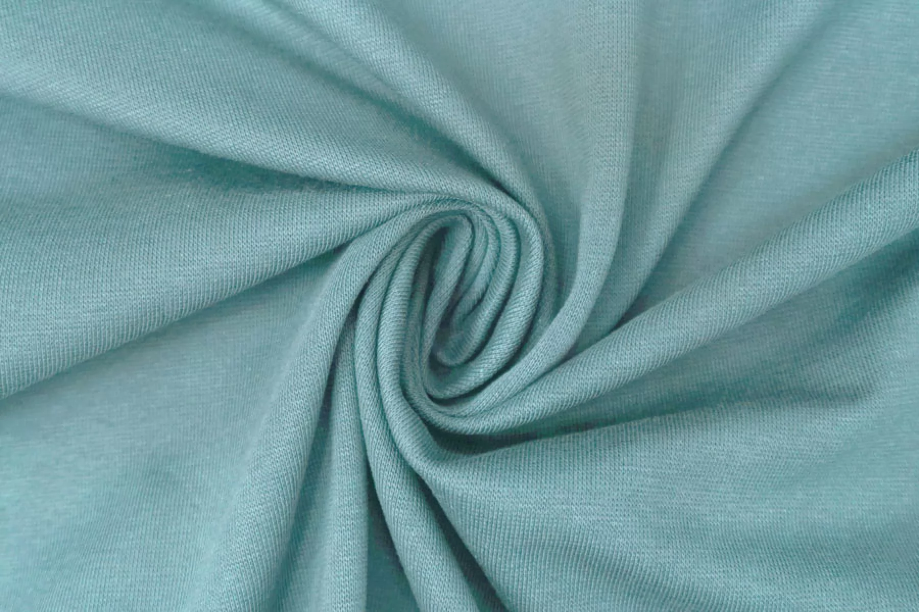 Итальянский хлопковый трикотаж -вязка - рибана от бренда PUCCI в припыленно-бирюзовом оттенке. Тонкий, пластичный, мягкий, эластичный, нежный тактильно. С красивым блеском. Подойдет для пошива футболки, топа, майки, лонгслива, а также в качестве подвяза.
