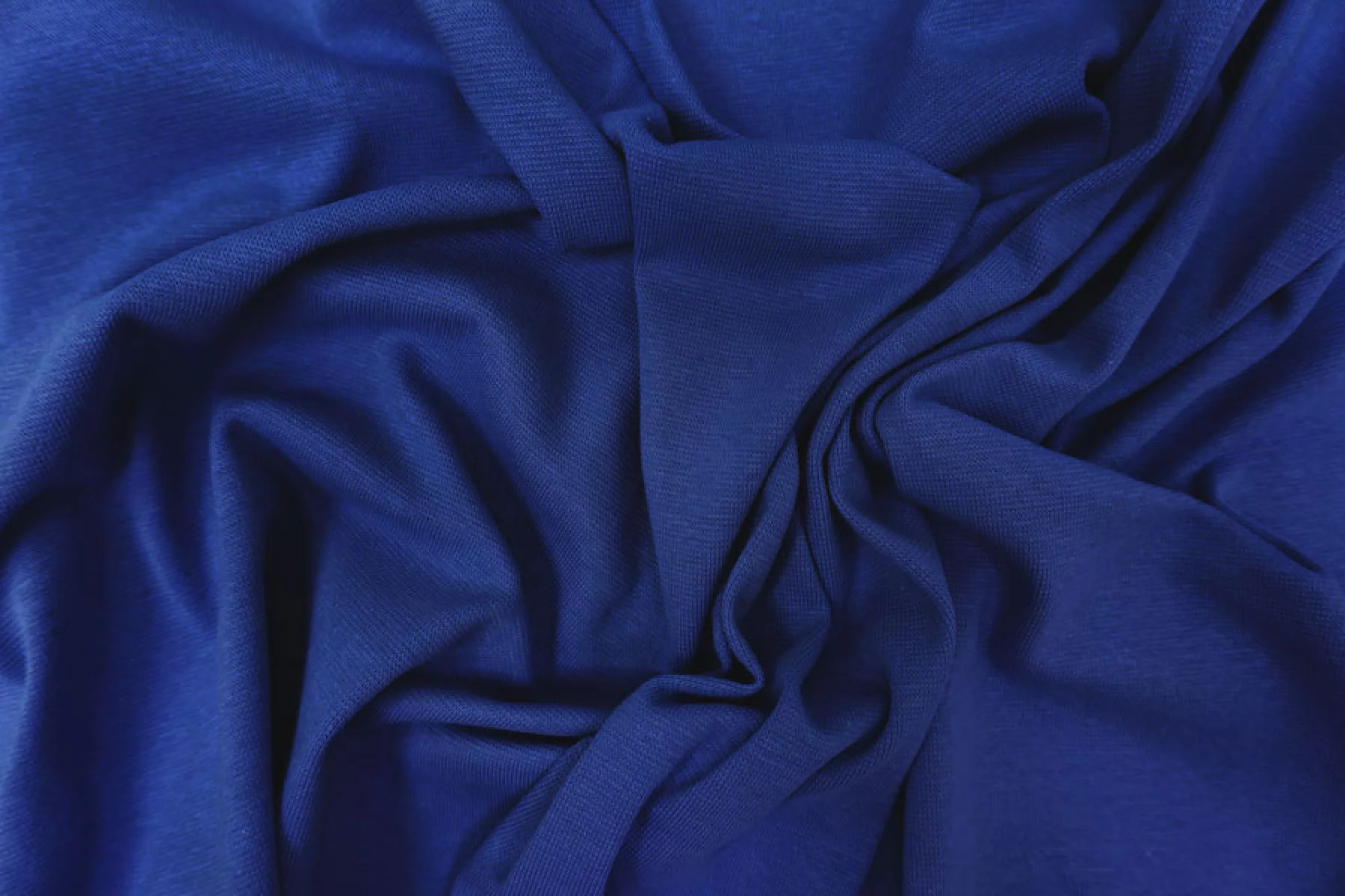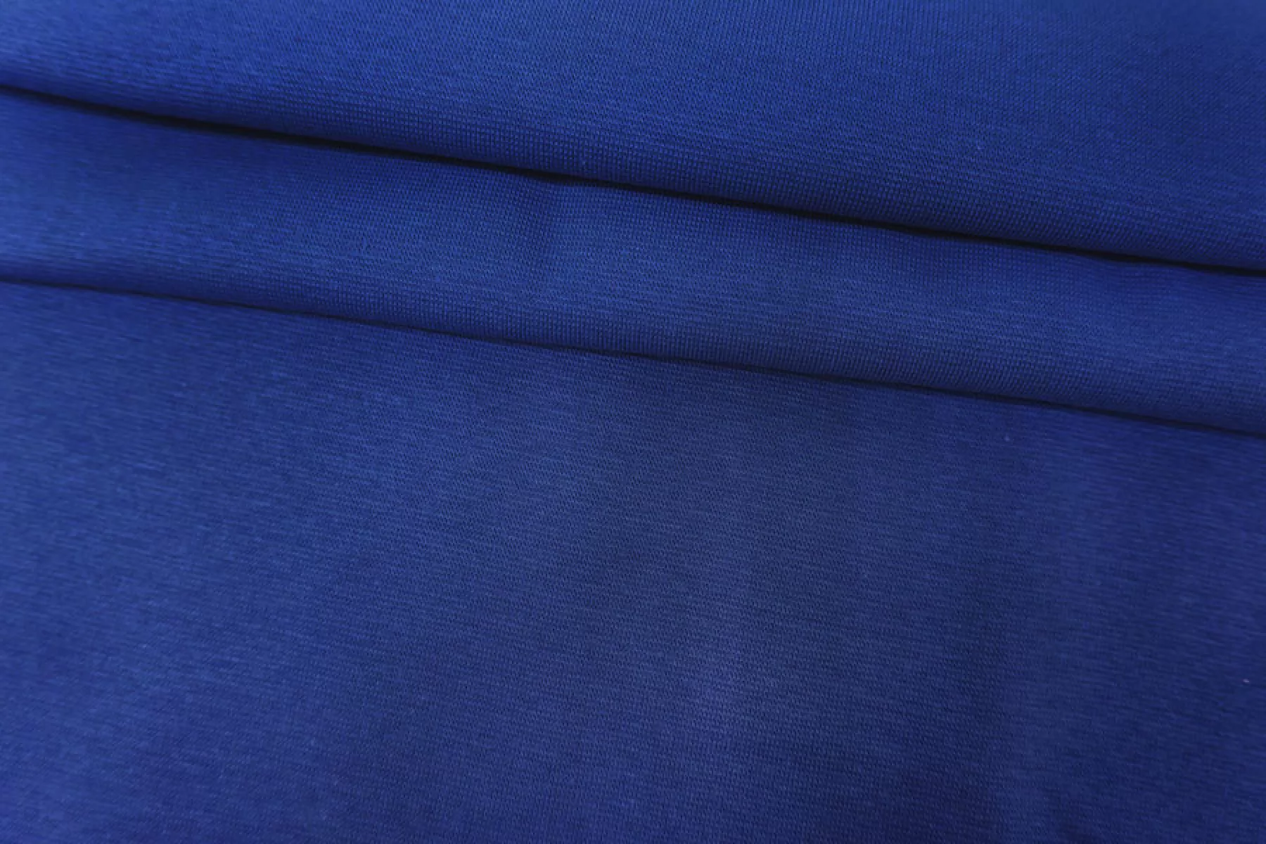 Итальянский хлопковый трикотаж синего цвета, вязка рибана, от бренда FENDI. Материал пластичный, мягкий, гладкий. Плотный, но не толстый. Просвечивает при растяжении. Практически не мнется. Отлично тянется. Подойдет для пошива майки, футболки, топа, а также манжетов, подвязов или воротников.