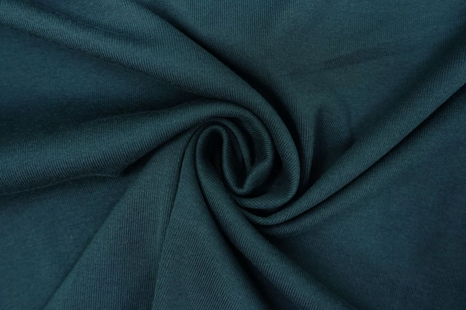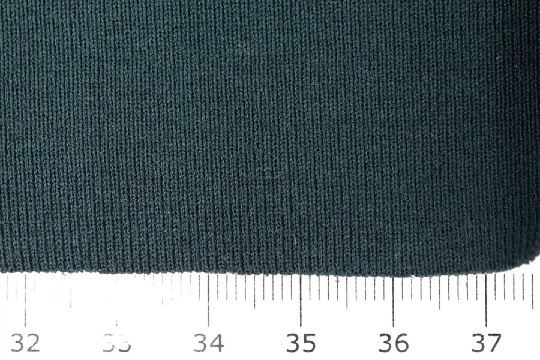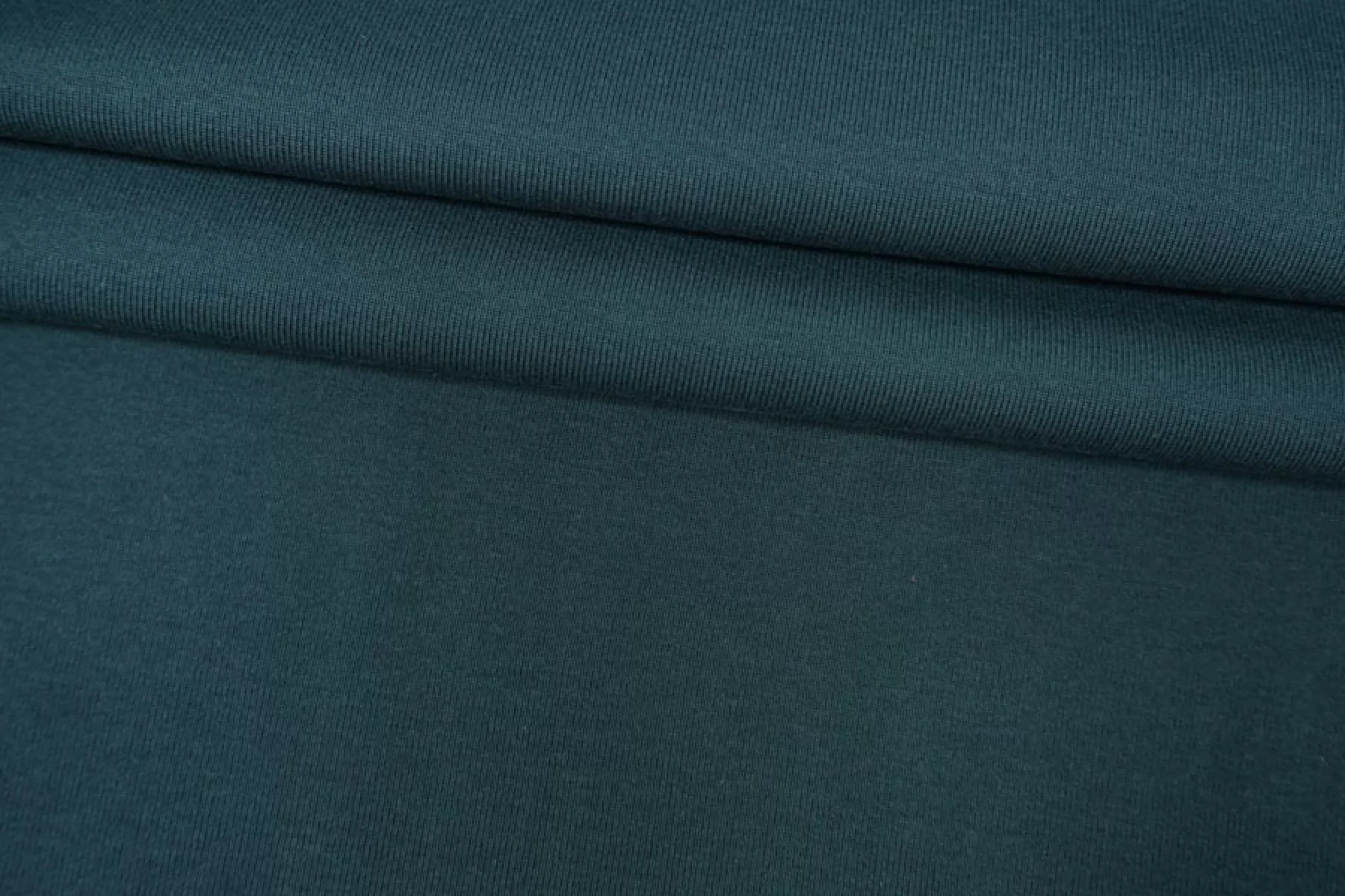 Трикотаж, вязка рибана, темного сине-зеленого оттенка, от бренда TOM FORD. Эластичный, пластичный, немножко просвечивает. С легким лоском. Плотный. Хорошо тянется. Подойдет для пошива самостоятельных изделий, а также манжет, подвязов.