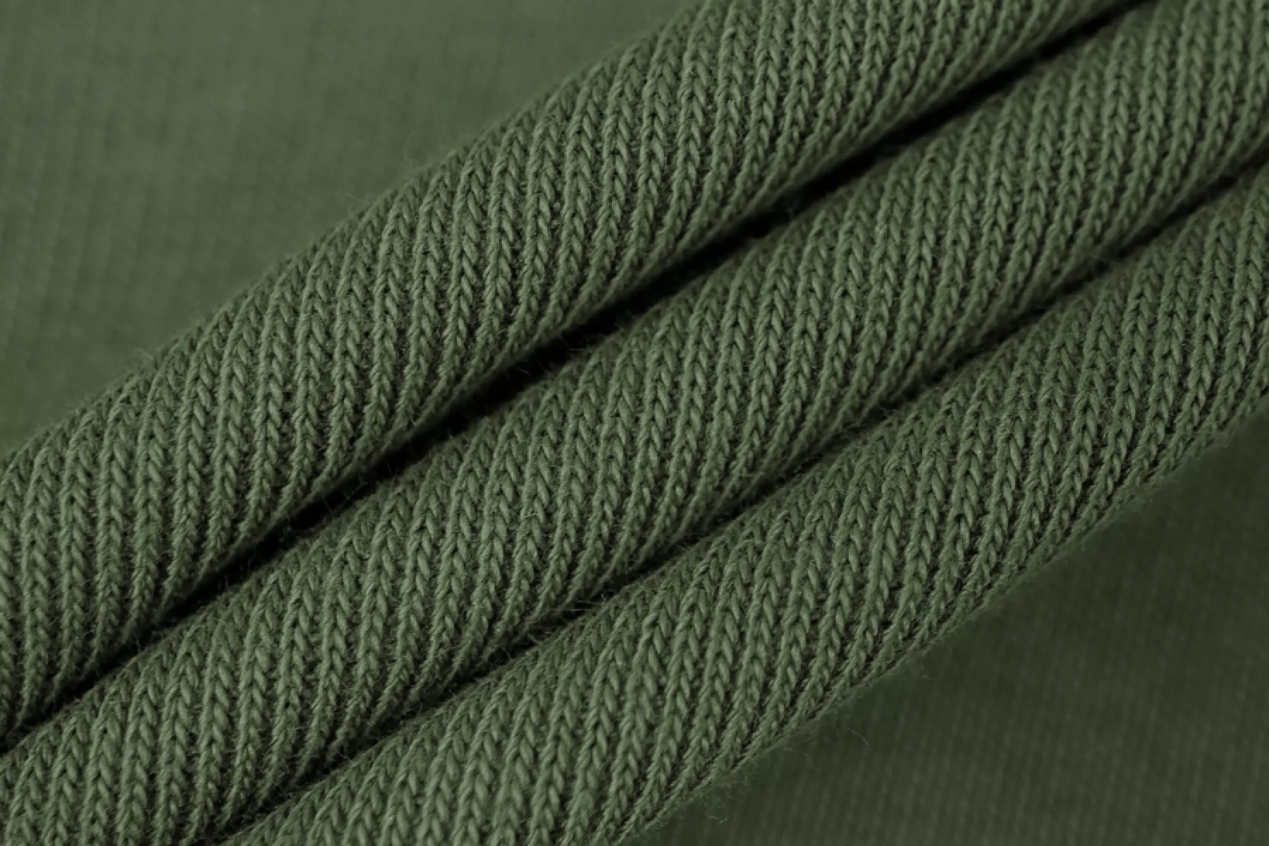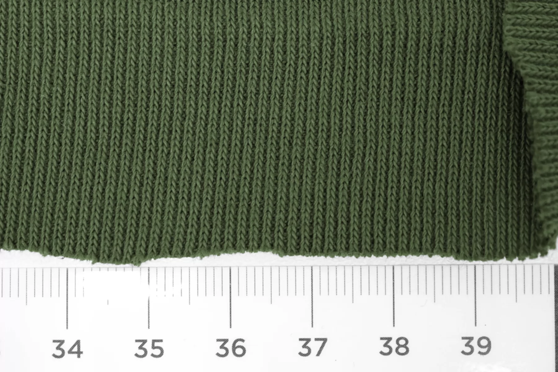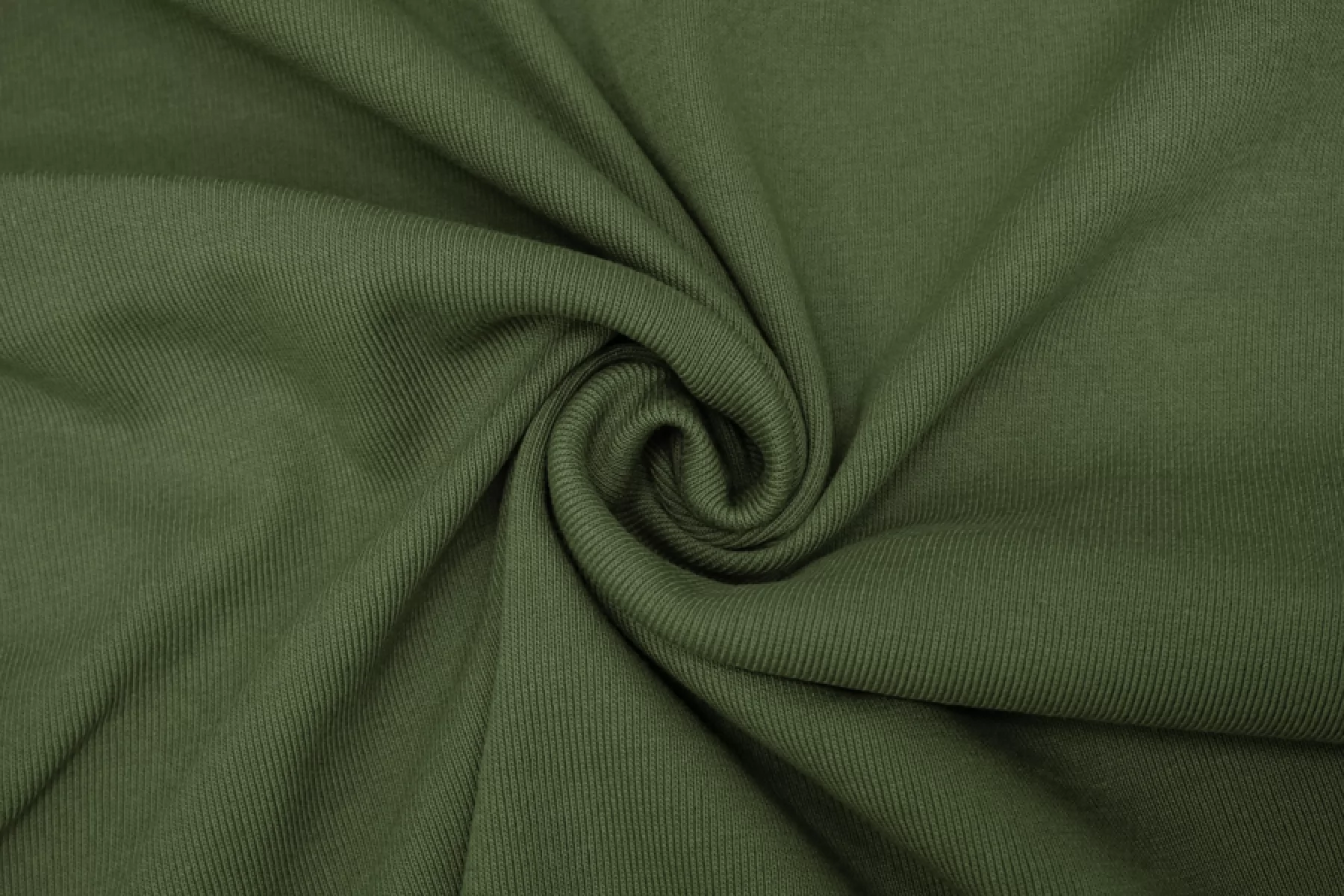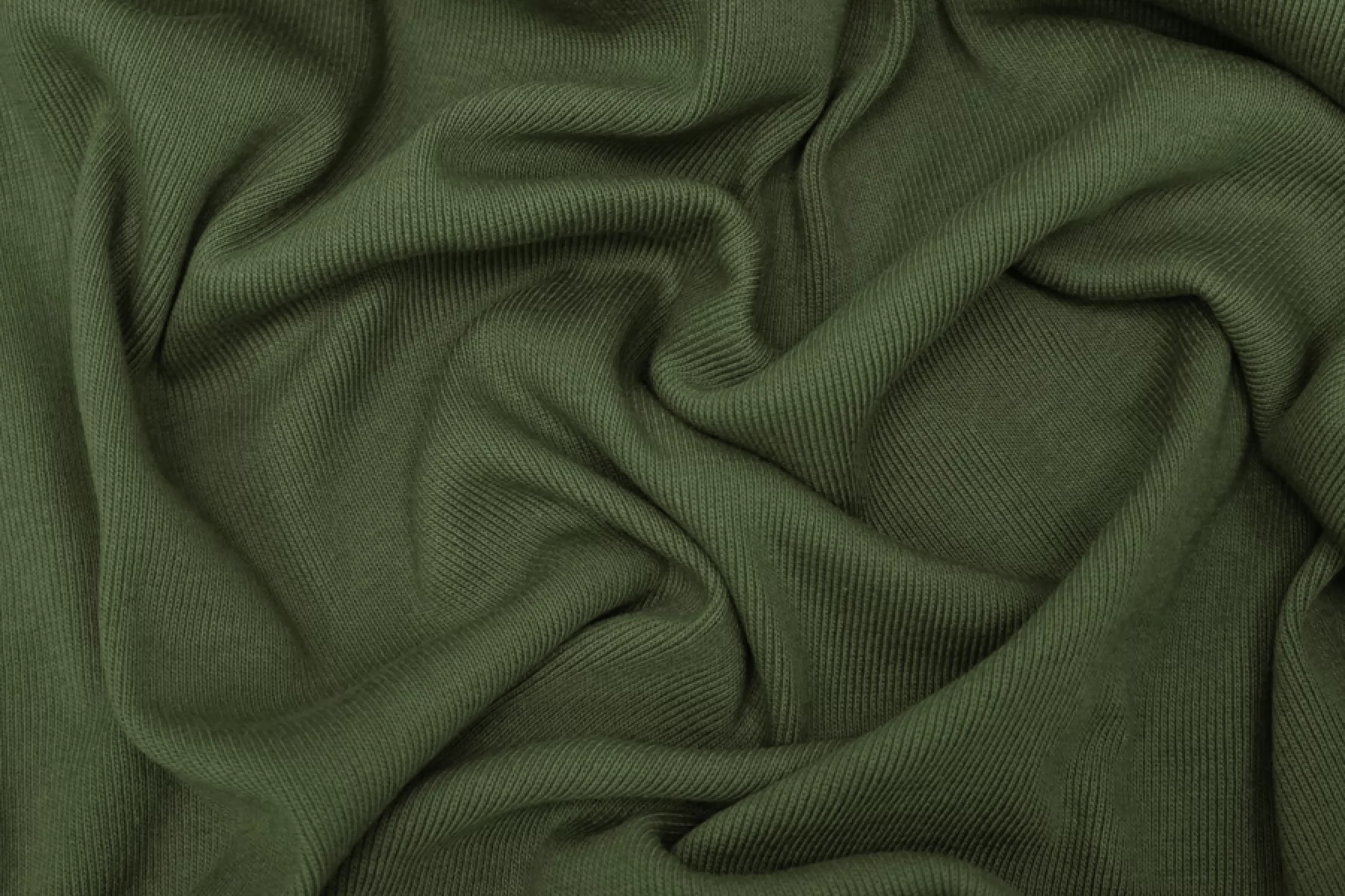 Хлопковый трикотаж - рибана в зеленом оттенке, от бренда FENDI. Тонкий, приятный наощупь, пластичный, эластичный, не просвечивает. Плотный. Тянется засчет плетения. Подойдет для пошива манжет, подвязов.