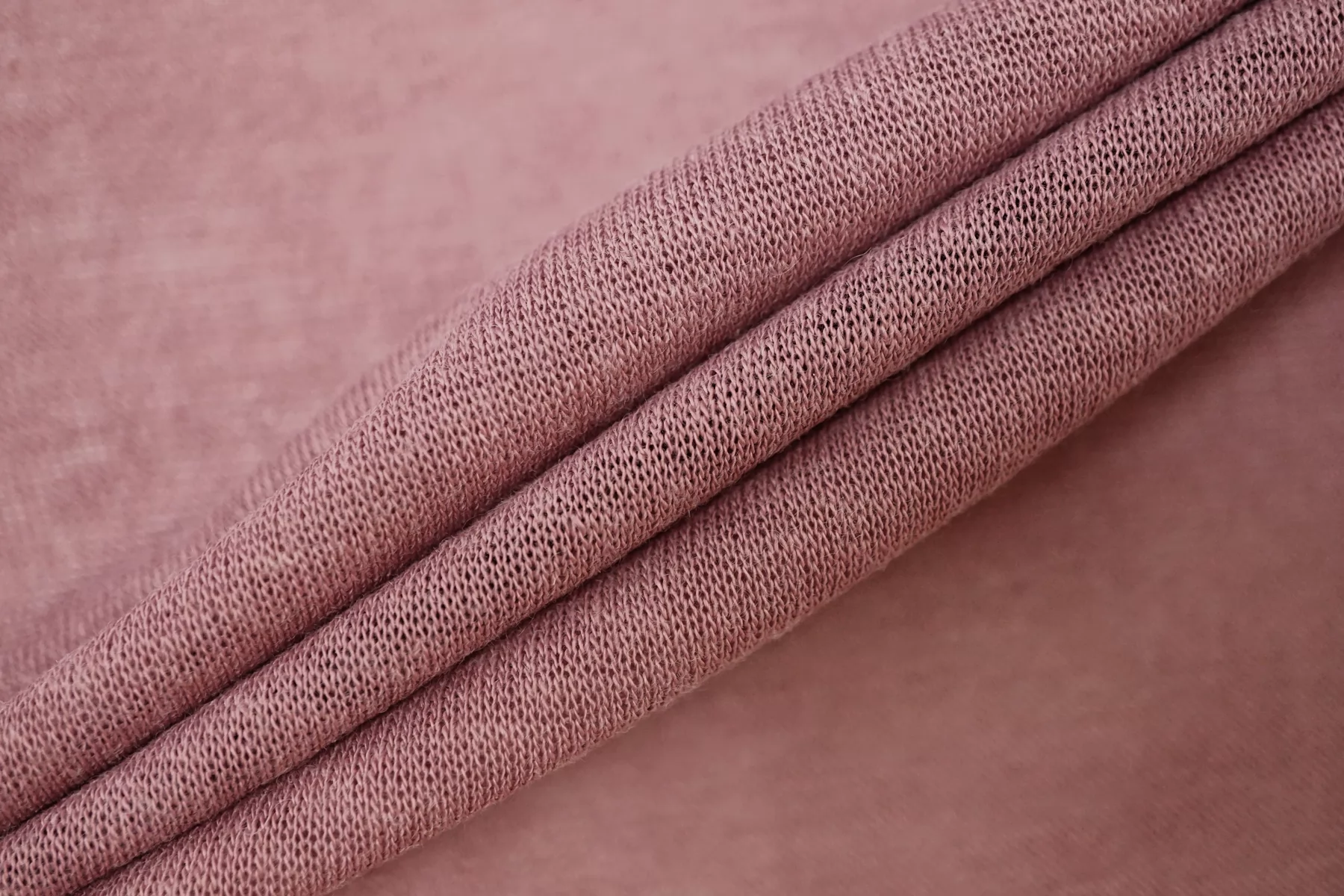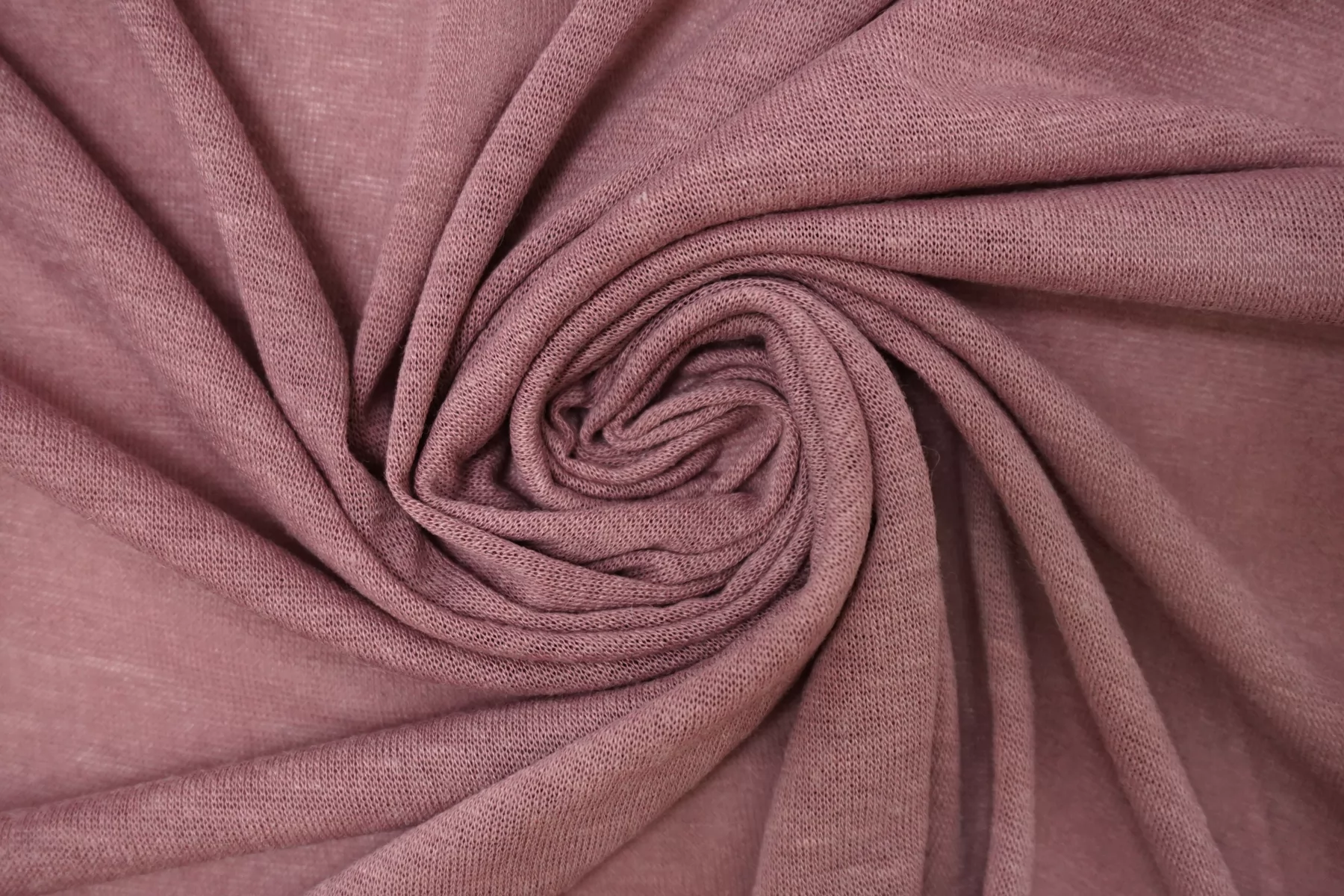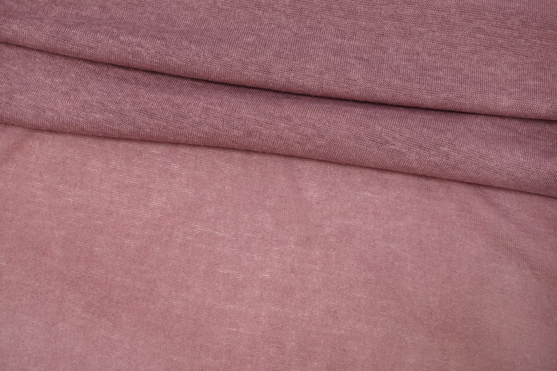 ВНИМАНИЕ!! Полоса по середине см. фото. Трикотаж из хлопка с шерстью, в красивом, чуть приглушённом розовом оттенке. Тактильно чуть суховат, слегка колется. Просвечивает силуэт. Хорошо тянется за счет плетения и эластана. Пластичный, форму не держит. Можно использовать для пошива лонгсливов, маек, футболок, платьев, туник. Уход деликатный.