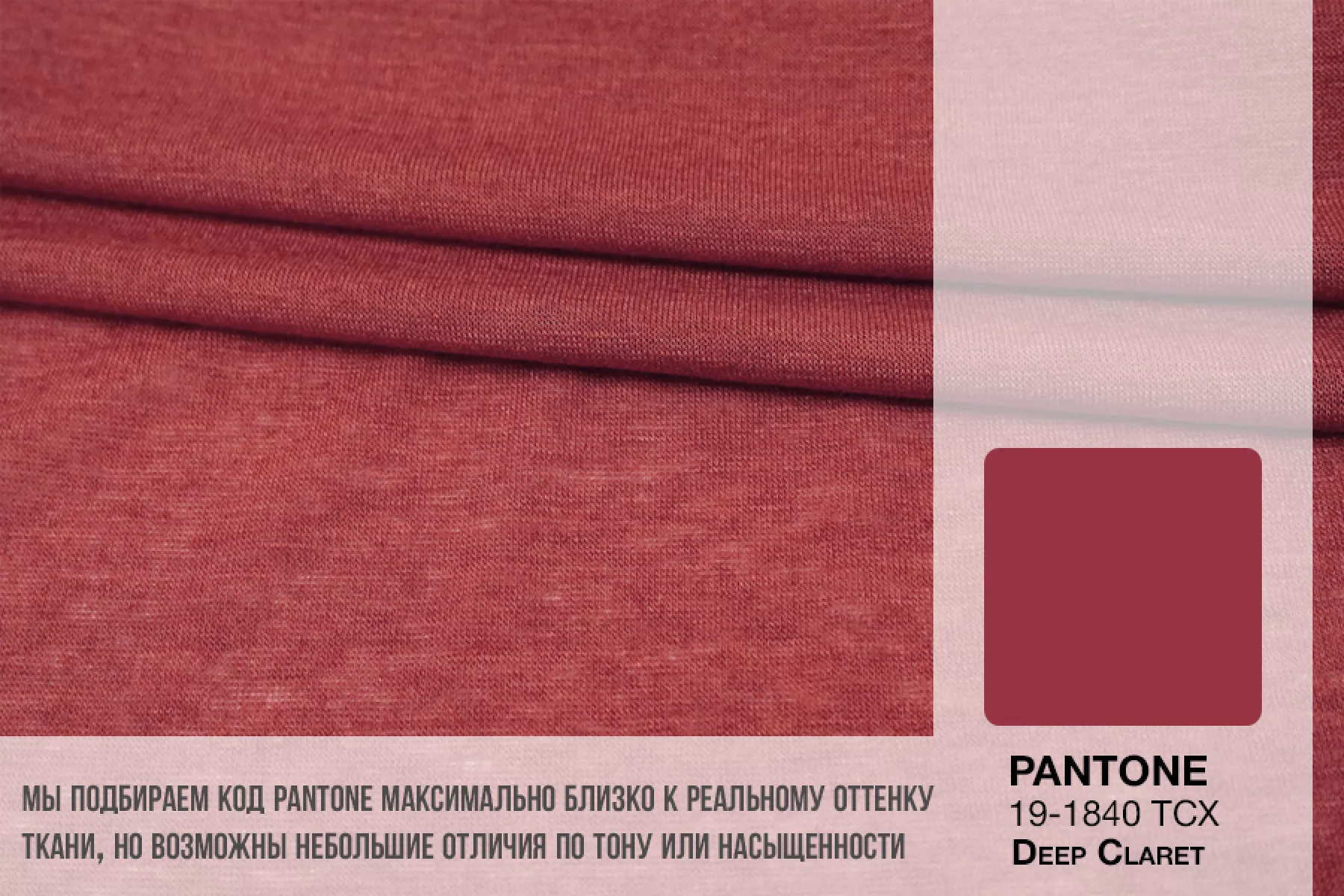 Трикотаж из хлопка с шерстью, в ягодном оттенке (ближе всего к брусничному). Тактильно чуть суховат, слегка колется. Просвечивает силуэт. Хорошо тянется за счет плетения и эластана. Пластичный, форму не держит. Можно использовать для пошива лонгсливов, маек, футболок, платьев, туник. Уход деликатный.