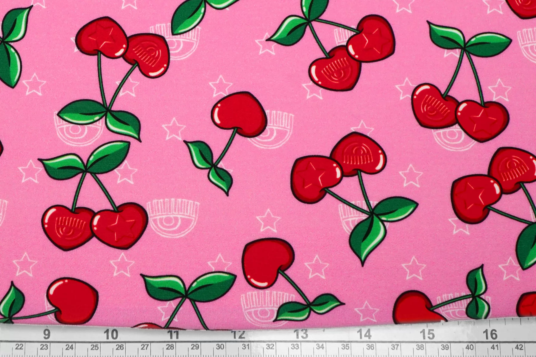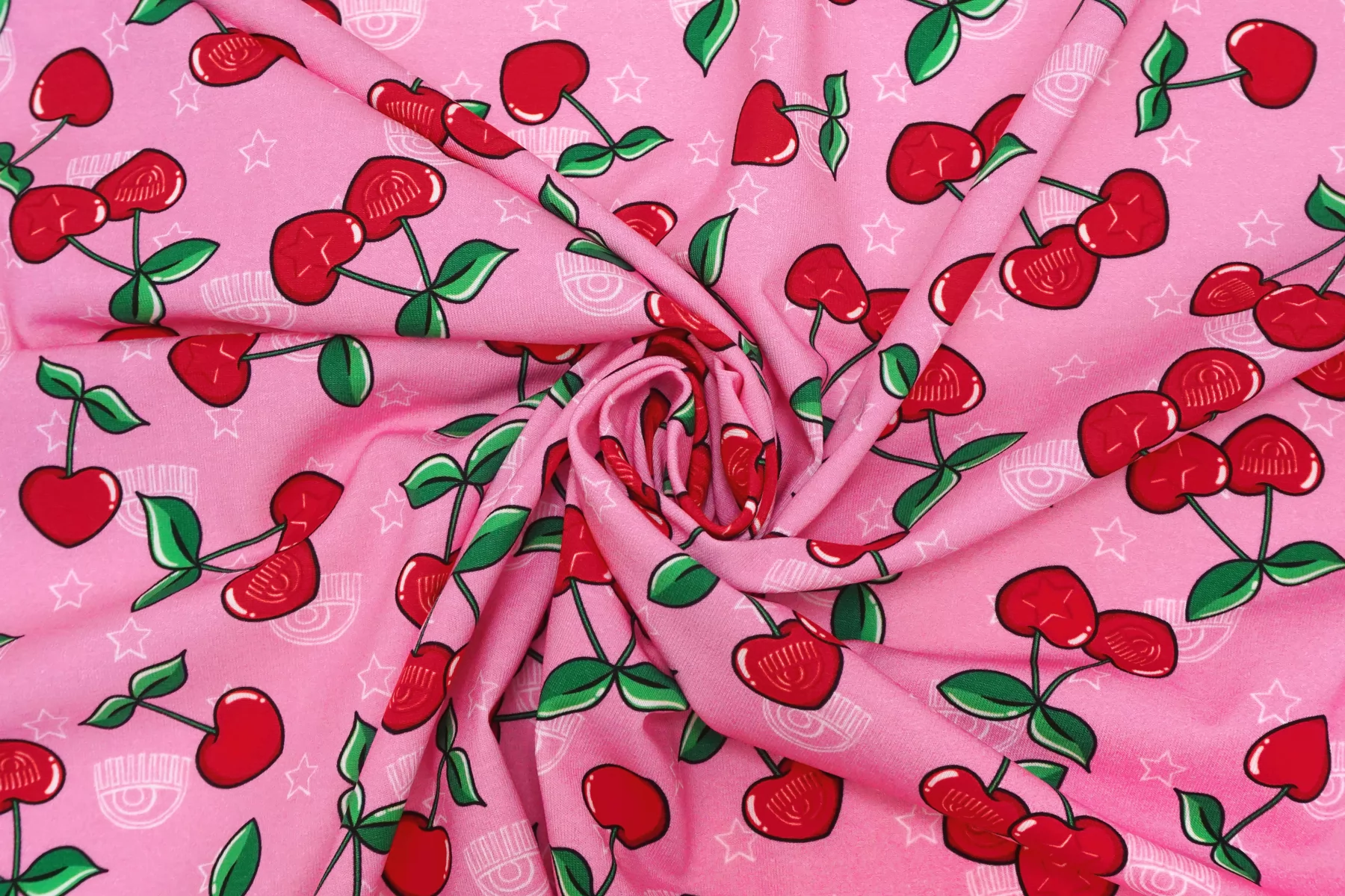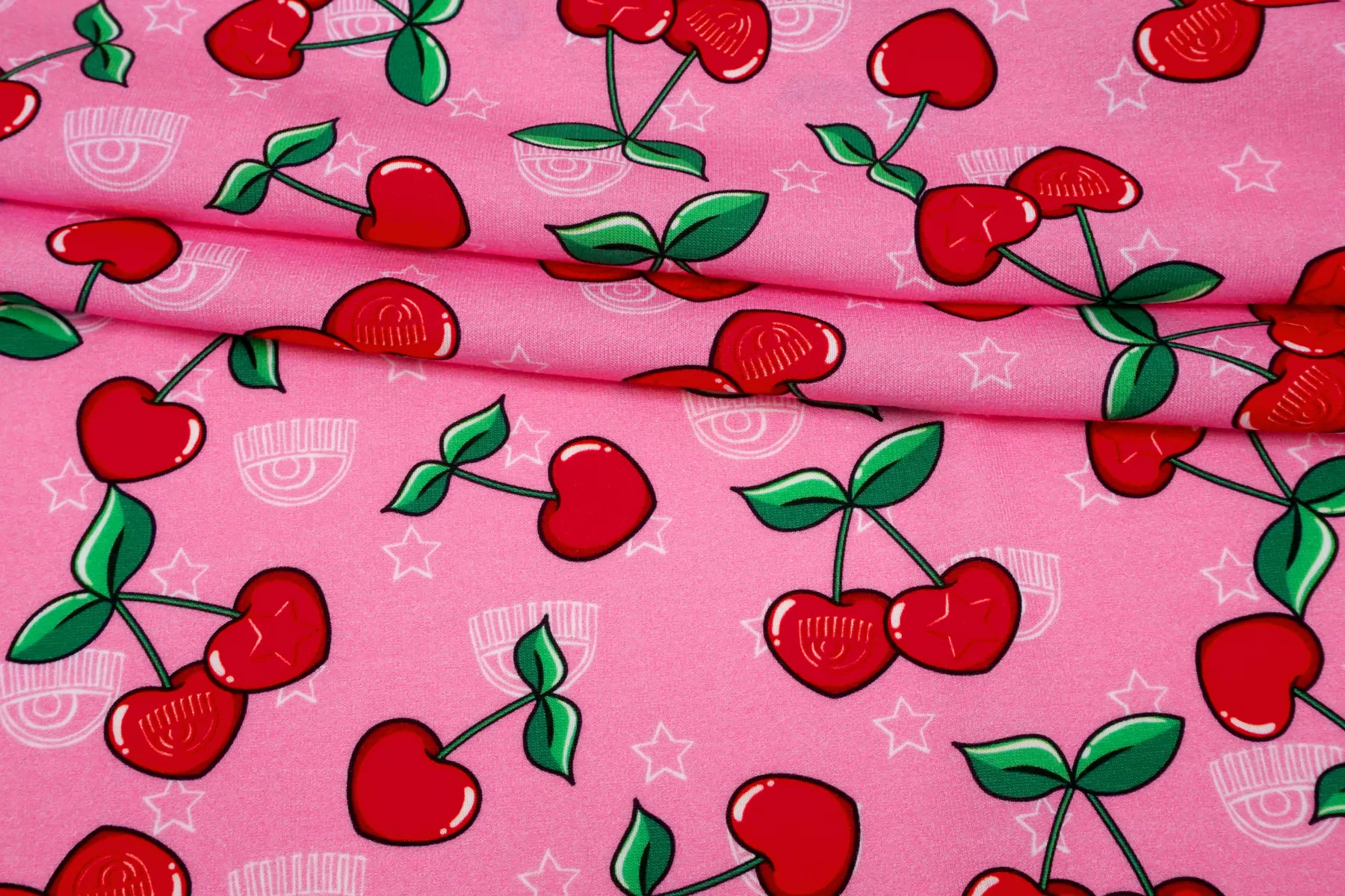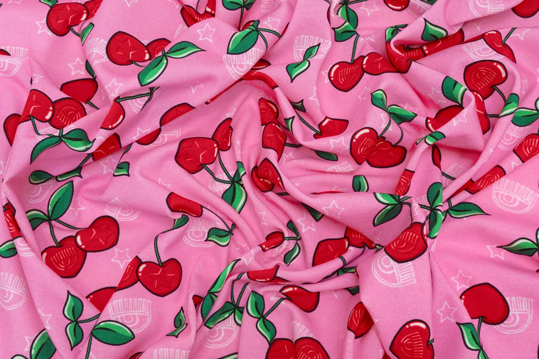 Трикотаж хлопковый Вишня на розовом Chiara Ferragni TRC H41/5 Q10 18072501