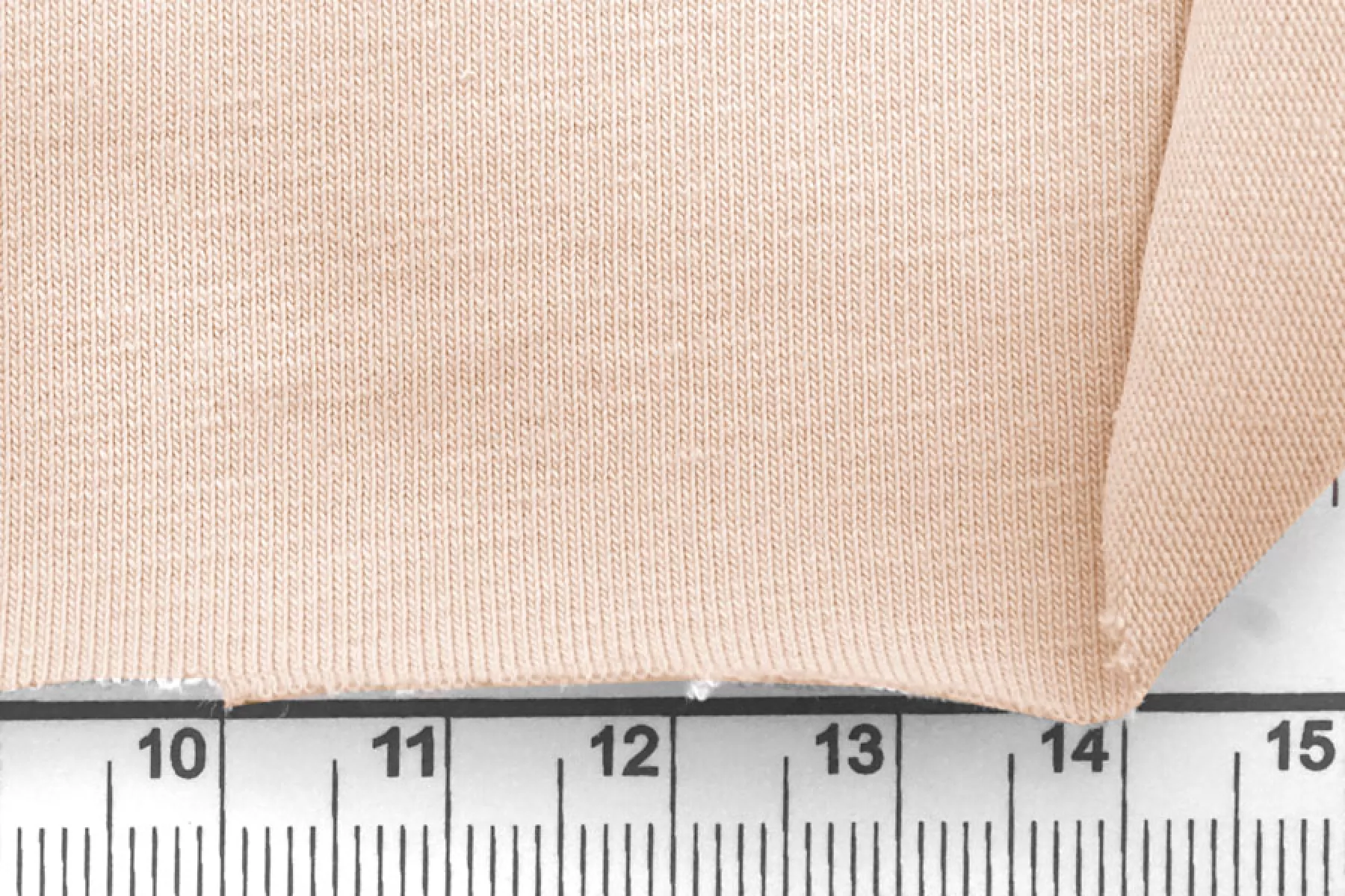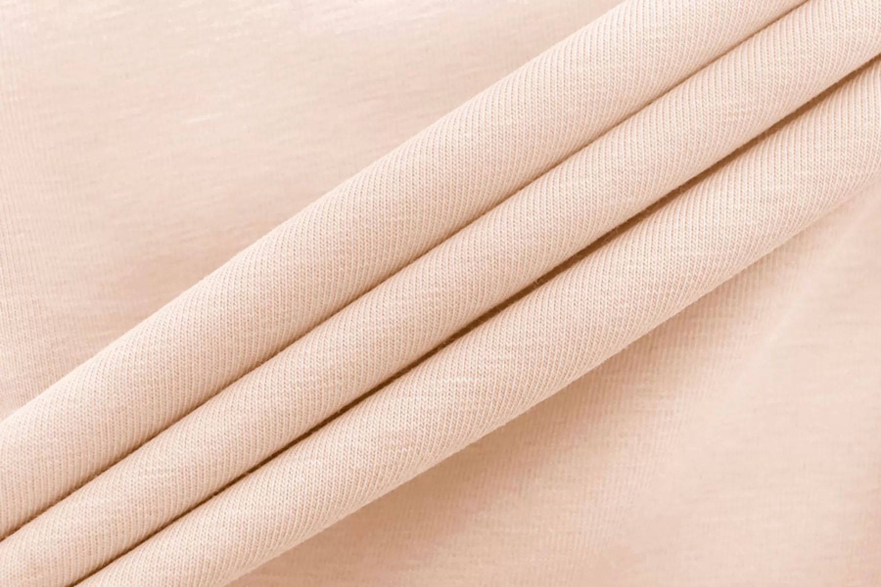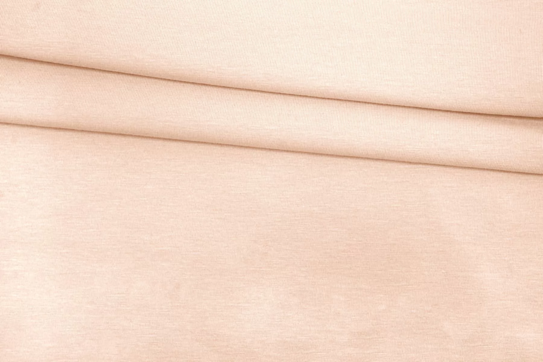 Футболочный трикотаж из хлопка, по плетению кулирная гладь от Simonetta в светло-персиковом цвете. Трикотаж просвечивает при растяжении, пластичный, эластичный. Подойдет для пошива майки, футболки, топа, платья-футболки.