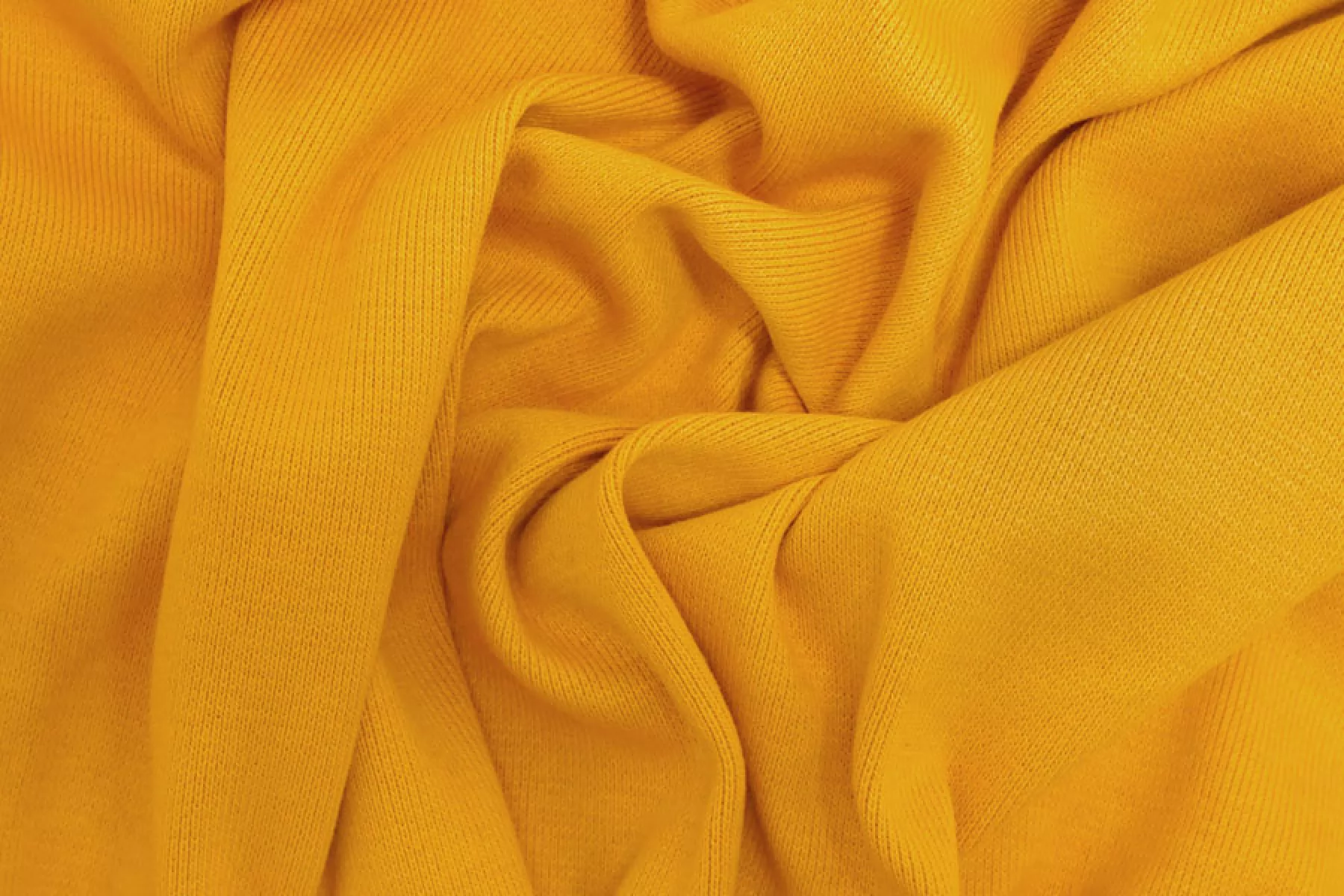 Итальянский хлопковый трикотаж горчичного цвета, вязка рибана. Материал пластичный, мягкий, гладкий. Плотный, толстенький. Немного просвечивает при растяжении. Практически не мнется. Отлично тянется. Подойдет для пошива майки, футболки, топа, а также манжетов, подвязов или воротников.