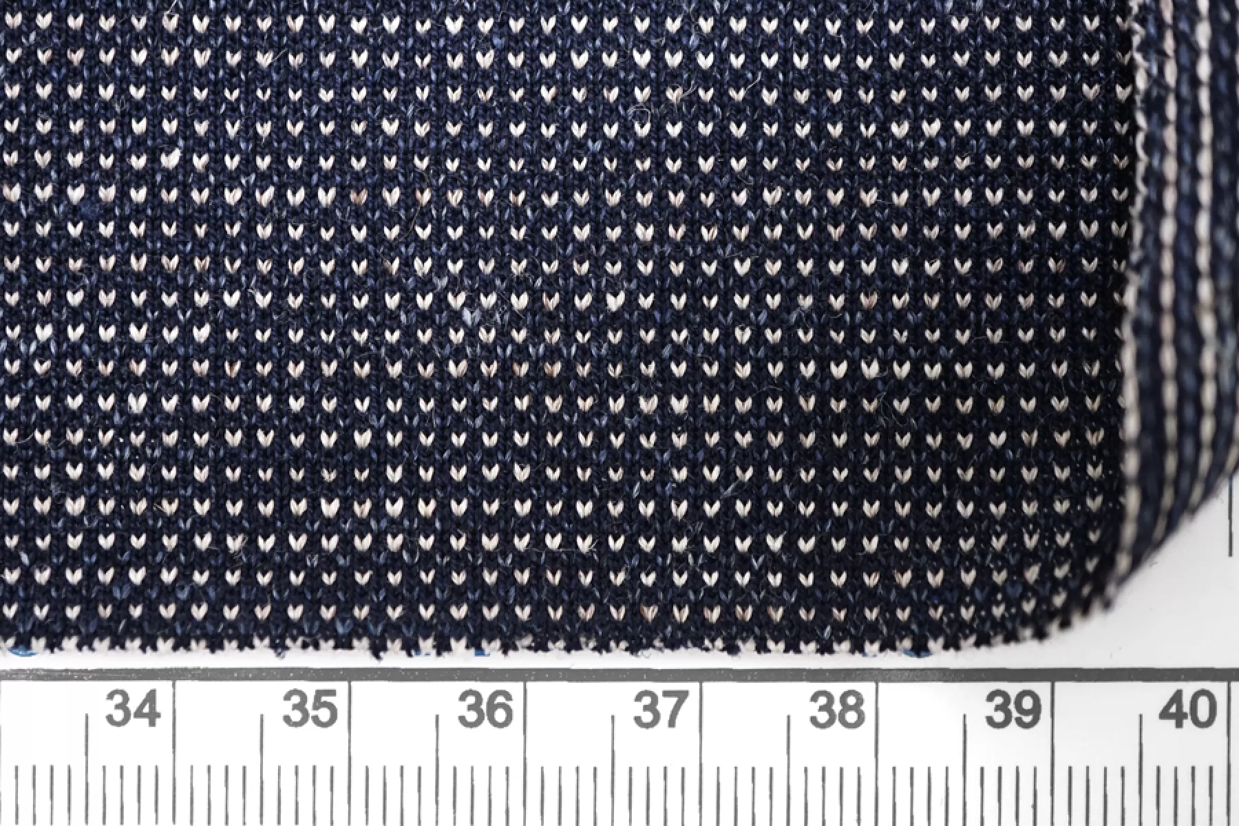 Трикотаж из хлопка с небольшой добавкой льна, нити темно-синего, белого и синего цвета. Материал тактильно приятный и мягкий, лен практически не ощущается. Тянется благодаря плетению. Слегка просвечивает силуэт. Совсем немного держит форму, довольно пластичен. Подойдет на футболки, туники, платья, лонгсливы, комфортные штаны.