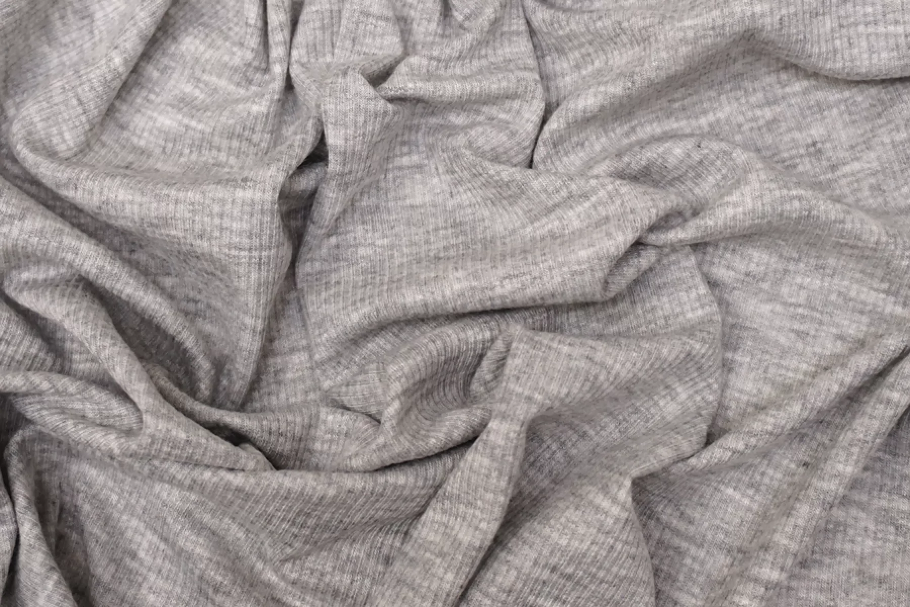 Трикотаж, вязка кашкорсе, серого цвета, от бренда. Эластичный, пластичный. Тонкий, гладкий, мягкий, шелковистый. С легким лоском. Хорошо тянется и при растяжении просвечивает. Подойдет для пошива майки или топа, манжет, подвязов.